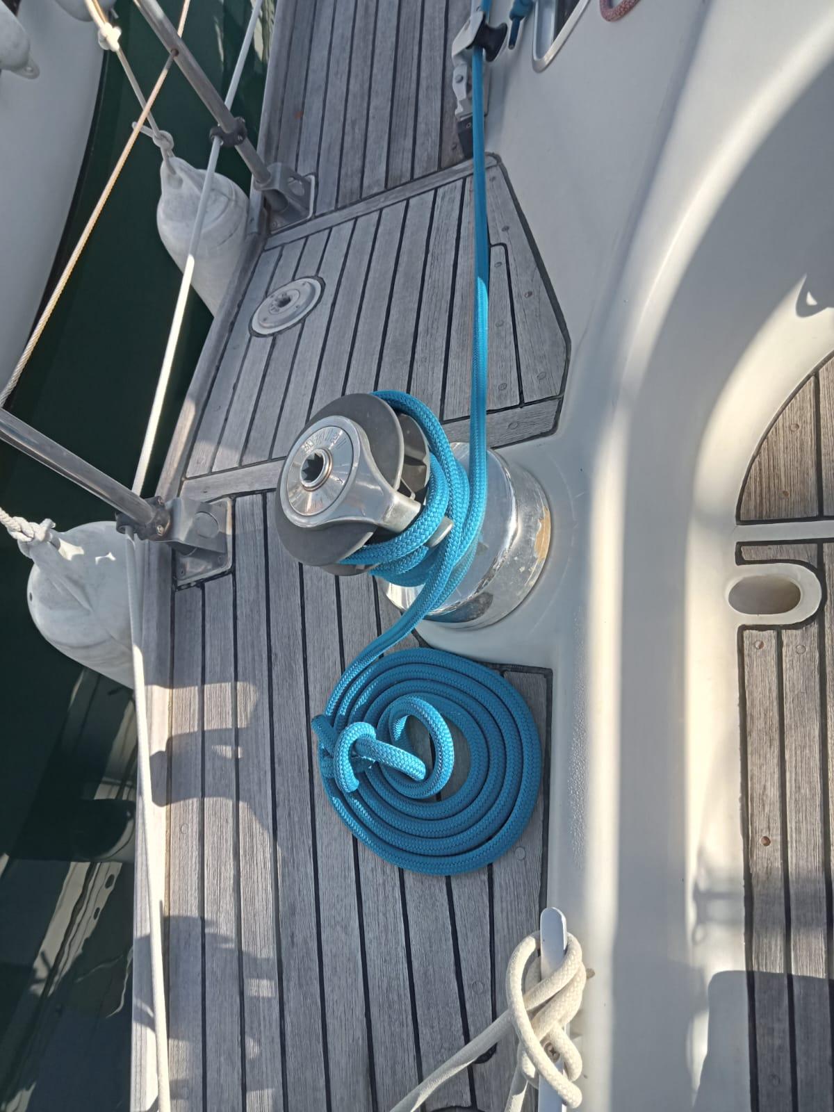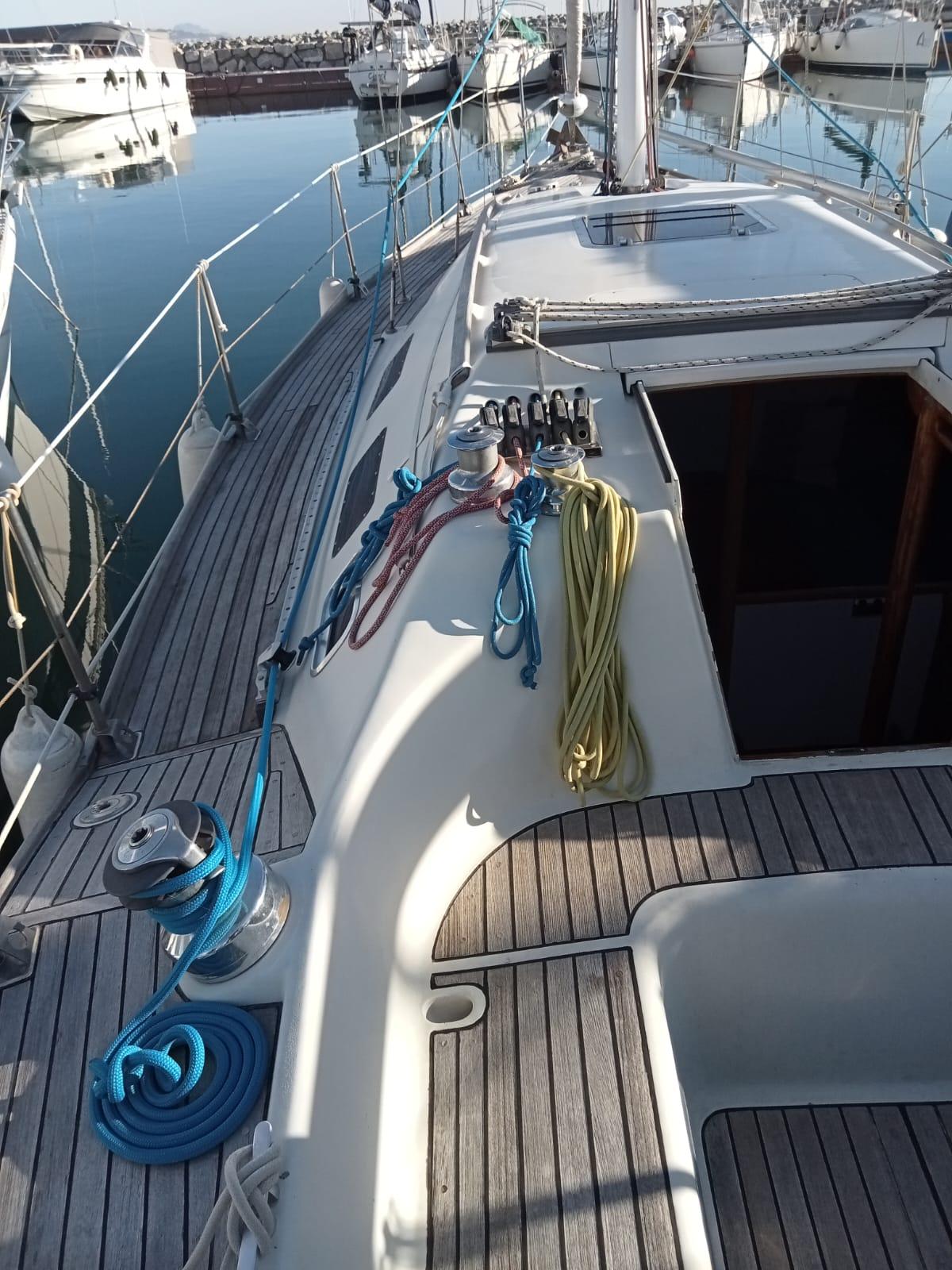 Le bateau dispose d'un Lazybag, un Génois à enrouleur, et des voiles entièrement neuves datant de 2021.