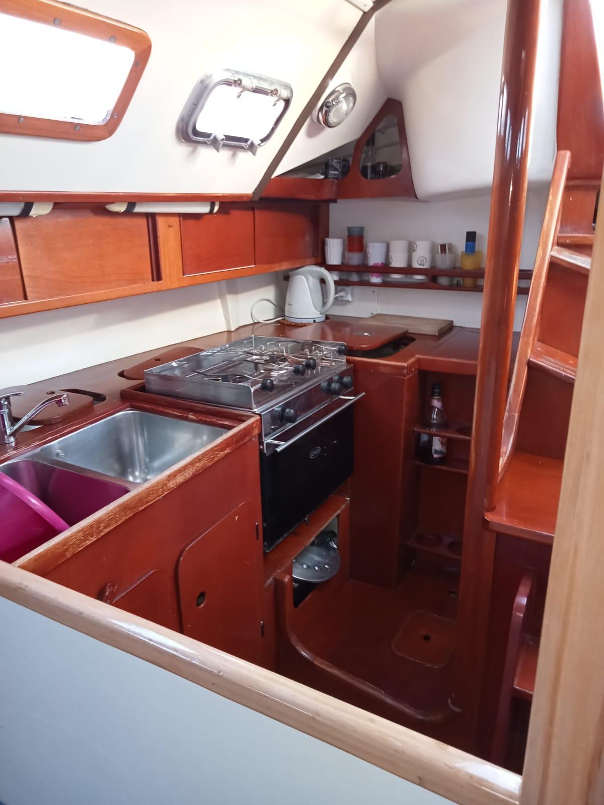 Ce bateau offre un tres bon confort avec ses 7 couchages répartis entre 2 cabines doubles (à l'arrière et à l'avant) ainsi qu'un carré comprenant une couchette double et une simple. I