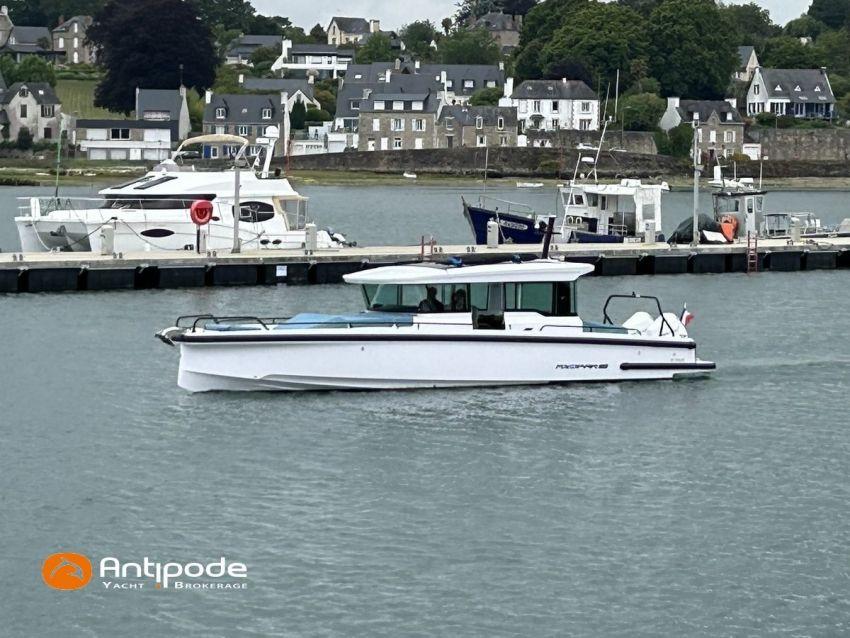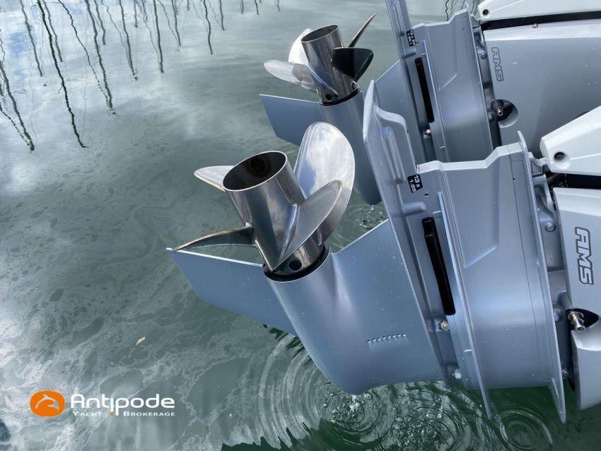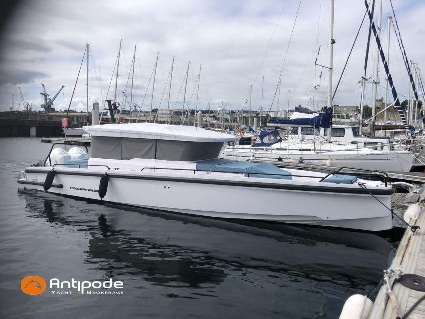AXOPAR 37 XC CROSS CABIN + aft cabine, 2023, 1ère main, jamais loué, 2 X MERCURY V8, 2 X 300 cv (59 h), Propulseur d'étrave, Version - BRABUS, Version Cabine arrière, Version d'aménagement intérieur 1 cabine avant, 1 cabine arrière, Table de cockpit polyester, 2x Taud de soleil avant + arrière, Taud d'hivernage - roof, Coussins bains de soleil arrière + taud, Télécommande guindeau au cockpit, Mat de ski, Barre de toit, Taud extérieur de timonerie, GPS / lecteur de carte dans le cockpit - 2x 12, Récepteur AIS, Joystick Mercury + Skyhook, Flaps+Joystick, Unité réfrigérante 12 V porte frontale, Chauffe-eau 220 V , WC électrique, Douchette de cockpit eau chaude / eau froide, Mouillage principal + ancre Inox 12kg, Visible Bretagne. Pour plus d'informations ou pour fixer un rendez-vous de visite, contact : François Mouchel 06 62 30 97 30 - francois@antipode-yachts.com