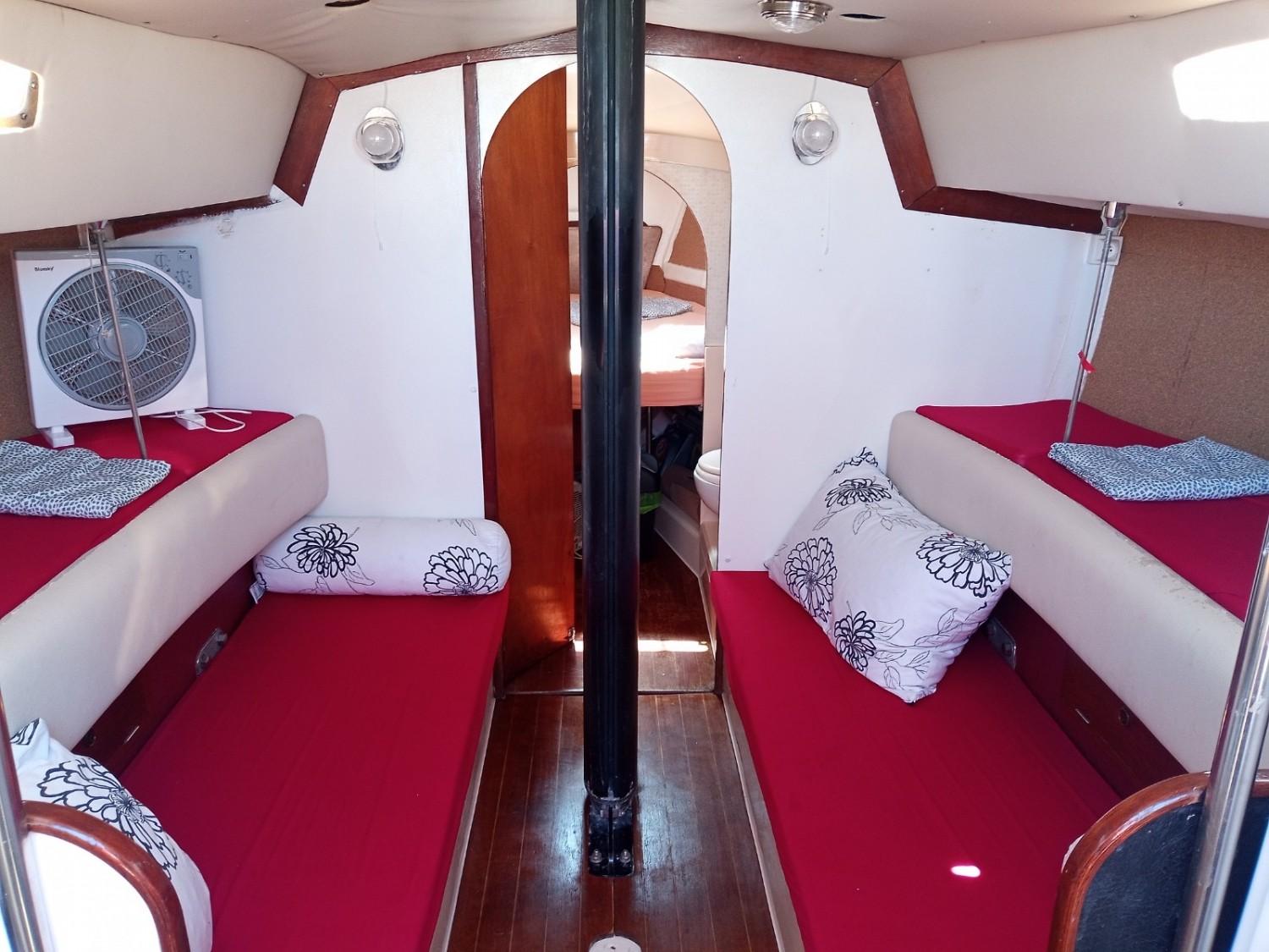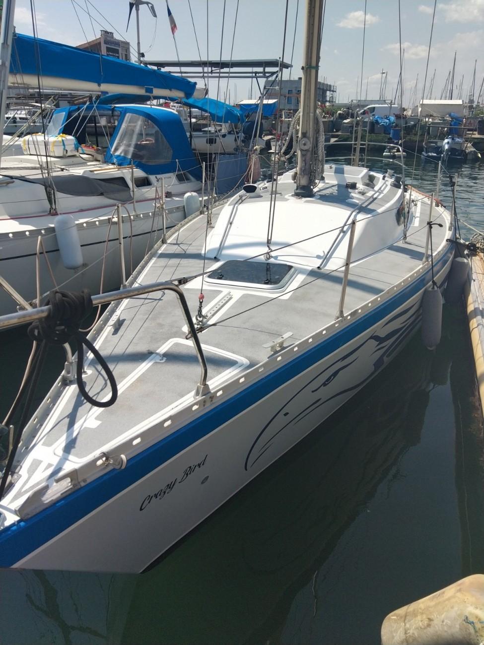 Peinture de coque et sablage du pont réalisés en 2022, pour un voilier comme neuf, prêt à affronter les vagues