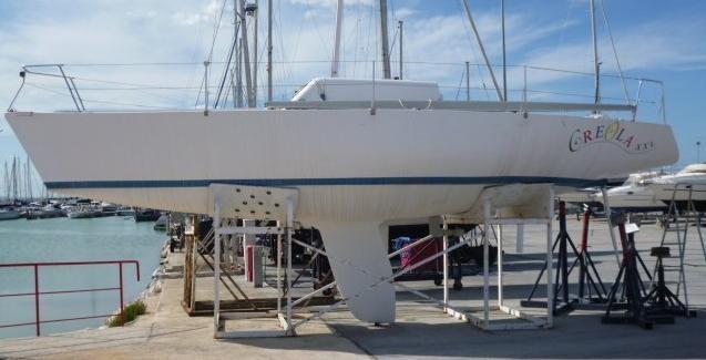 Traitement anti-osmose, profil de bulbe et de gouvernail, manœuvres de course et autres interventions importantes en 2024. 2024 voiles grand-voile, génois et foc en carbone. 2 espions.