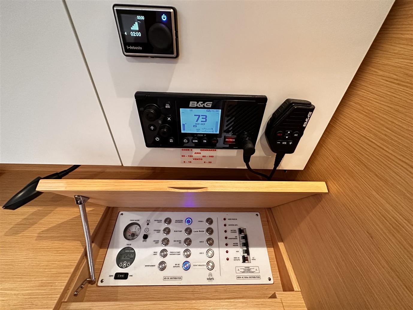 Sur cet exemplaire du prestigieux chantier naval italien, l’instrumentation électronique B&G et un jeu complet de voiles se démarquent.