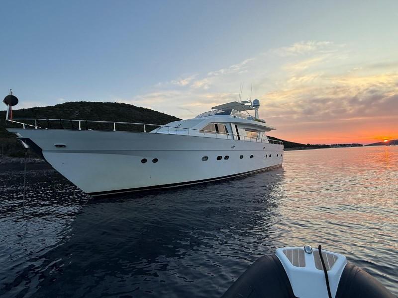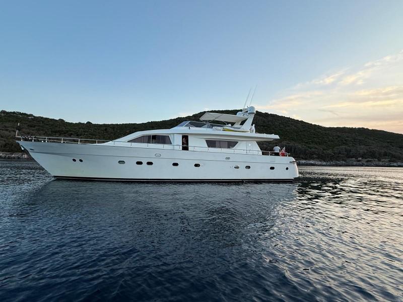 ALALUNGA 73 HIGH TECHNOLOGY FLY, 1991, CONSTRUCTION EN KEVLAR, PONT EN TECK MASSIF DE 15 mm (2018), 2 x 1.370 CV CATERPILLAR, PROPULSEUR D’ÉTRAVE, 4 CABINES DONT PROPRIÉTAIRE AU CENTRE, 3 SALLES DE BAIN AVEC DOUCHE + 2 CABINES ÉQUIPAGE AVEC SALLE DE BAIN, LAVE-VAISSELLE, 2 GÉNÉRATEURS, DESSALINISATEUR 200 L/H, CLIMATISATION, RADAR, PASSERELLE HYDRAULIQUE, WINCHS ÉLECTRIQUES DE MOUILLAGE, PLATEFORME DE BAIN HYDRAULIQUE, ÉCHELLES DE POUPE, GRAND FLYBRIDGE AVEC CANAPÉS, PLAQUE À INDUCTION, RÉFRIGÉRATEUR +39 06 65 22 258/9, www.mediaship.it - CODE DE L'ANNOUNCE W186580/M - Consultez le dossier complet, le vid�o et l'essai en mer sur notre site Web MEDIA SHIP