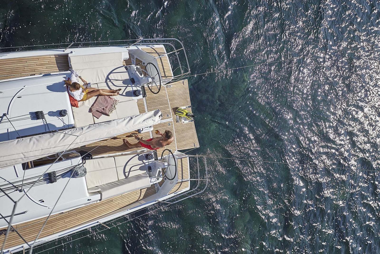 - Le confort grâce à un maitre bau avancé offrant de très beaux volumes et un vaste cockpit ouvert sur une plateforme de bain.