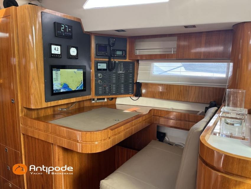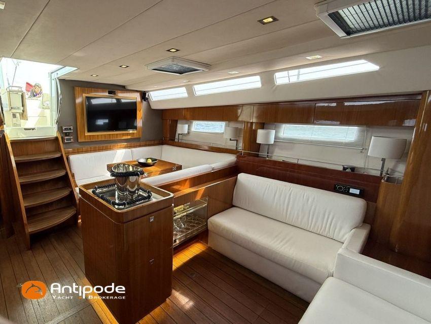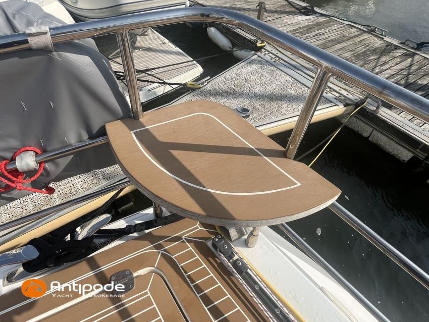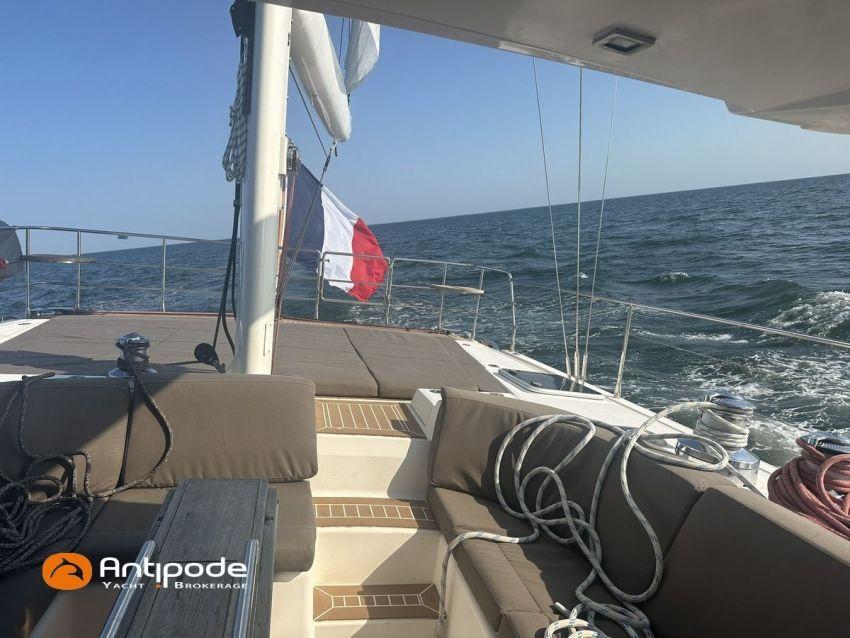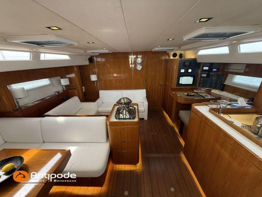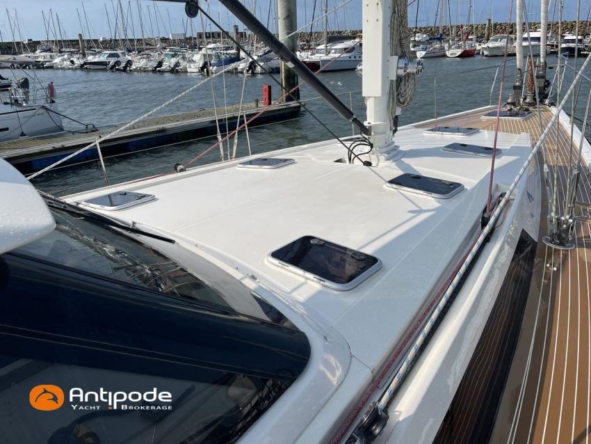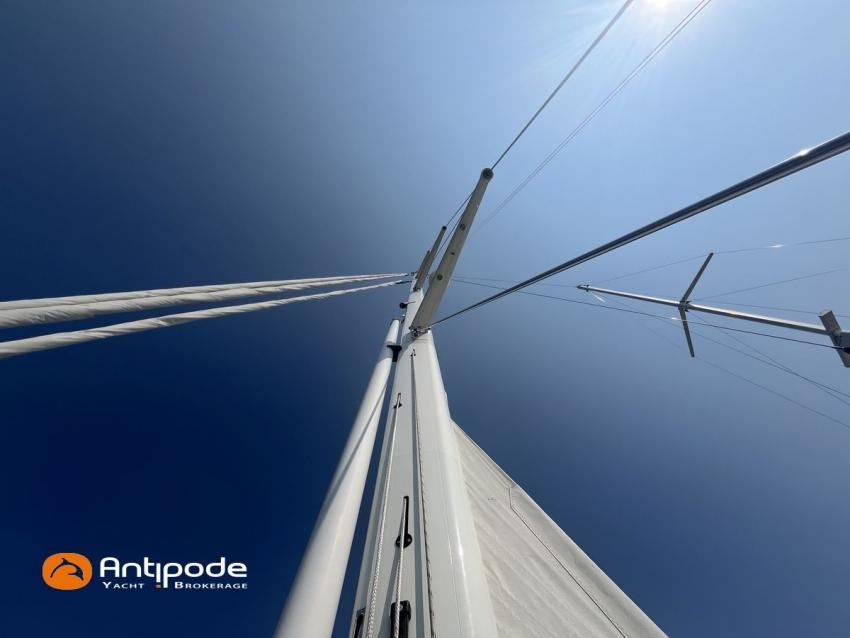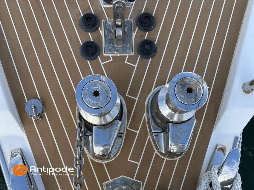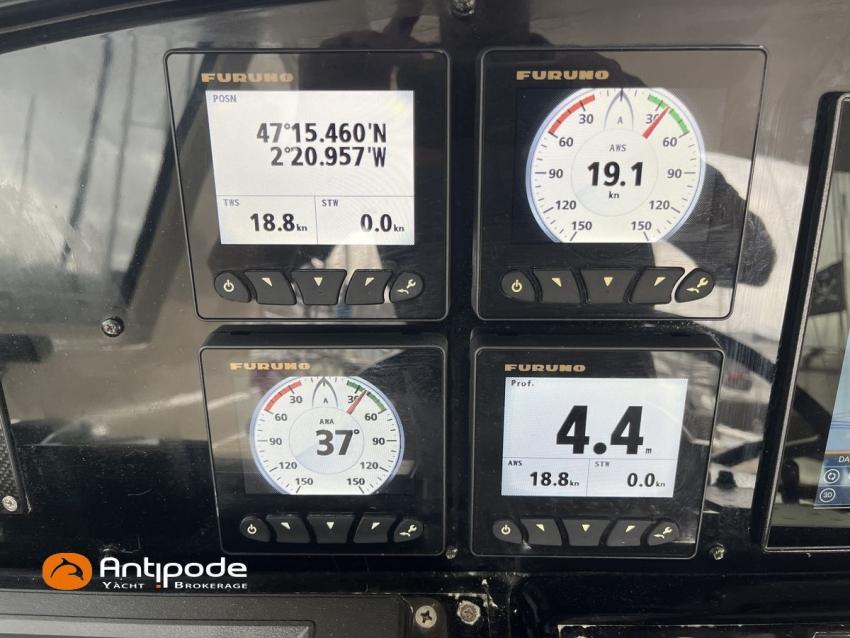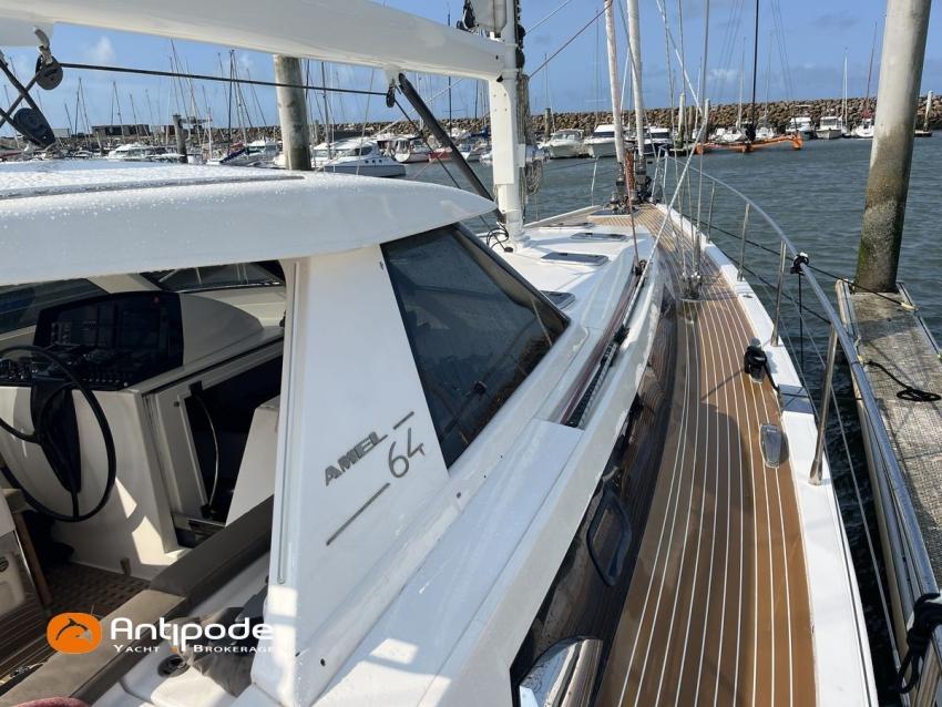 AMEL 64, 2010, TVA payée, moteur STEYR (2020), 150 cv (1350 h), Propulseur d'étrave et poupe, Aménagement intérieur version 3 cabines : 1 cabine avant propriétaire, 1 cabine arrière lit double à babord, 1 cabine arrière avec 2 lits simples à tribord transformable en lit double, 3 cabinets de toilettes et douche, , Selleries carré tissu Ecru - Sunbrella 2023, 6 winches électriques - Lewmar, Panneaux de pont Lewmar et stores remplacés 2023, Revêtement passavants, assises et fond de cockpit, roof avant et plateforme arrière en Flexiteek (2021), Abri / casquette de roof rigide avec avant ouvrant, Taud de soleil coulissant électriquement dans le toit de l'abri, Coussins de cockpit - Sunbrella 2023, Coussins bains de soleil avant - Sunbrella 2023, Coussins de plage arrière (sous artimon) - Sunbrella 2023, 2 guindeaux électriques - Lewmar, Compteur de chaine au cockpit - 2023, Garage à annexe, ouverture par système hydraulique révisé 2023,, winch électrique pour treuillage de l'annexe, Support inox radeau de survie balcon arrière tribord, Gréement dormant Rod - 2021, Grand-voile enrouleur coupe triradiale Incidences 2021, Voile d'artimon à coupe triradiale - 2021, Enrouleur de génois électrique et commande manuelle - Reckmann, Génois sur enrouleur coupe triradiale - 2021, Enrouleur de trinquette électrique et commande manuelle - Reckmann, Trinquette sur enrouleur coupe triradiale - - Incidences 2021, Emmagasineur électrique pour Code 0 - Profurl Nex 2022, Code 0 130 m2, bande UV - HSD 2023, Tangon avec système de stockage le long du mât, Gréement courant Vectran et Dyneema, Centrale de navigation - Furuno 2021, 2 pilotes automatiques in board hydraulique, GPS / lecteur de carte / radar à la table à carte 2021 - Furuno, GPS / lecteur de carte / radar dans le cockpit 2021 - Furuno, GPS - Furuno GP 33, Radar avec radôme sur support de mât d'artimon, VHF à la table à carte + combiné cockpit - Standard Horizon 2023, Système audio FUSION - 2023, Télévision dans le carré (2021), cabine avant et cabine arrière, Groupe eau douce remplacé 2023, Four - Miele 2022, Machine à laver la vaisselle 220 V - Miele, Machine à laver le linge , 2 batteries soute à voile - 2 X 214 amp AGM 2023, 1 batterie AGM 160 amp 2023, 4 batteries 2 X 145 amp 2022, Convertisseur 12 V / 220 V - Mastervolt, Chargeurs de batteries 12 et 24 V - Mastervolt, Contrôleur / gestionnaire de batteries - Mastervolt, Chauffage EBERSPACER - 2024, Climatisation intégrée 220 V remplacée 2020, Générateur fixe 220 V révision compléte et remplacement rotor et stator 2024 - Onan (5184 h), Pompe à eau de mer pour lavage de l'ancre, Eclairages intérieurs à Leds - 2025, Radeau de survie, Mouillage principal ancre 2025, chaine inox, Annexe gonflable fond alu - Highfield CL 290 2023, Moteur hors-bord - Honda 20 cv 2023, Visible Bretagne. Pour plus d'informations ou pour fixer un rendez-vous de visite, contact : Jérôme Le Joubioux 06 07 45 71 73 - jerome@antipode-yachts.com