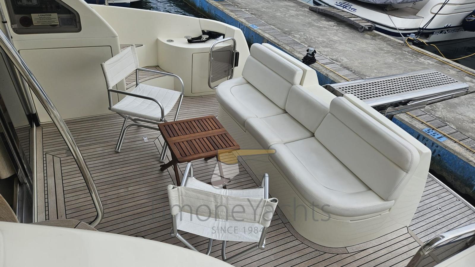 Alarme moteur, Eau sous pression, Passavant en teck, Douche de cockpit, Double barre à roue, Flaps hydrauliques (N°2), Indicateurs de flaps, Lavage de chaine, Éclairage de courtoisie, Passerelle, Plateforme arrière, Pompe de cale automatique, Pont en teck, Porte latérale, Cockpit en teck, Rollbar, Guindeau électrique, Echelle de bain, table de cockpit, Table pliante de salon, Corne, Winch électrique avant.