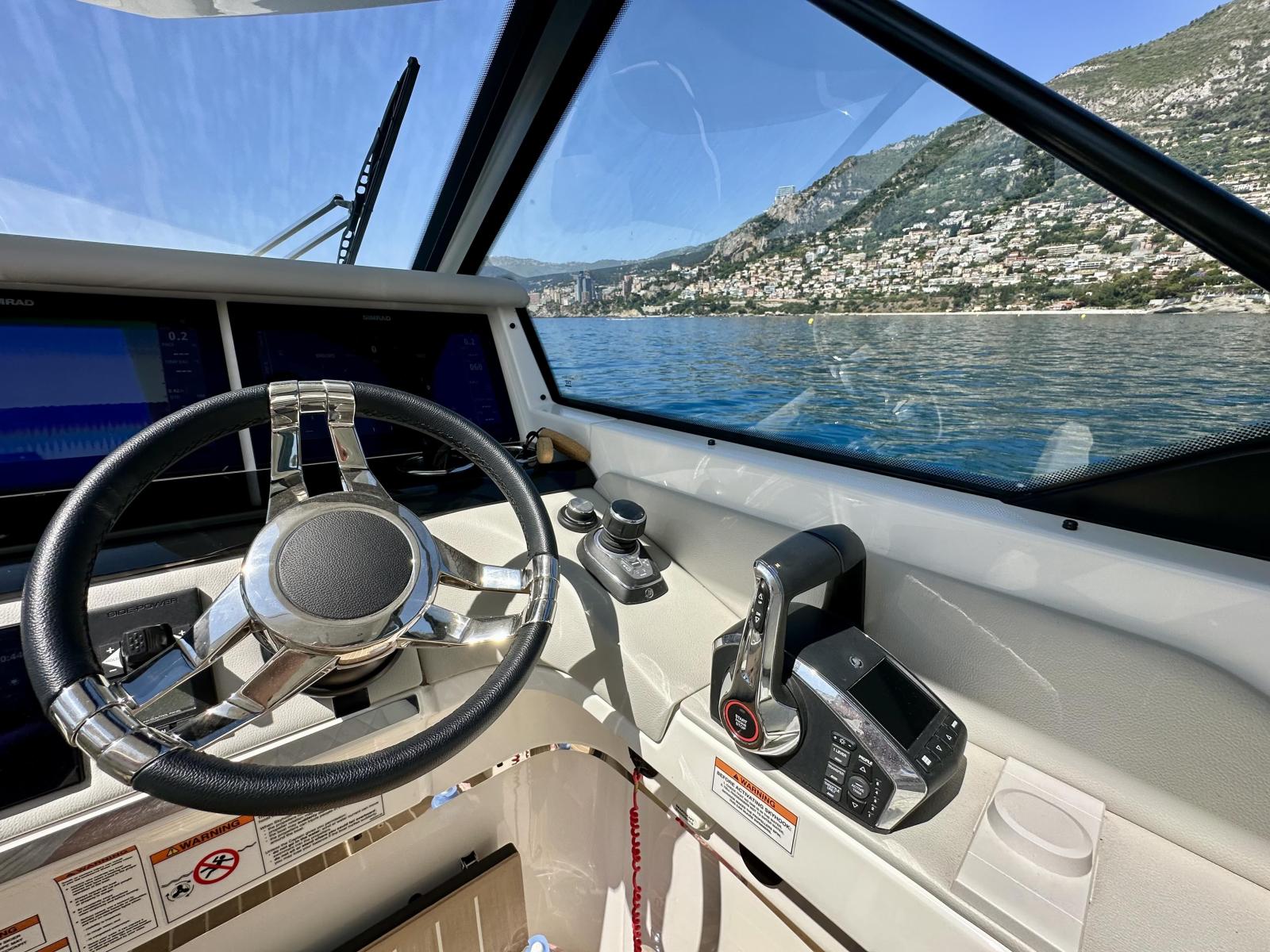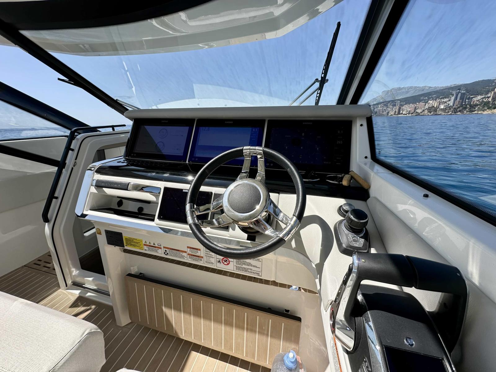 Ce Saxdor 400 GTO bénéficie d’une motorisation optimisée avec joystick de manœuvre, propulseur d’étrave et un pack technologique Mercury complet, garantissant une expérience de navigation fluide, précise et agréable. Le poste de pilotage est équipé de trois écrans Simrad et d’un radar dernière génération, intégrés dans le pack de navigation avancée.