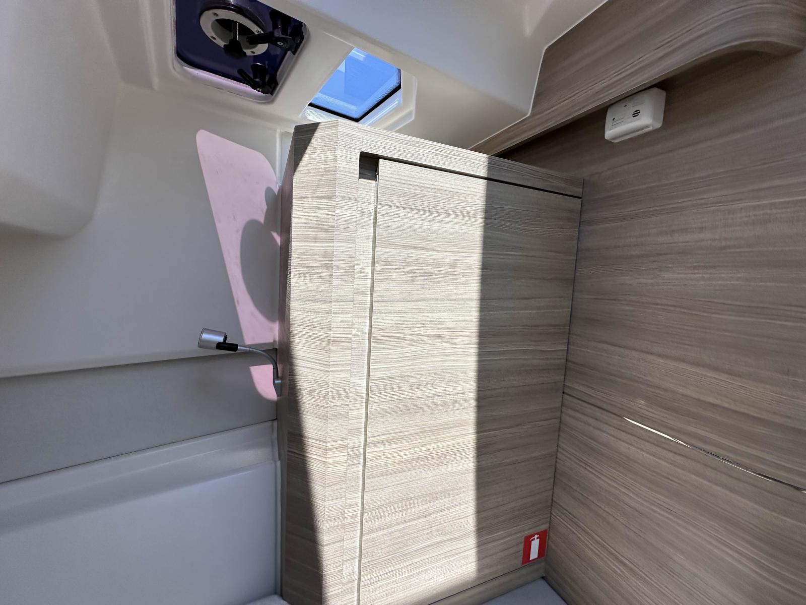 Le confort à bord est renforcé par un système de climatisation efficace pour la cabine avant et la cabine arrière, une alimentation électrique assurée par des batteries lithium 12 kWh, ainsi qu’un système de gestion électrique centralisé. Le bateau dispose d’un équipement complet pour la croisière, incluant réfrigérateurs à tiroirs, plaque de cuisson et rangements pratiques.
