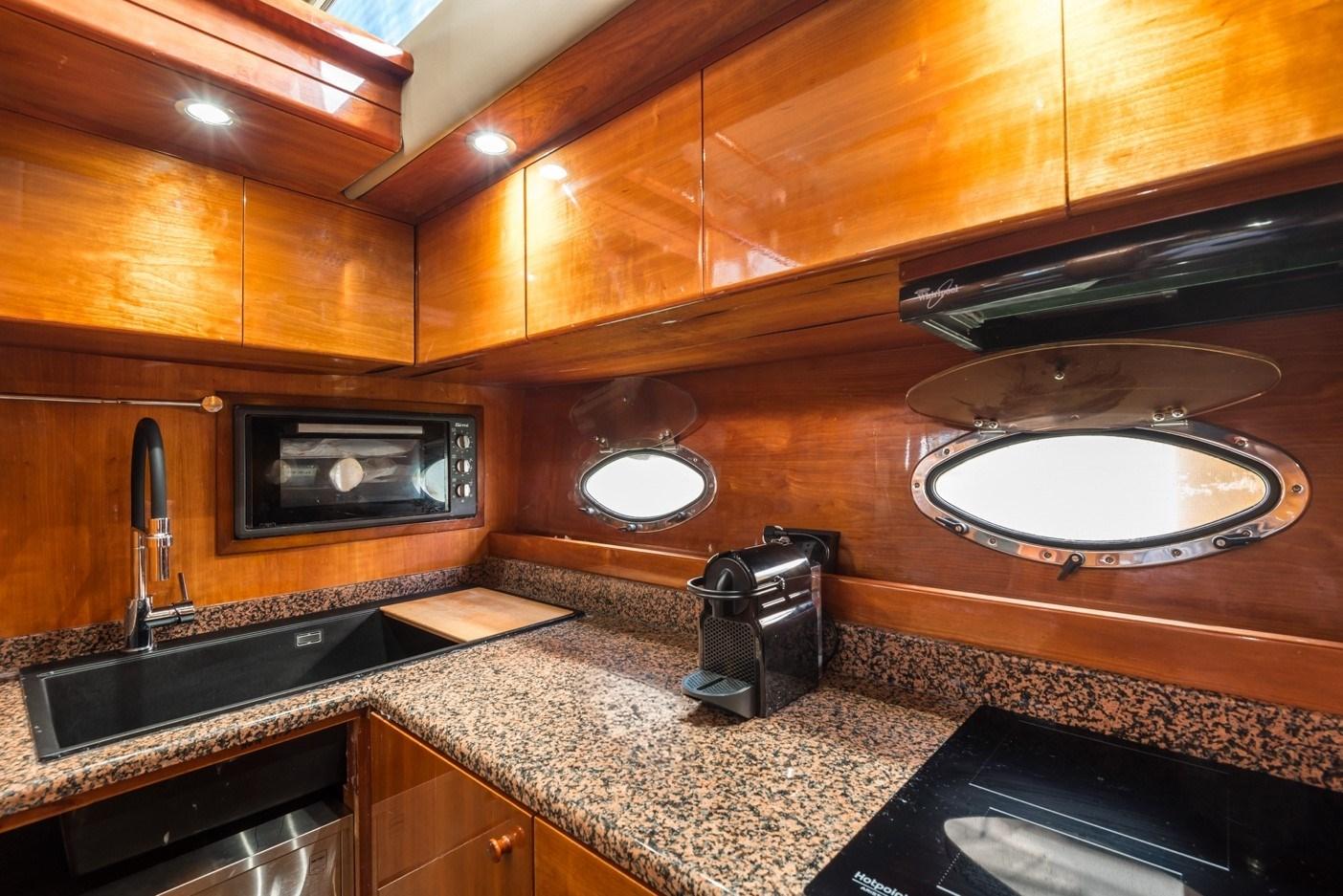 Alarme gaz, Alarme moteur, Alarme de pompe de cale, Eau sous pression, Douche de cockpit, Passerelle, Plateforme arrière, Pont en teck, Cockpit en teck, Prise de quai, Connexion eau sous pression à quai, Guindeau électrique, table de cockpit, Winch électrique arrière.