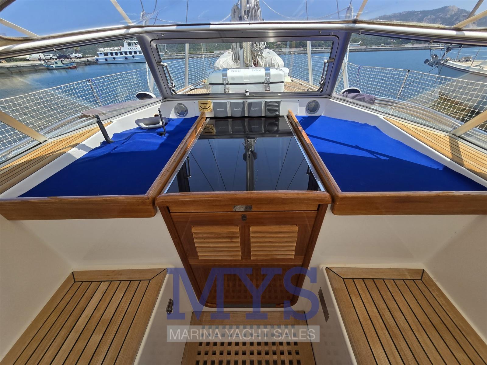 Alarme moteur, Alarme de pompe de cale, Alternateur, Eau sous pression, Système de vidange, Passavant en teck, Douche de cockpit, Passerelle, Pompe de cale automatique, Pompe de cale manuelle, Pont en teck, Porte latérale, Cockpit en teck, Prise de quai, Guindeau électrique, Gréement monotoron, Echelle de bain, table de cockpit, Pont en teck, 2 Winch électrique.
