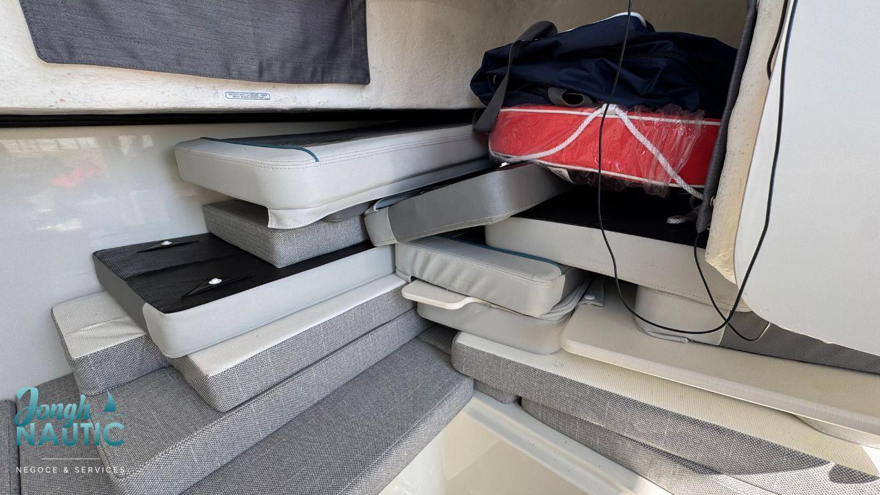 Très bien équipé avec tous les cousins et table extérieure pour profiter pleinement du cockpit (jamais servi car utilisation uniquement pour la pêche).