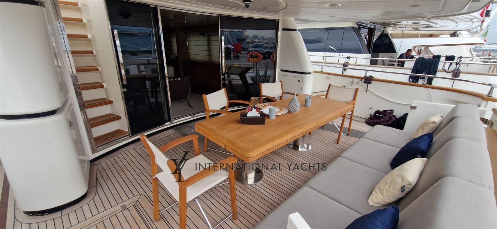 Alarme de pompe de cale, Eau sous pression, Douche de cockpit, Phare de poursuite, Flaps hydrauliques, Grue de flybridge, Extincteur(s) fixe(s), Lavage de chaine, Passerelle, Porte latérale, Porte latérale, Cockpit en teck, Prise de quai, Connexion eau sous pression à quai, Onduleur, Guindeau électrique, Echelle de bain, table de cockpit, Winch électrique avant.