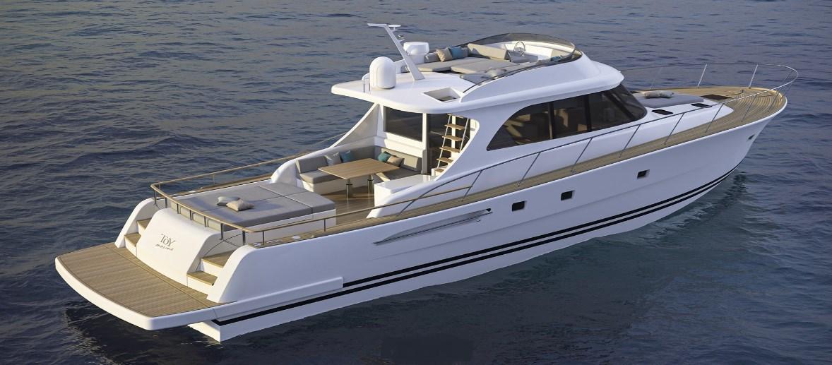 Un design harmonieux d’inspiration classique et une attention particulière aux détails font du Toy 72 un yacht unique. Depuis le grand carré arrière se développent les lignes bien connectées de la coque, du pont et du rouf. La sensation d’espace et de confort de l’espace extérieur se retrouve également à l’intérieur, avec des espaces lumineux et accueillants. Les intérieurs du Toy 72 offrent une subdivision rationnelle des espaces au profit de la convivialité des différents environnements. Le propriétaire a la possibilité de choisir différentes alternatives d’aménagement qui offrent différentes solutions pour les cabines et les salles de bains. La configuration traditionnelle permet d’accéder à la zone du propriétaire et des invités à l’avant de la dînette, avec la cabine du propriétaire et deux cabines d’invités. Chaque cabine dispose d’une salle de bains privative avec cabine de douche séparée. La zone de service est séparée du reste du bateau et dispose d’un accès indépendant, directement depuis le cockpit, pour permettre un maximum d’intimité. Il comprend une grande cuisine, avec la fonction de dînette pour l’équipage, et une cabine à deux lits avec salle de bain. De cette zone, il y a un accès direct à la salle des machines où tous les systèmes embarqués sont rassemblés. Une autre option a été développée pour donner au propriétaire un maximum de confort et de tranquillité et se caractérise par la cabine du propriétaire au milieu du navire à pleine largeur. Dans ce cas, la cuisine est prévue dans la zone de la dînette, tandis que les quartiers de l’équipage sont à l’arrière, encore une fois avec un accès séparé directement depuis le cockpit. Un grand garage pour l’annexe avec une ouverture à l’arrière au niveau de l’élévateur de l’annexe rend le halage et la mise à l’eau de l’annexe très simples. Le Toy 72 est équipé du système de propulsion Volvo IPS qui offre des manœuvres précises, une efficacité maximale, une économie de carburant et un silence remarquable pendant la navigation.