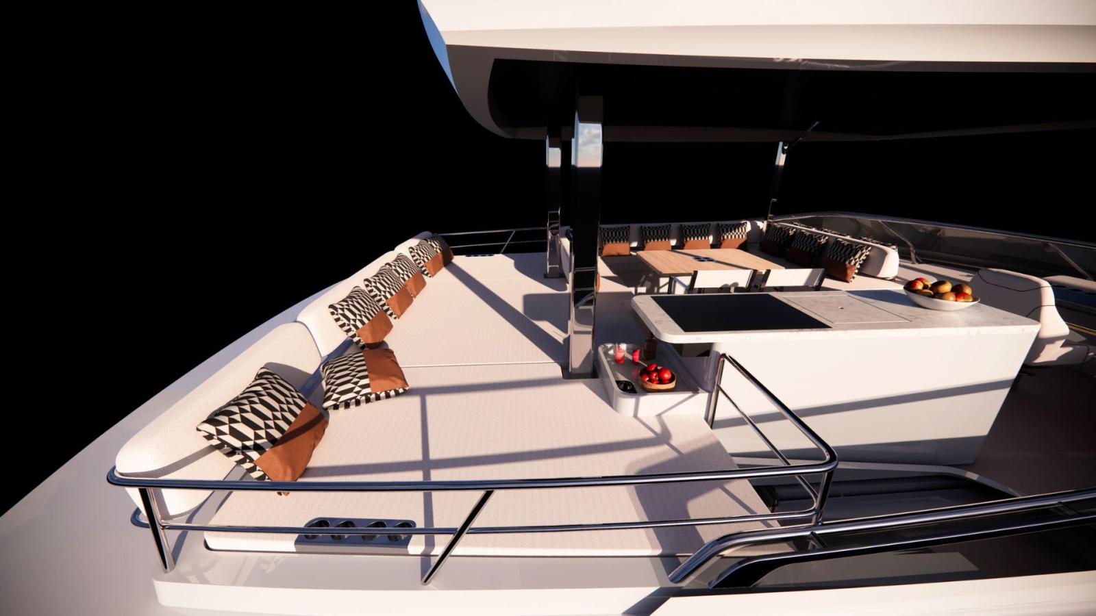 Le tout nouveau YOT 53, conçu par YOT Power Catamarans et construit en France par Catana Group, repousse les limites du design nautique avec un style épuré, une habitabilité exceptionnelle et des plateformes latérales rabattables brevetées qui démultiplient les espaces à vivre en mer.