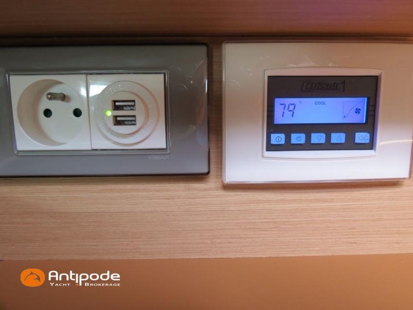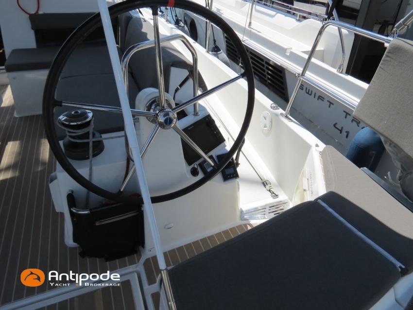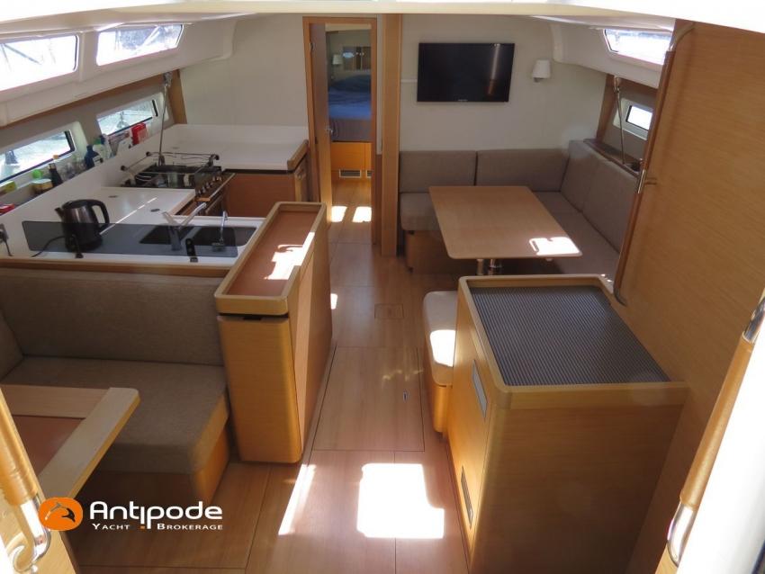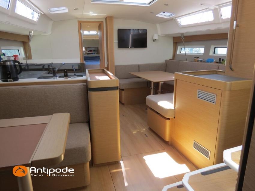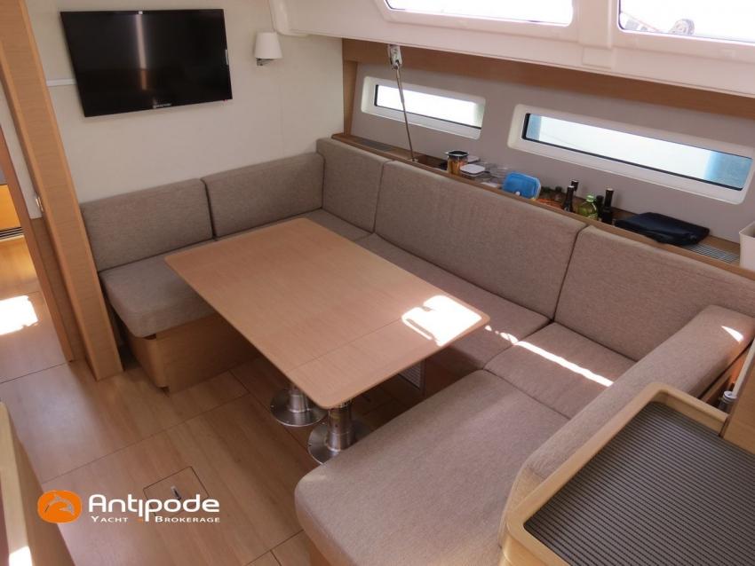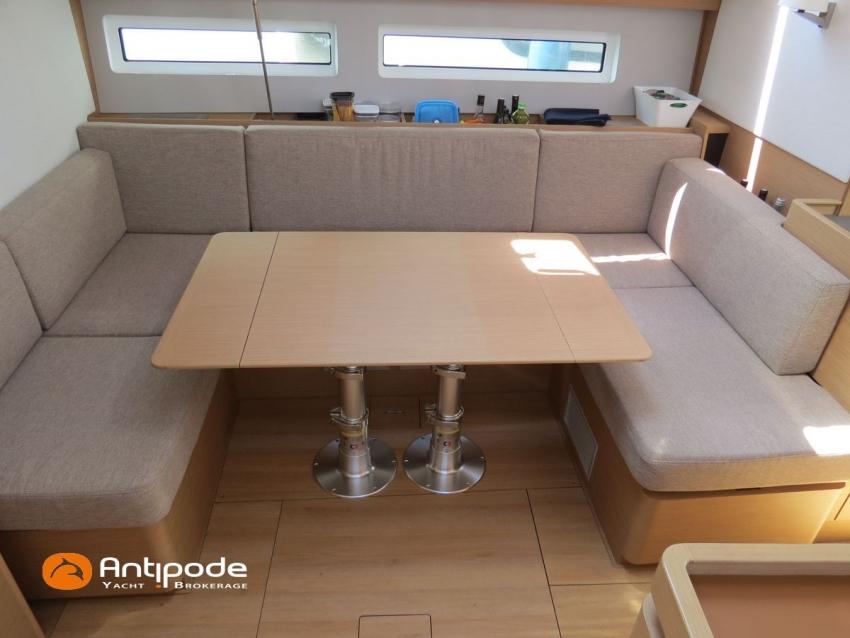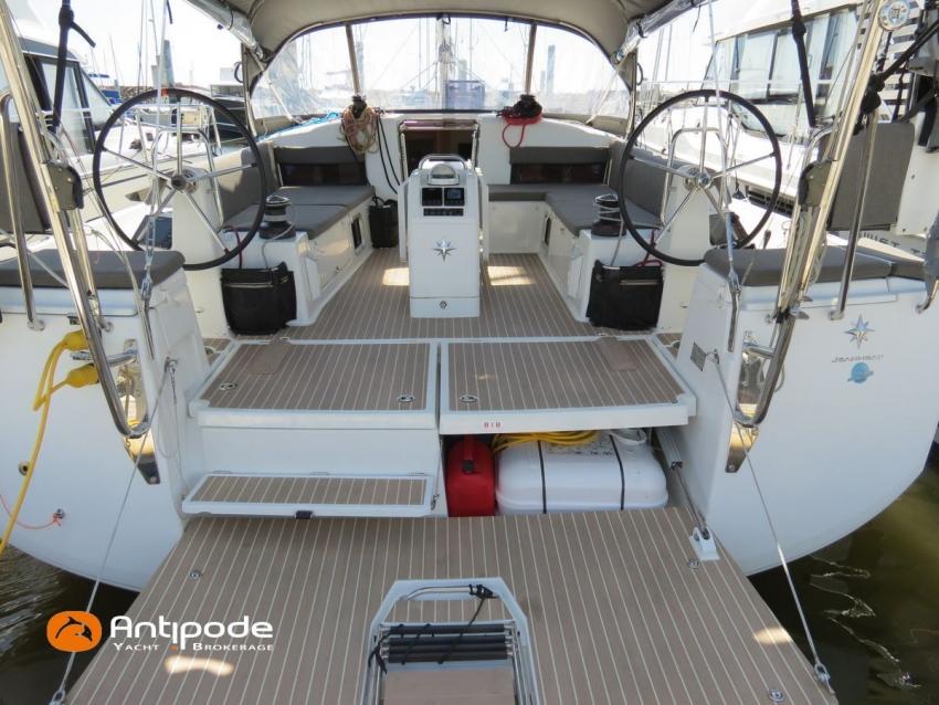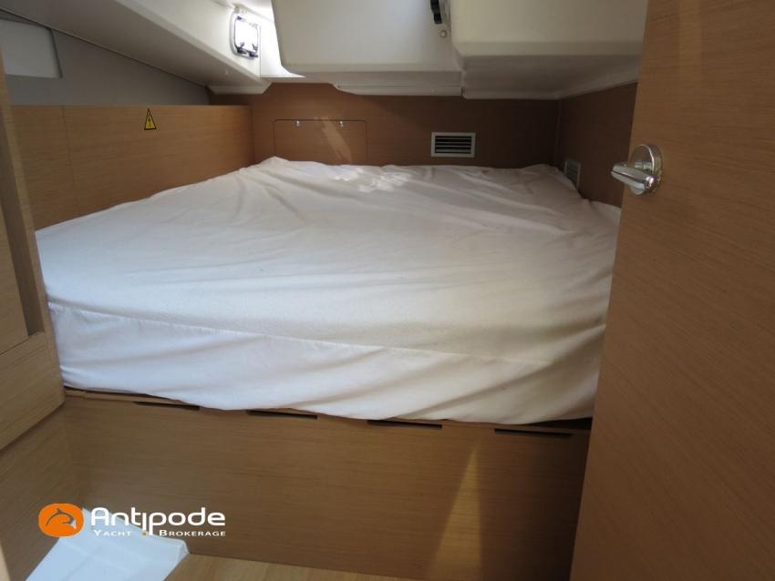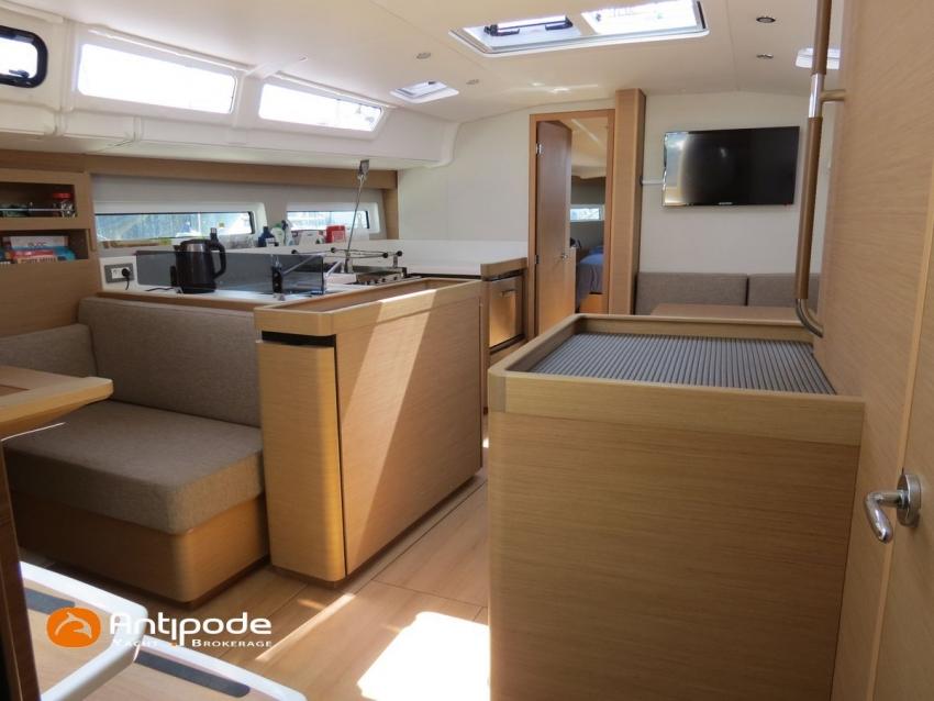 SUN ODYSSEY 490, 2022, YANMAR 4JH80CR, 80 cv (767 h évolutif), Propulseurs d'étrave et poupe rétractables, Finition PREFERENCE, Packs Downwind + Cuisine de cockpit + Cockpit convertible babord et tribord + Voyager + Electronique Océan + Voiles North Sails. Version d'aménagement intérieur 1 cabine avant, 2 cabines arrières, Soute à voile dans le poste avant, 2 cabinets de toilettes et douche, Menuiseries intérieures Cèdre gris, Planchers stratifiés Chêne clair , Selleries carré ambiance Moka, Matelas à ressorts 22cm dans les 3 cabines, Sommiers à lattes dans les 3 cabines, Table de carré version Luxe repliable et convertible en couchage double , 1 winch électrique de manoeuvre sur roof (babord) - Harken 46ST, Delphinière en polyester avec davier inox, Fond de cockpit en flexyteek, Assises de cockpit en flexyteek, Jupe arrière électrique Flexyteek, avec télécommande sans fil, Table de cockpit avec abattants polyester, Housse de table de cockpit, Double barres à roue inox gainées cuir, Housses de barres à roue, Capote de roof haute transparence avec lampes à led - Charcoal gris, Bimini top cockpit avec toile de liaison à la capote, Tauds de fermeture complète du cockpit, Coussins de cockpit Carbon beige (épaisseur 8cm), Cadènes repliables sur le pont avant pour fixation annexe, Portique arrière avec bossoirs et palan de levage de l'annexe, Ouvertures latérales dans les filières avec échelle de coupée amovible, Mât enrouleur posé sur le pont, Gréement dormant câbles Dyform, Grand-voile enrouleur - North Sails 3DI Ocean 370 gris, Frein de bôme Walder, Enrouleur de génois avec tambour sur le pont - Facnor LS200, Génois sur enrouleur - North Sails 3DI Ocean 370 gris, Trinquette sur bout anti-torsion et drisse mouflée - North Sails NorDac, Tangon aluminium (pour tangoner le génois), Gennaker sur emmagasineur - North Sails Norlon NY250, Emmagasineur Facnor FX4500, Accastillage de gennaker (poulies, écoutes), Pilote automatique in board Raymarine P70s + calculateur Acu400 + gyrocompas, Télécommande à distance du pilote - Smart Controller, Second pilote automatique (deuxième vérin, deuxième centrale, fonctionne en mode compas), Répétiteur Raymarine I70s Multifonctions à la table à carte, 2 x GPS / lecteur de carte dans le cockpit - Raymarine AxiomPro 9 wifi, Cartographie électronique, Radar avec dopler et radôme sur support de mât - Raymarine Quantum 2, Transpondeur AIS (émetteur récepteur) - Raymarine AIS 700, VHF ASN à la table à carte - Raymarine Ray63, Combiné VHF déporté dans le cockpit, Caméra thermique Flir M232 avec affichage réalité augmentée Clear Cruise Raymarine, Antenne satellite KVH V3 + téléphone (abonnement à prendre), Antenne Wifi 5g , Balise de détresse AIS Kannad + 3 balises personnelles Fastfind 220 sarsat, Unité réfrigérante 12 V - 190 litres ouverture par le dessus et frontale, Conservateur froid négatif à tiroir (freezer), Plaque de cuisson vitrocéramique, Four électrique, Four à micro-ondes 220V retractable, Machine à laver le linge / sèche-linge 220V, Prise de quai 220 V + chargeur de batteries + 2 rallonges de 15m, Batteries service Lithium (3 x 300Ah), Convertisseur 12 V / 220 V - 2000W - Mastervolt, Prises intérieures 220 V / USB dans le carré et les cabines, Contrôleur / gestionnaire de batteries, eau, gasoil - Navicolor, Pompe de cale gros débit supplémentaire - Rule 1100 GHP, TV 22 pouces dans le carré + antenne TV + connexion RJ45 au réseau internet du bateau, Climatisation intégrée 220 V (réversible) avec liaison groupe électrogène, Générateur fixe 220 V - 7.5Kw / 50Hz - Onan (12h), Dessalinisateur 12 V et 220 V - 60 litres par heure - Dessalator (145h), 2 x Réservoirs rigides eaux noires, WC électrique salle d'eau propriétaire , 3 x Panneaux solaires - 2 x 175W sur portique et 100W sur roof, Gonfleur électrique encastré dans le cockpit, Douchette de cockpit eau chaude / eau froide, Prise eau douce de quai, Pompe à pied eau de mer, Feux de navigations à Leds, Eclairages intérieurs à Leds (directs et indirects), Radeau de survie 8 personnes +de 24h révisé en juin 2025 (prochaine révision juin 2028), Equipement de sécurité hauturier 8 personnes, Mouillage principal ancre DELTA 20kg + 80m de chaine, Mouillage secondaire avec ancre aluminium + 10m de chaine + 50m de cablot, Amarres et défenses, Annexe , Moteur hors-bord Honda 2.5cv, Bateau de propriétaire, jamais loué. Visible Bretagne. Pour plus d'informations ou pour fixer un rendez-vous de visite, contact : Jean-Baptiste Lemaire 06 10 25 00 03 - jb@antipode-yachts.com