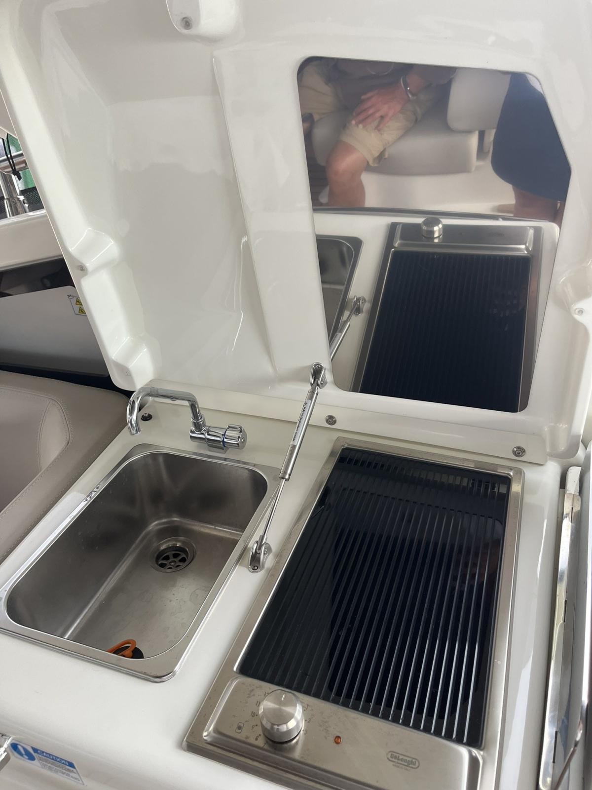 Alarme moteur, Alarme de pompe de cale, Ouverture du compartiment moteur électrique, Eau sous pression, Couleur spéciale, 2 Douche de cockpit (Una a prua e una a poppa), Flaps hydrauliques, Garage à annexe, Hard top (Con tenda), Lavabo dans le cockpit, Spots sous-marins, Passerelle (Idraulica a scomparsa), Plateforme arrière (AD IMMERSIONE IDRAULICA), Pompe de cale automatique, Pont en teck, Cockpit en teck, Prise de quai, Connexion eau sous pression à quai, Rollbar, Guindeau électrique, Echelle de bain, table de cockpit.