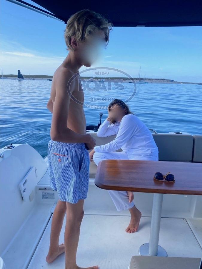 Bateau équipé propulseur d'étrave, guindeau électrique, radio FUSION, réchaud gaz, frigo, WC