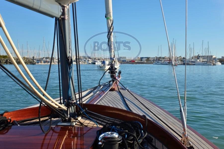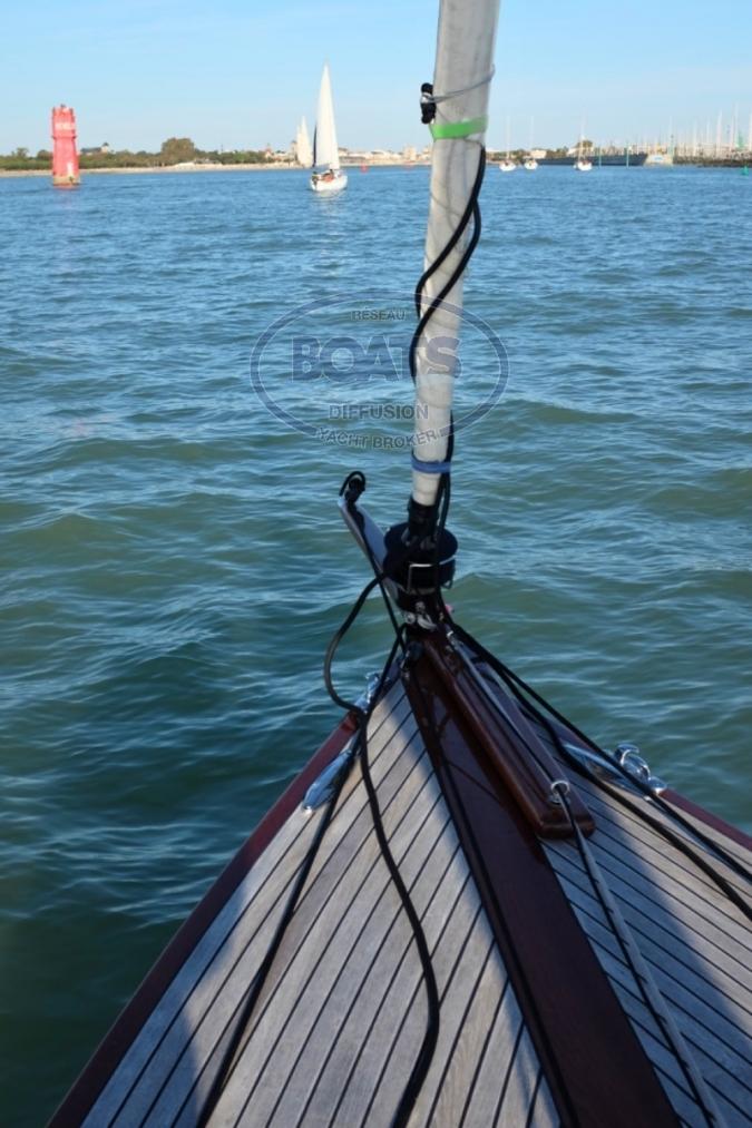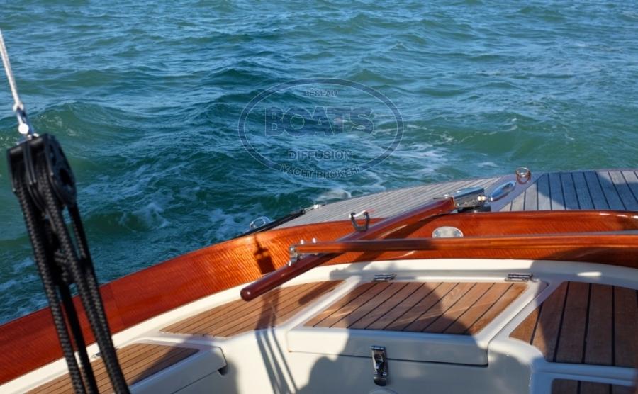 VISIBLE À LA ROCHELLE - CONTACTEZ JEAN-PIERRE OU AUDREY AU 06 09 42 34 55 - Superbe voilier day-boat au design néo-classique, construit en 2011. Équipé d’une quille relevable assistée par vérin hydraulique, offrant un tirant d’eau variable entre 0,76 m et 1,60 m. Bi-safrans, conçu pour s’échouer. Avec un poids de 1330 kg, il est facilement transportable sur remorque.