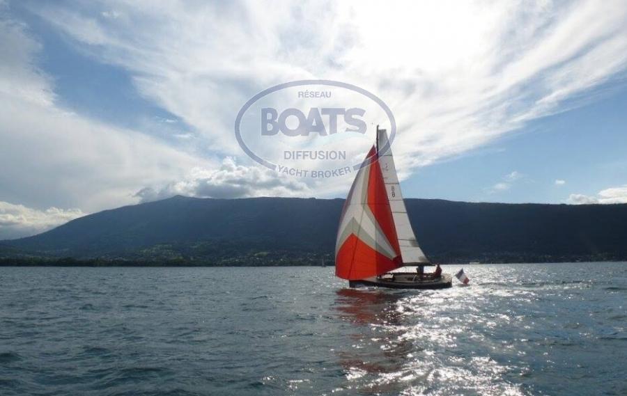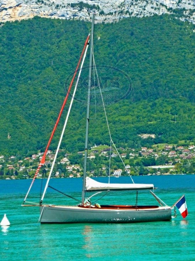 Côté confort, il est équipé d’un vaste cockpit central doté de deux winchs Harken, avec un retour centralisé des manœuvres courantes. Visible sous hangar au chantier naval Esprit Nautic pour son hivernage. Historique de navigation : 10 ans sur lac d'Annecy, pertuis rochelais.