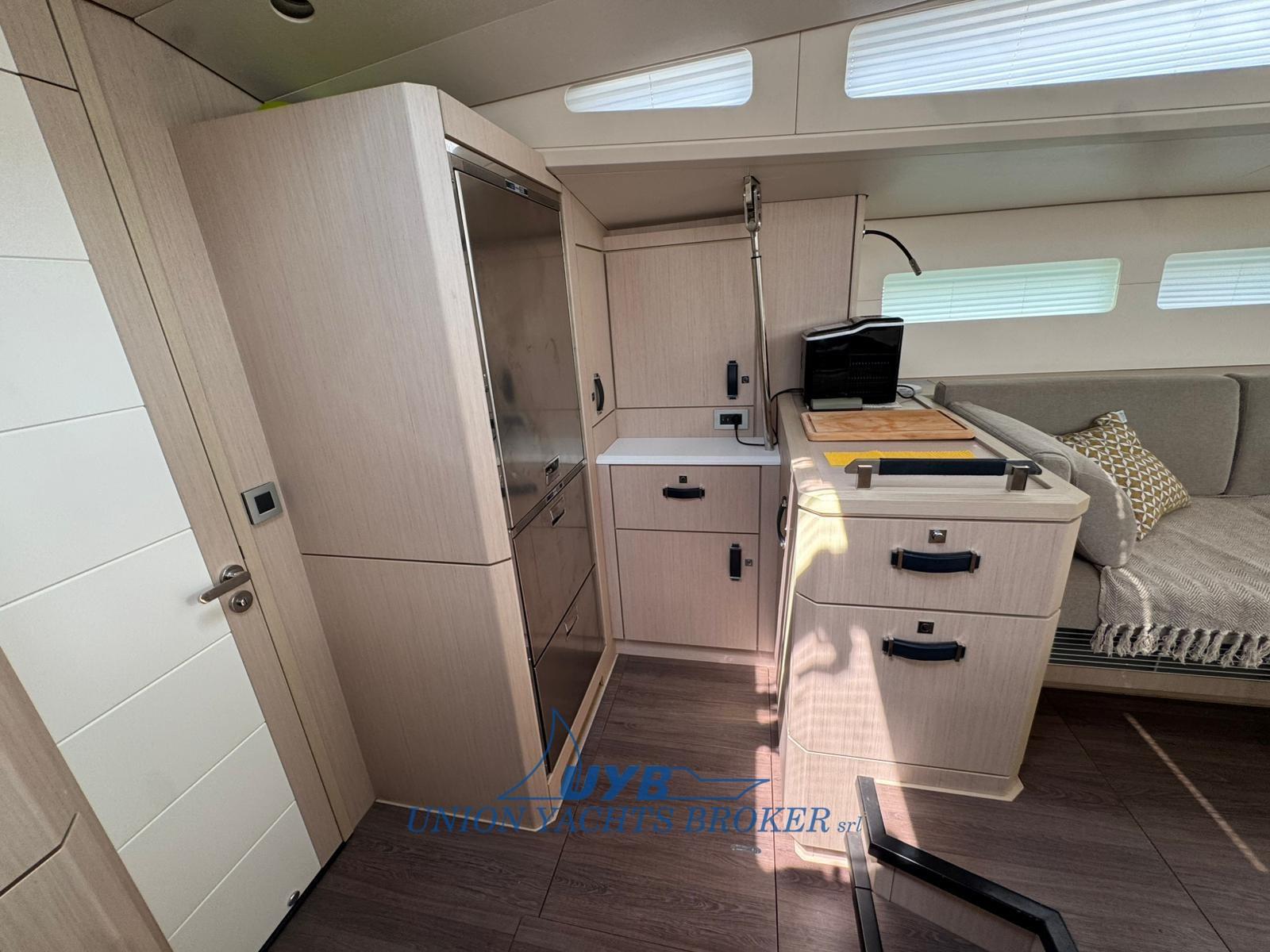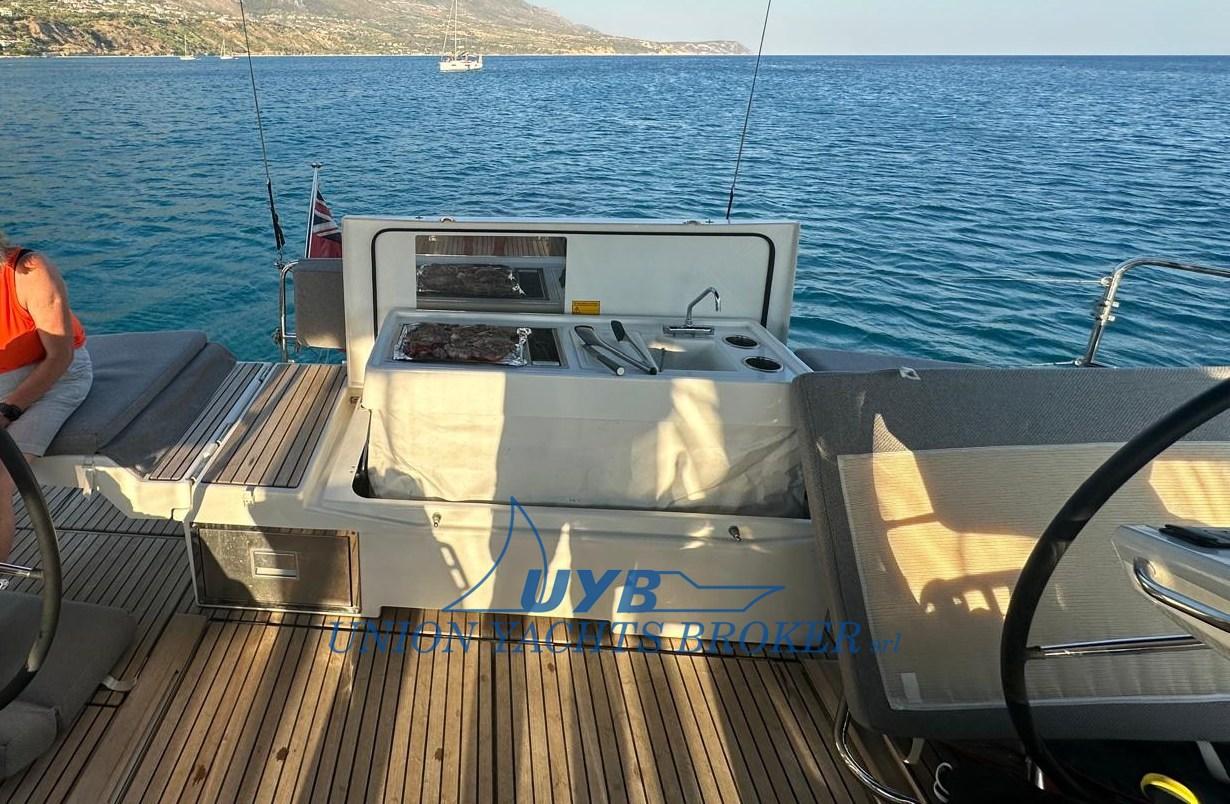 Eau sous pression, Douche de cockpit, Double barre à roue, Propulseur de poupe (retraibile), Garage à annexe, Lavabo dans le cockpit, Éclairage de courtoisie, Passerelle (idraulica), Plateforme arrière, Pompe de cale manuelle, Cockpit en teck, Prise de quai, Connexion eau sous pression à quai, Guindeau électrique, table de cockpit (abbattibile), 2 Winch (70-2 STA), 2 Winch électrique (Rewind 50-2 STA).
