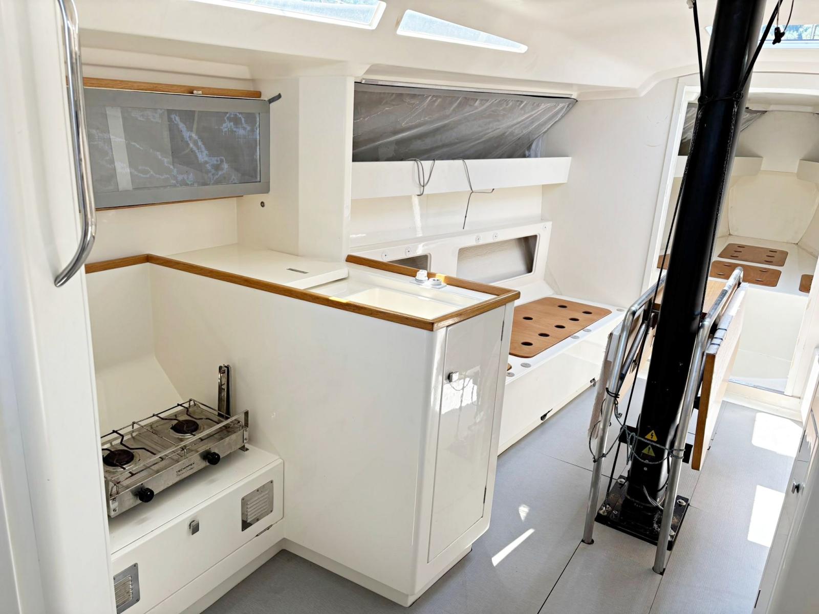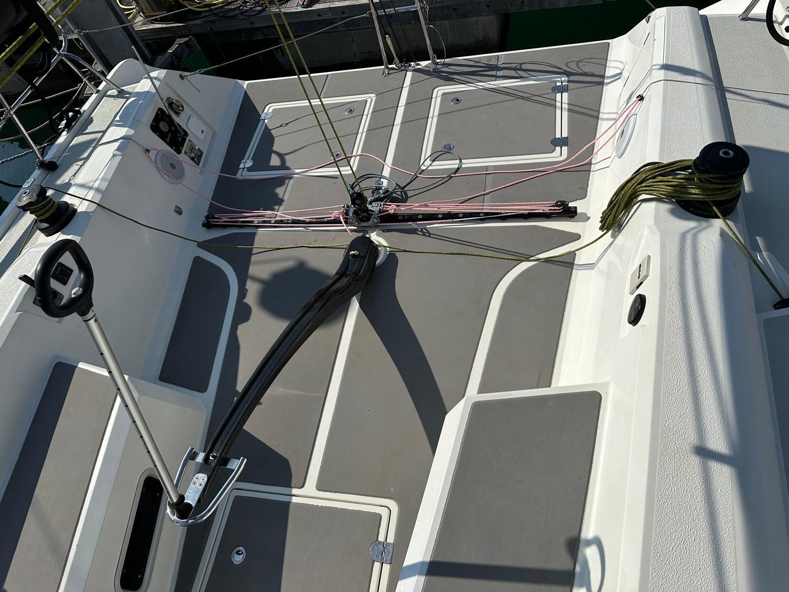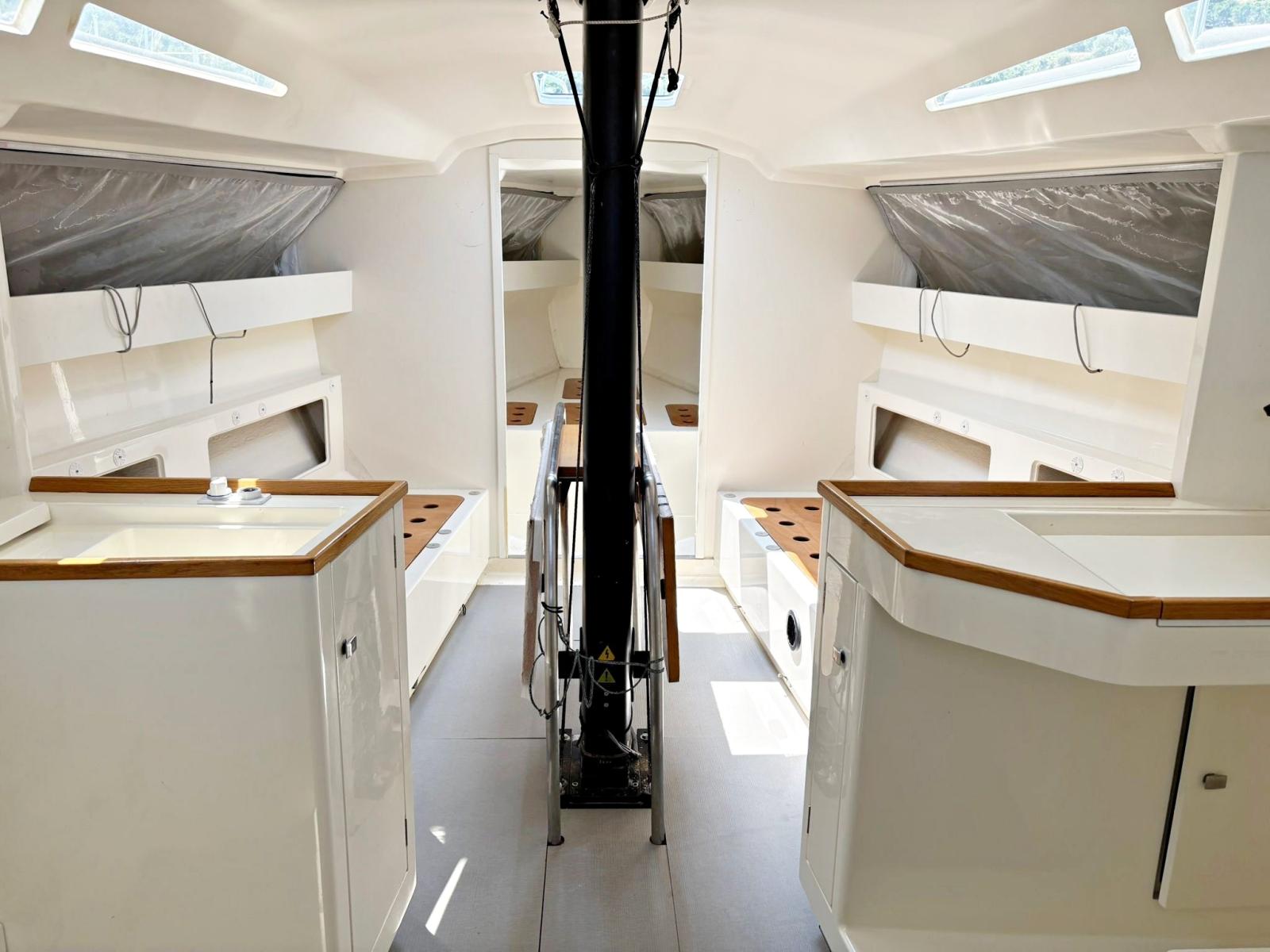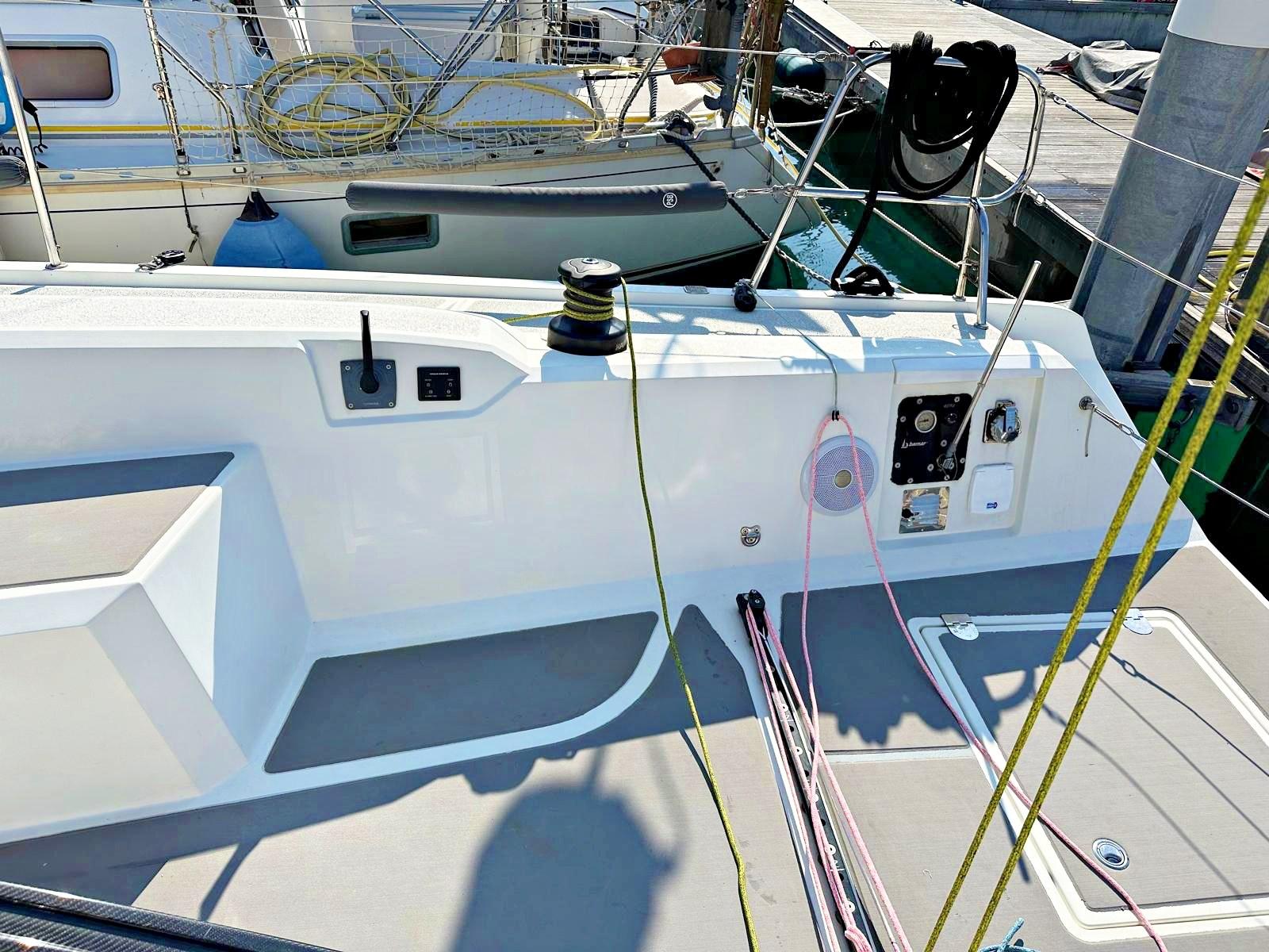 Eau sous pression, 2 Batteries, Douche de cockpit, Pompe de cale manuelle, Prise de quai, Répétiteur électronique, Gréement Rod (Carbon EC3 SouthernSpars 2025), Tuff Luff (2025), 6 Winch, Windex.