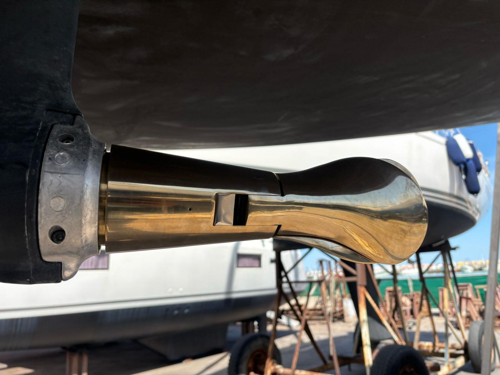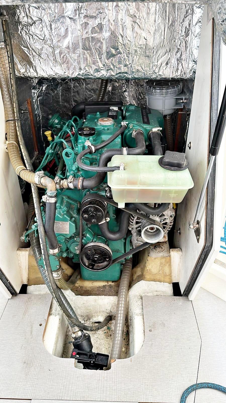 Moteur Volvo Penta 40cv avec Sdrive, hélice bipale repliable Gori Race 2025. Course antifouling et service au moteur 2025. Révision hydraulique de l’étai 2025. Nouvelle pompe à eau moteur 2025.