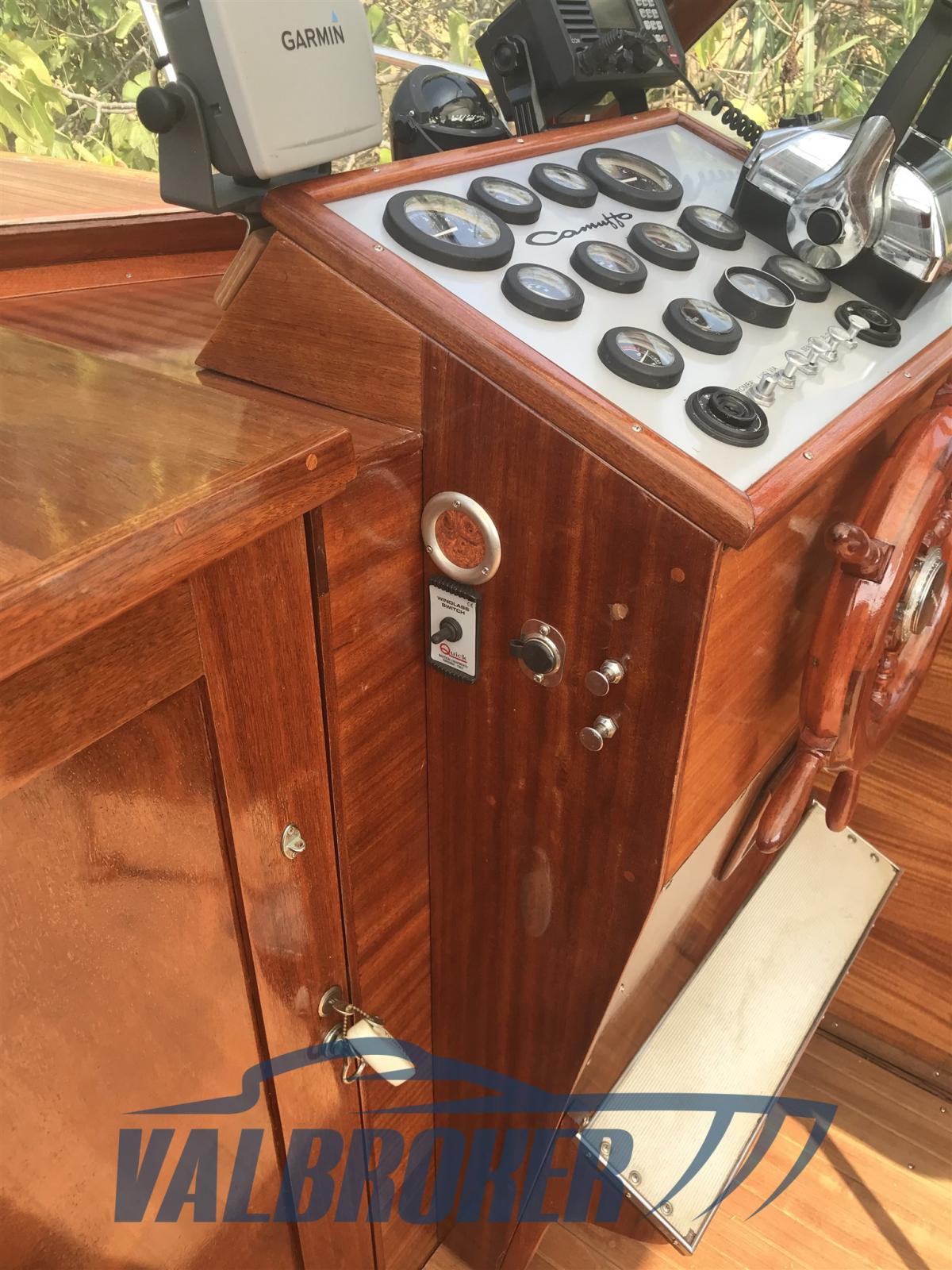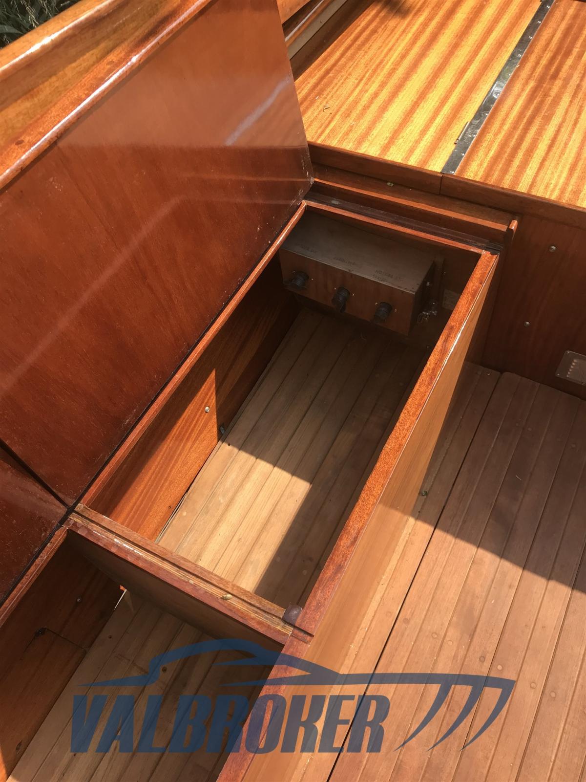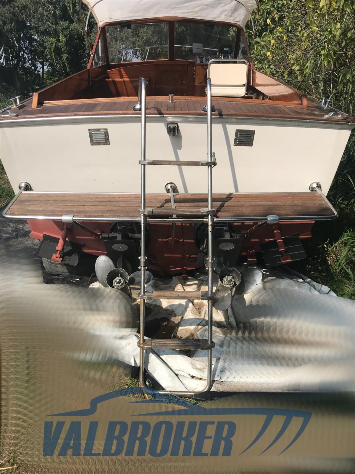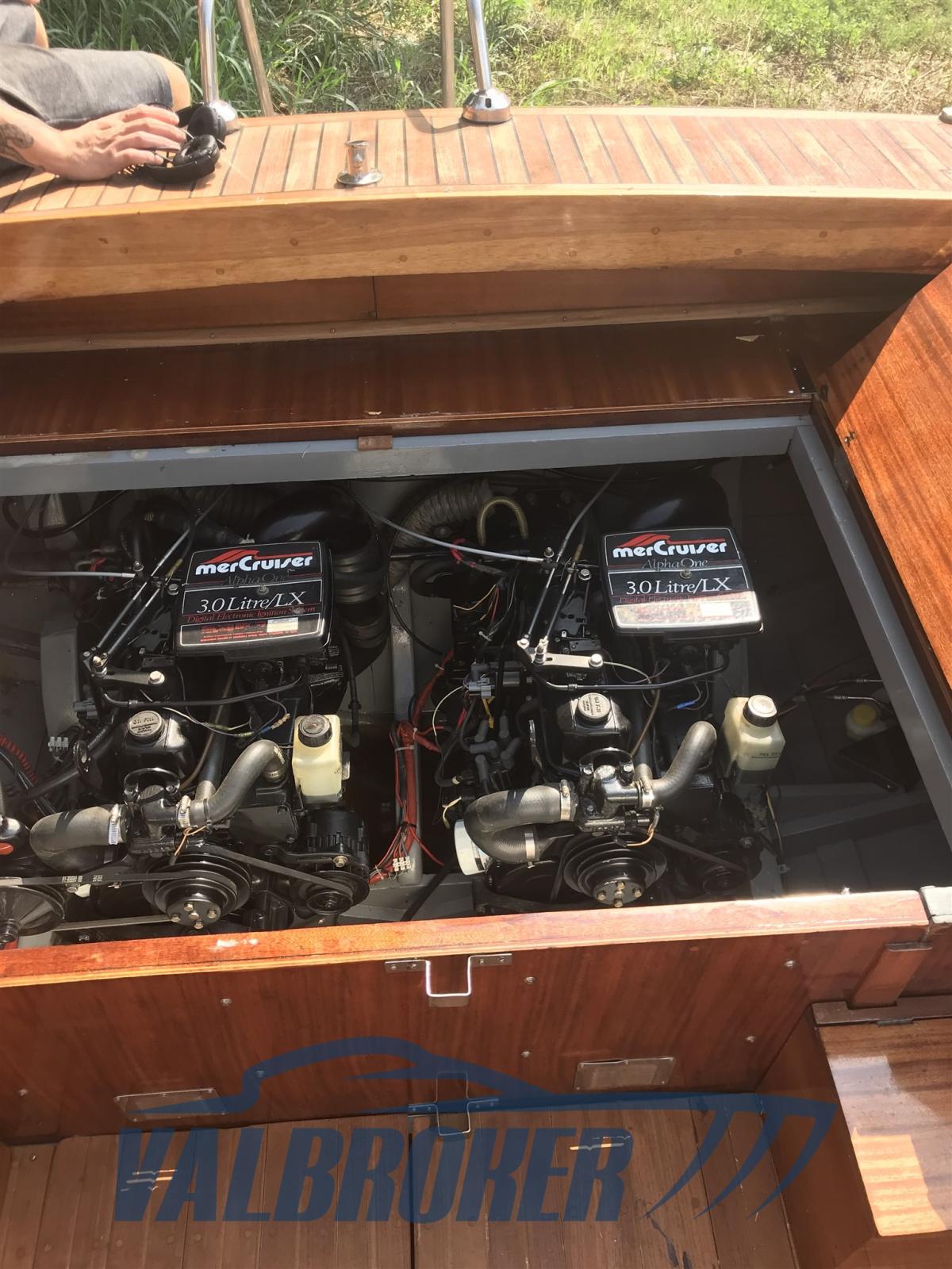 Entièrement en bois d’acajou, de cerisier et de teck. Châssis cabine avec 2 Mercruiser 3.0 Alpha I à injection d’essence de 140 ch. Modèle unique. Réaménagé en 2018 par un expert en bateaux en bois. Les moteurs ont été refaits en 2020 et révisés en 2022.