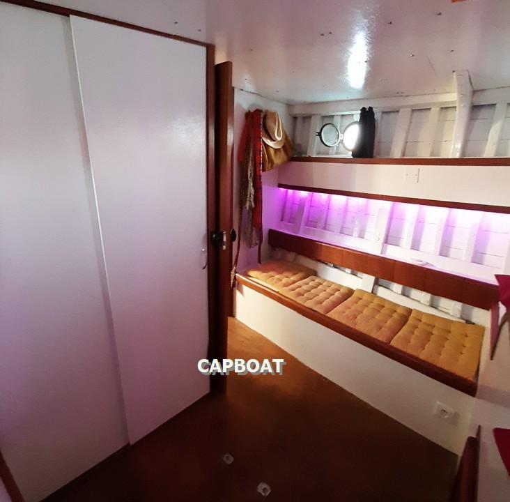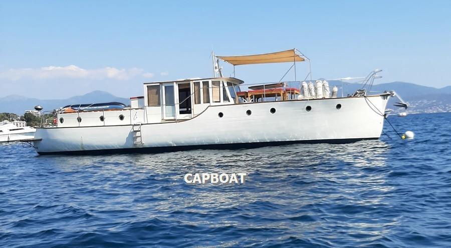 L'Amira est un Motor Yacht de 1933 dessiné par l'achitecte O.M. Watts. Il est classé BIP (batiment d'intérêt patrimonial). Sa robuste structure est constituée sur 3 niveaux de serres et bordés de 40. Ce bateau dont l'histoire est riche aurait participé à l'opération DYNAMO à Dunkerque en 1940 pour le rembarquement des troupes anglaises. Il a subi plusieurs refits depuis sa construction et une grande partie de son historique est disponible sur demande. Depuis 2018 la coque a eu un déshabillage complet sur les 2/3 de sa longueur, le moteur a été déposé ainsi que les cuves d'eau. Des varangues et des membrures ont été remplacées et les varangues ont été cintrées à la vapeur et rivetées par des rivets en cuivre. l'Amira navigue chaque année avec ces propriétaires pour des croisières alliant le confort et le charme des bateaux anciens. Il dispose d'une place de port. Visite possible tous les jours sur rendez - vous. N'hésitez pas à nous contacter si vous souhaitez plus d'informations.