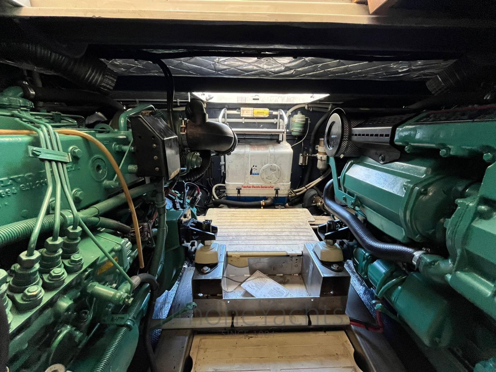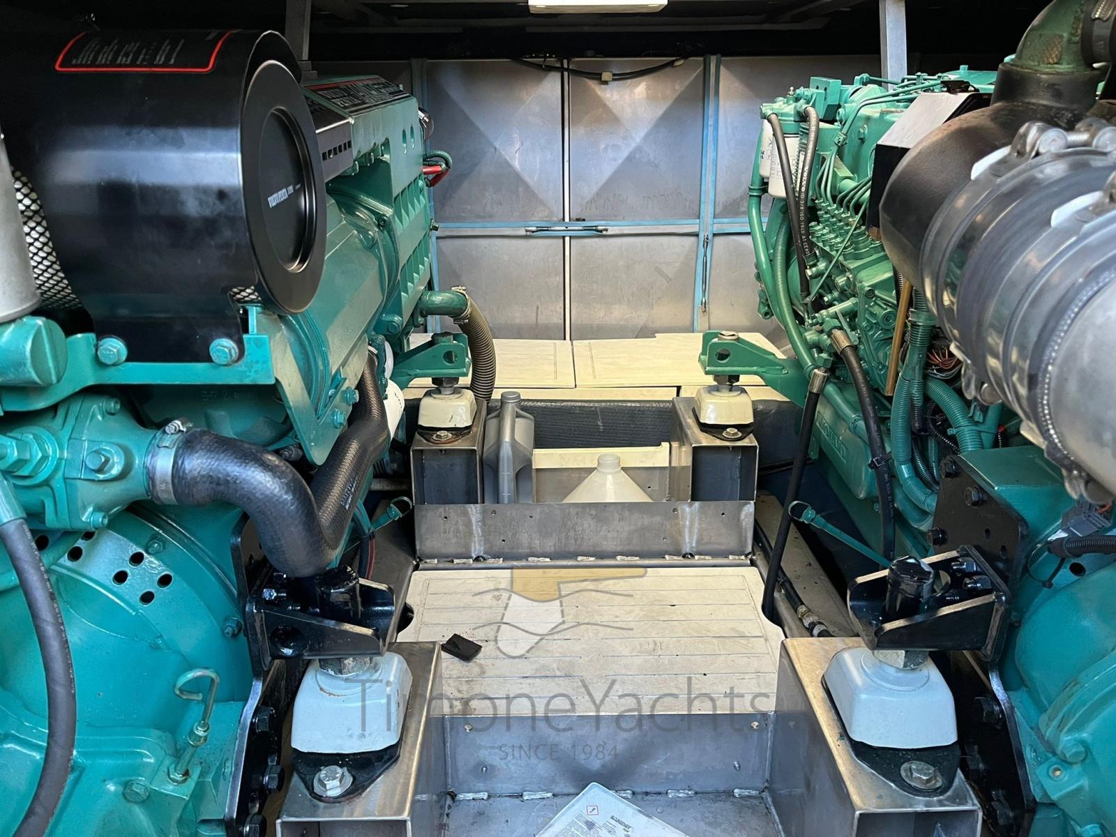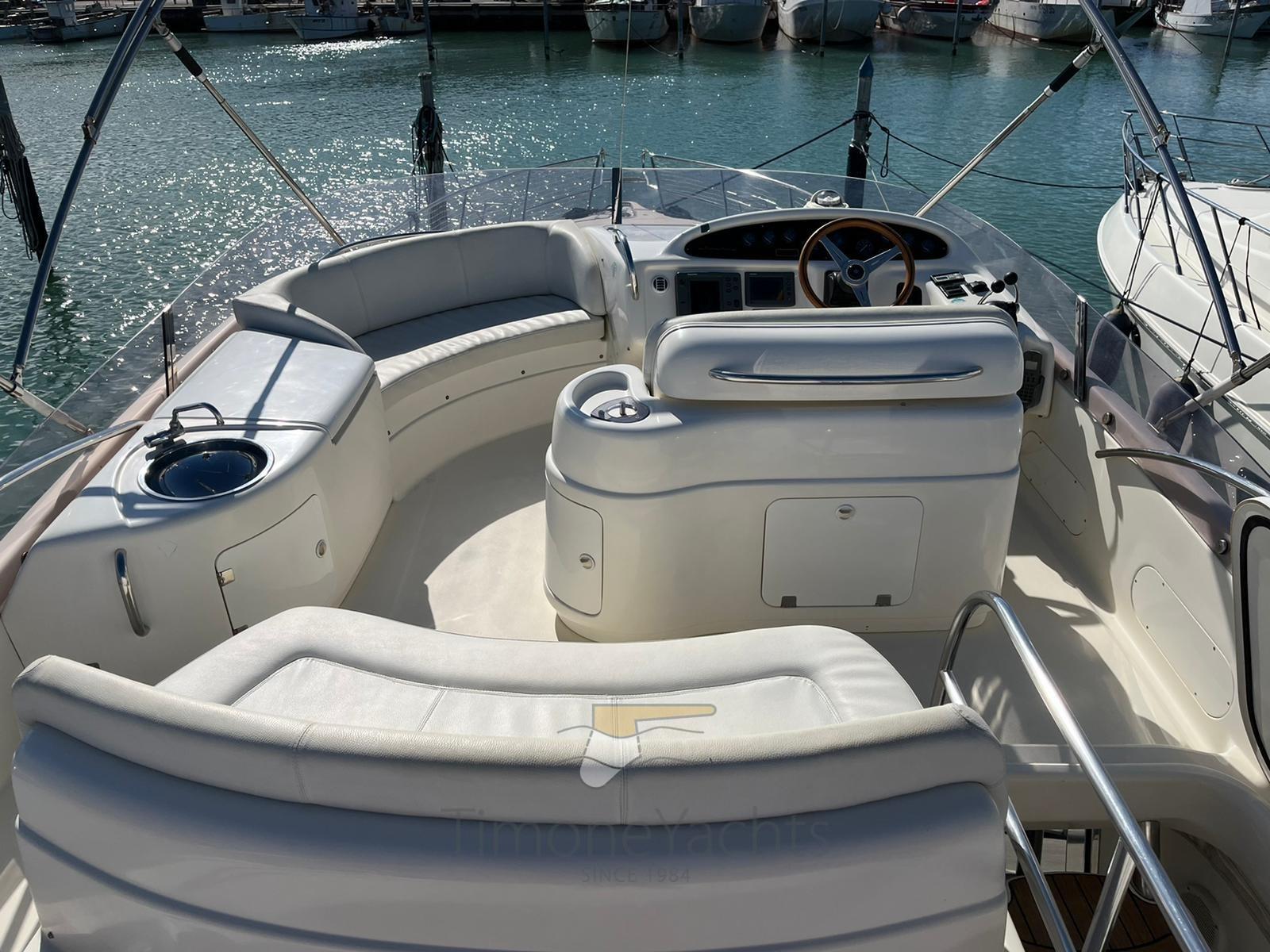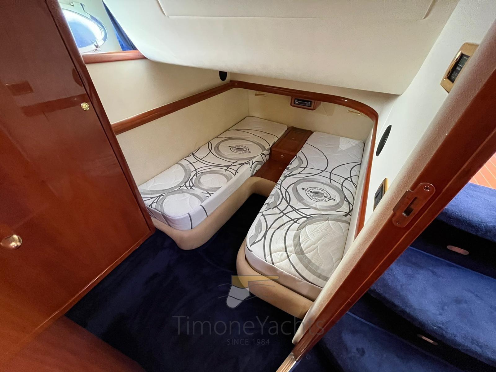 Alarme moteur, Alarme de pompe de cale, Eau sous pression, Douche de cockpit, Double barre à roue, Phare de poursuite, 2 Flaps hydrauliques, Indicateurs de flaps, Éclairage de courtoisie, Passerelle (in teak), Plateforme arrière (in teak), Pompe de cale automatique, Cockpit en teck, Prise de quai, Onduleur, Rollbar, Guindeau électrique, Echelle de bain, Corne.
