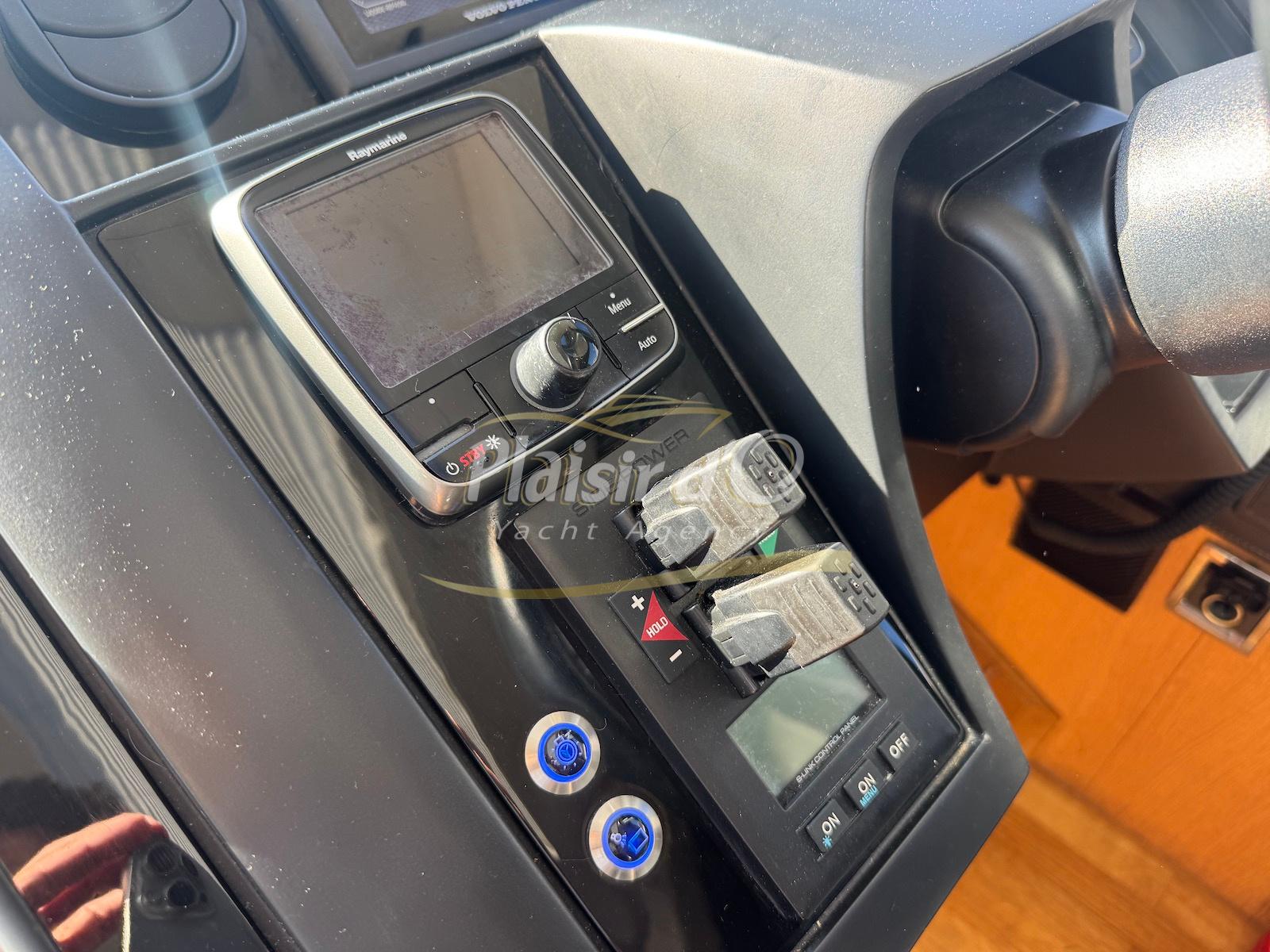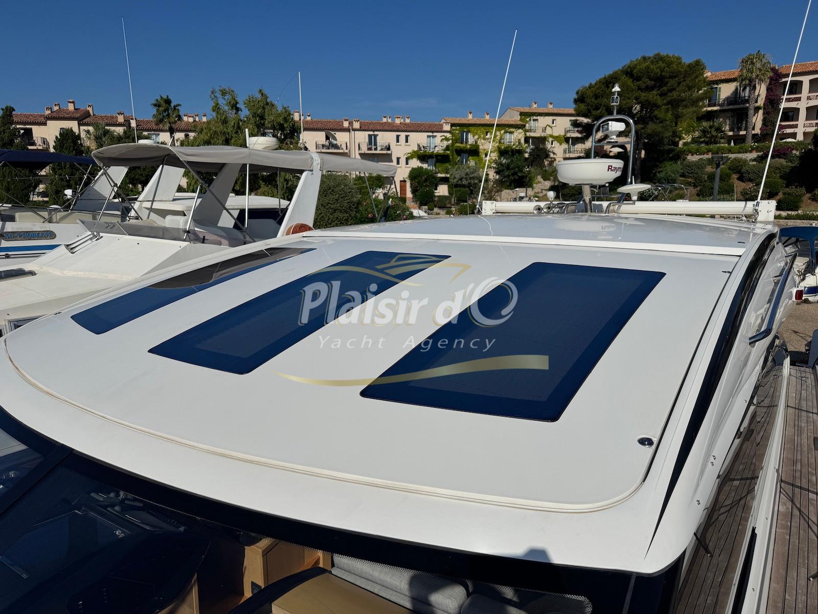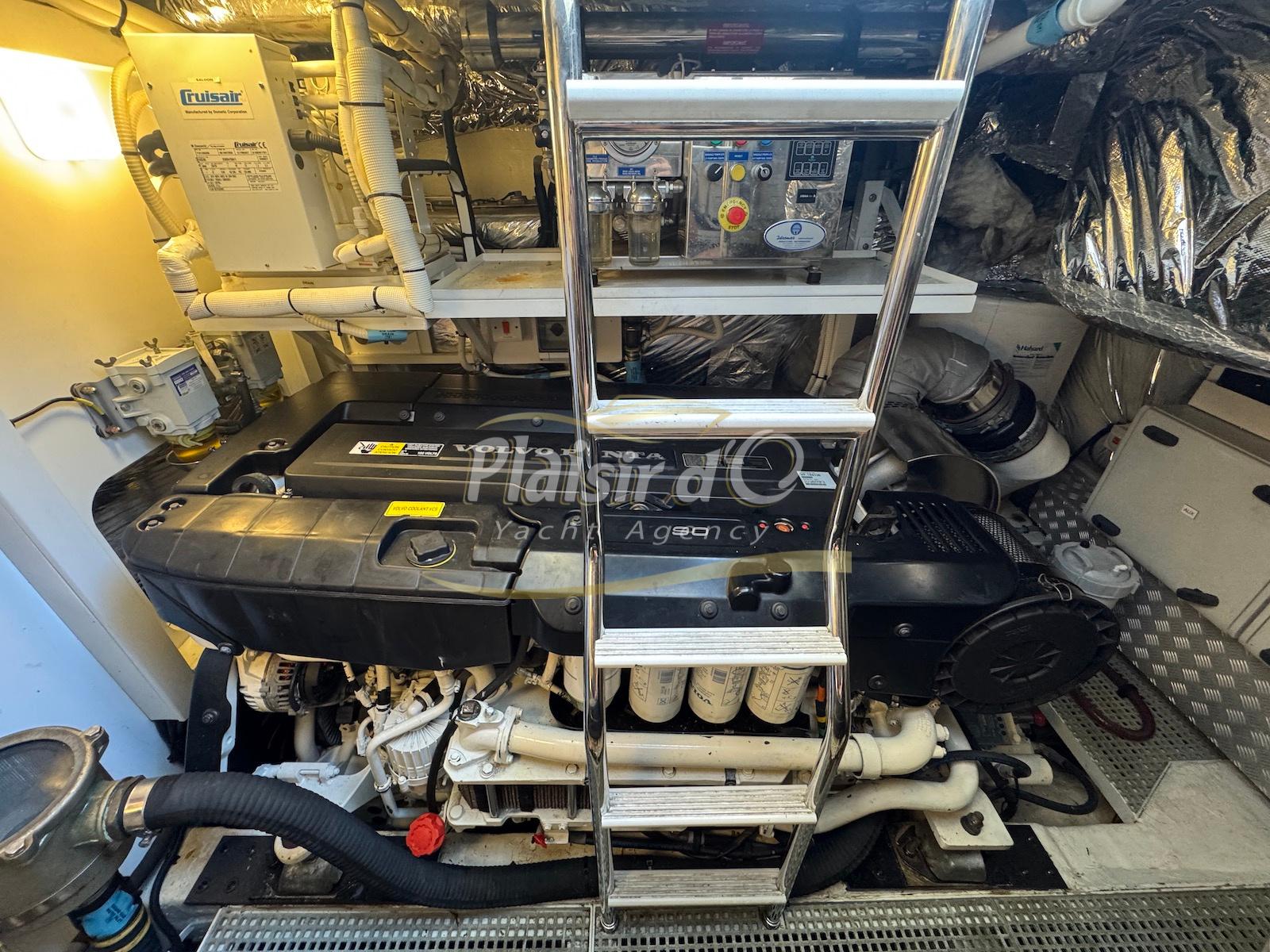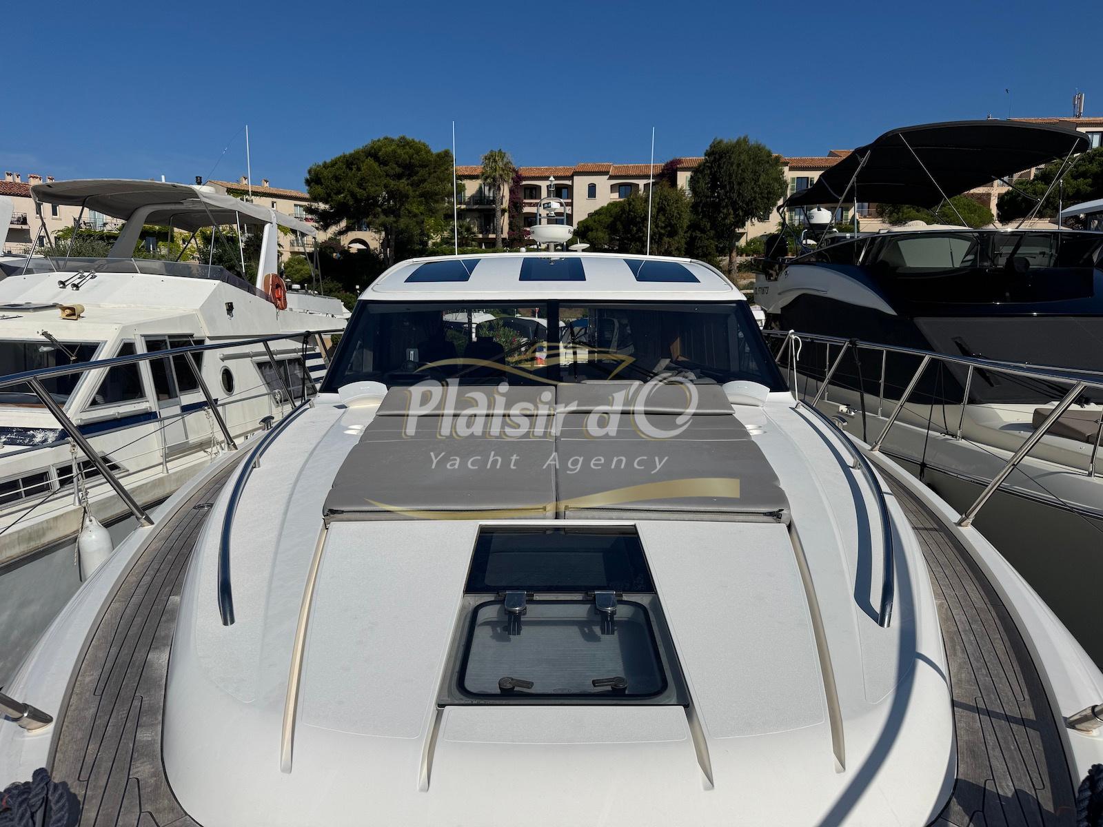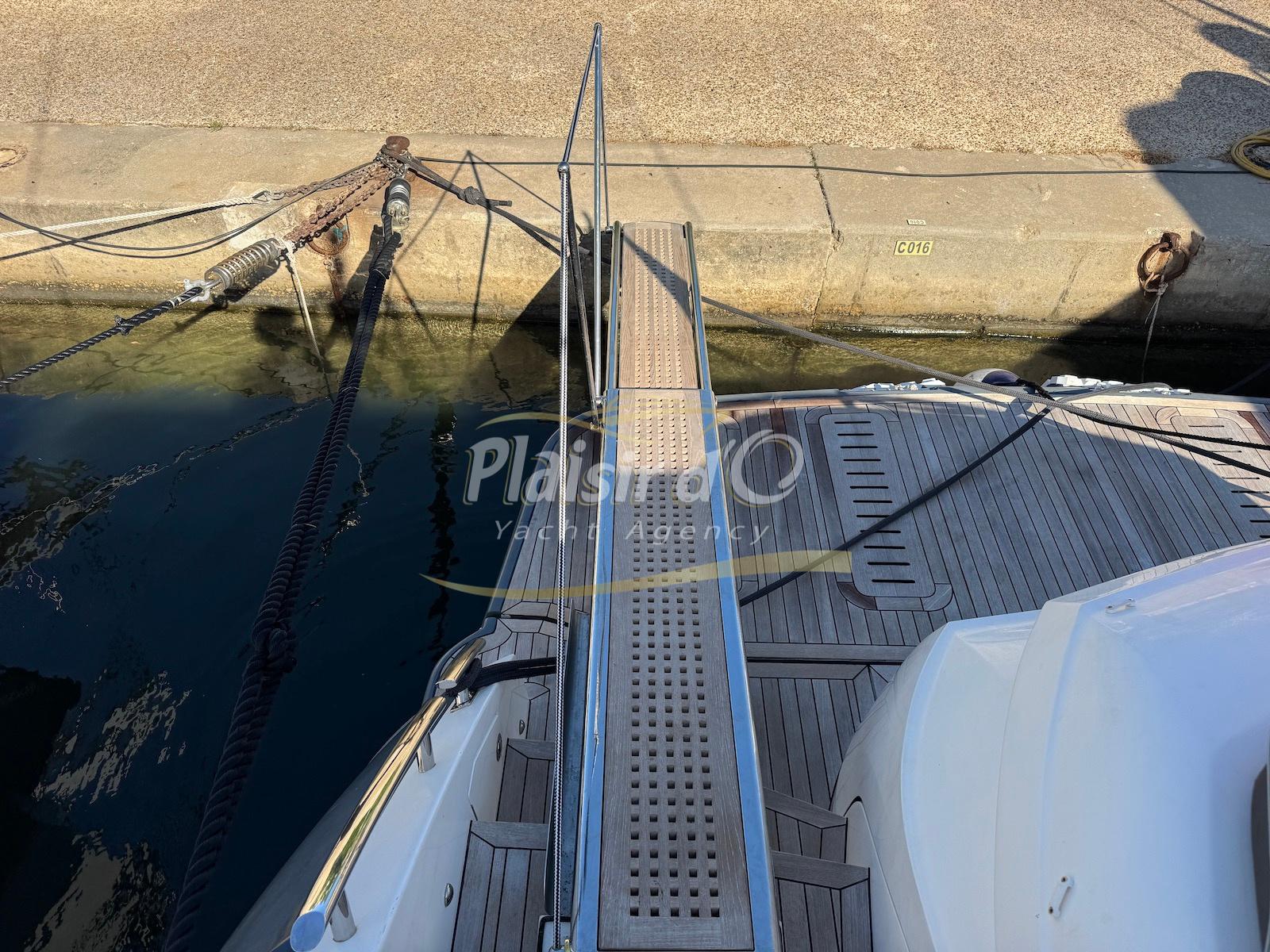 TOUTES OPTIONS : grosse motorisation Volvo Penta D13-900cv, yacht controller, Seakeeper, propulseur de poupe et de proue, climatisation reversible, désalinisateur, passerelle hydraulique rétractable, plate-forme de bain immergeable, générateur 11KW, GPS, radar, VHF, cockpit/plateforme de bain / pont en teck Refaits à neuf, peinture de coque récente, sellerie récente, 3 TV, machine à laver le linge, lave vaisselle, four micro ondes, peinture de coque récente , icemaker, store électrique, garage à annexe avec treuil électrique, flaps neuve, batterie service récentes …