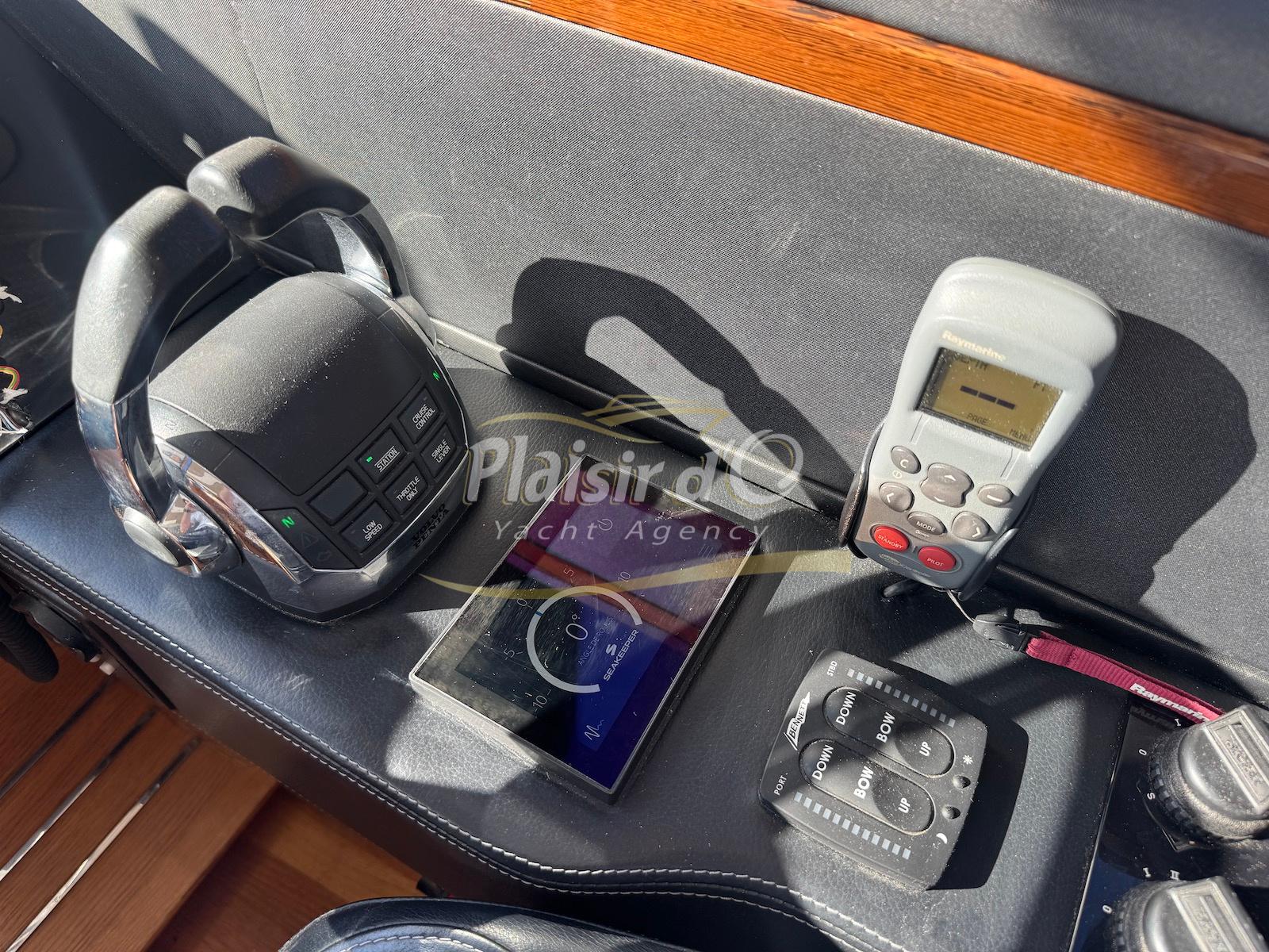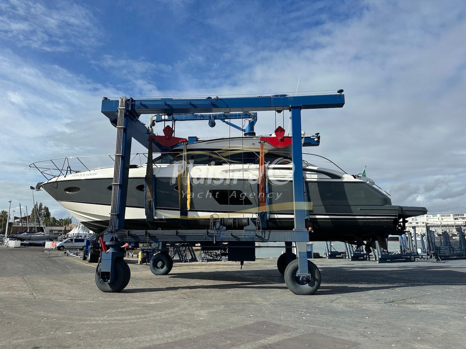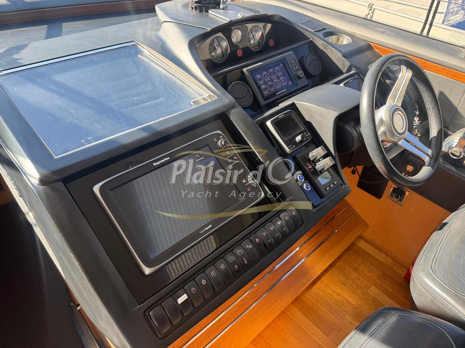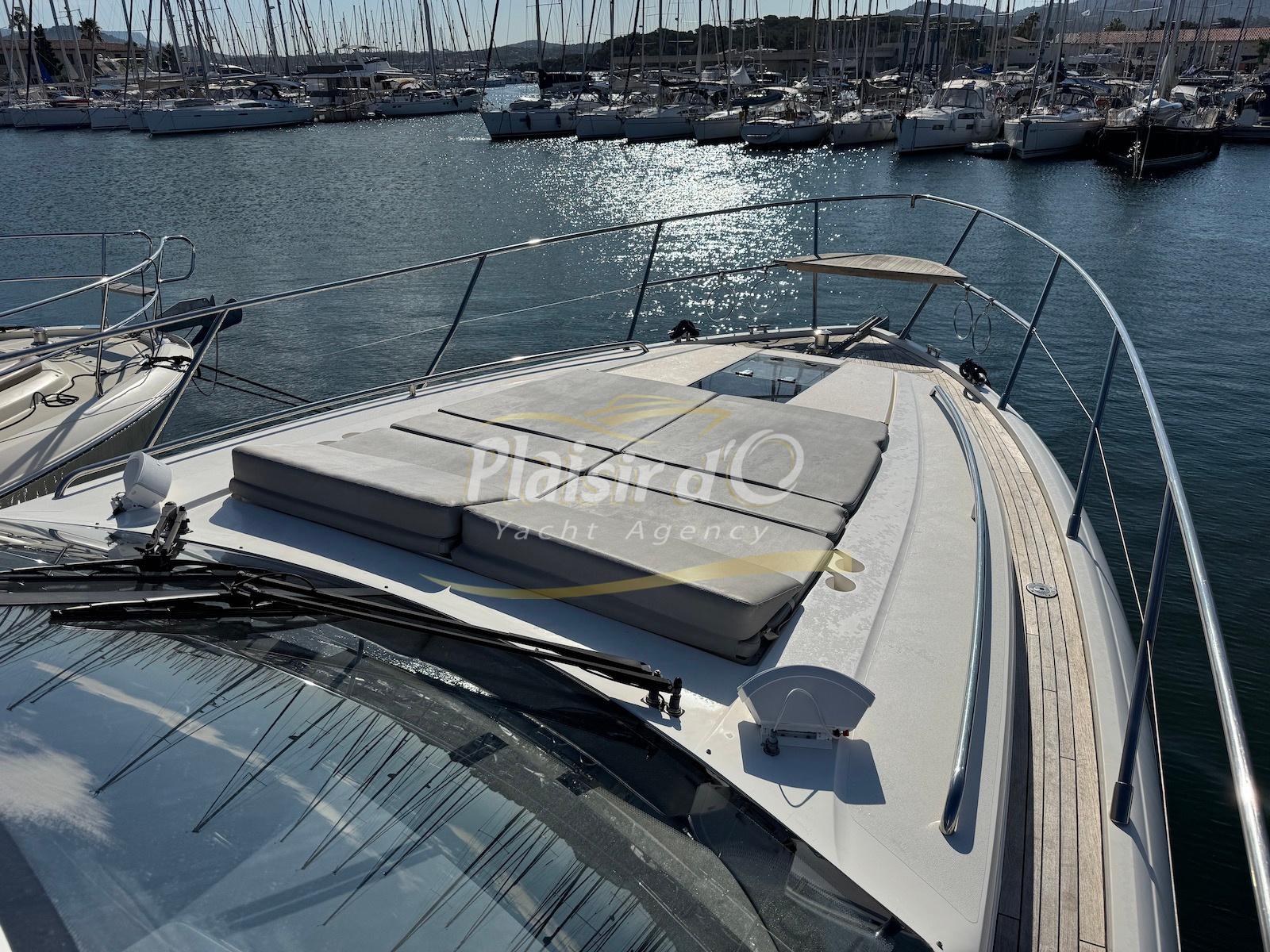 TOUTES OPTIONS : grosse motorisation Volvo Penta D13-900cv, yacht controller, Seakeeper, propulseur de poupe et de proue, climatisation reversible, désalinisateur, passerelle hydraulique rétractable, plate-forme de bain immergeable, générateur 11KW, GPS, radar, VHF, cockpit/plateforme de bain / pont en teck Refaits à neuf, peinture de coque récente, sellerie récente, 3 TV, machine à laver le linge, lave vaisselle, four micro ondes, peinture de coque récente , icemaker, store électrique, garage à annexe avec treuil électrique, flaps neuve, batterie service récentes …