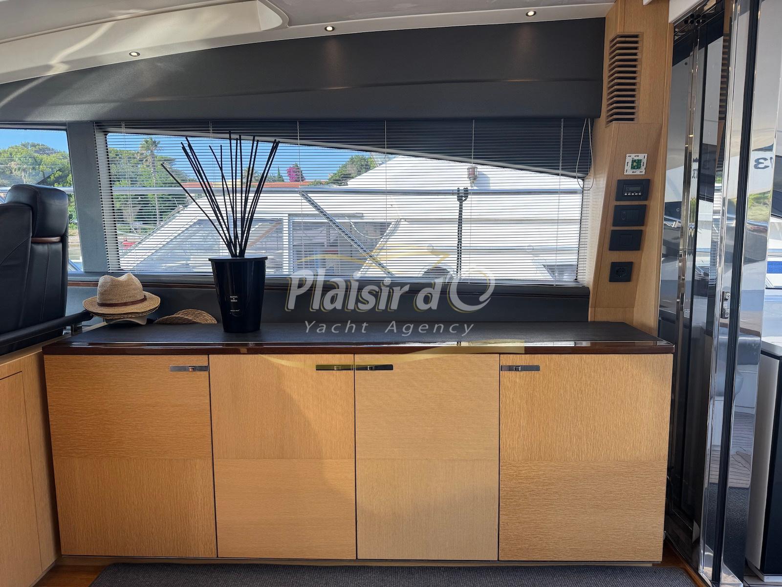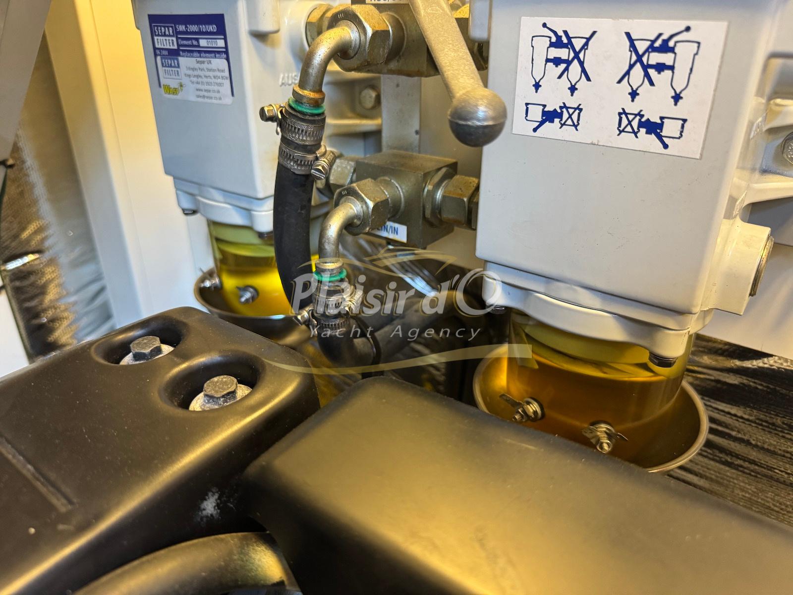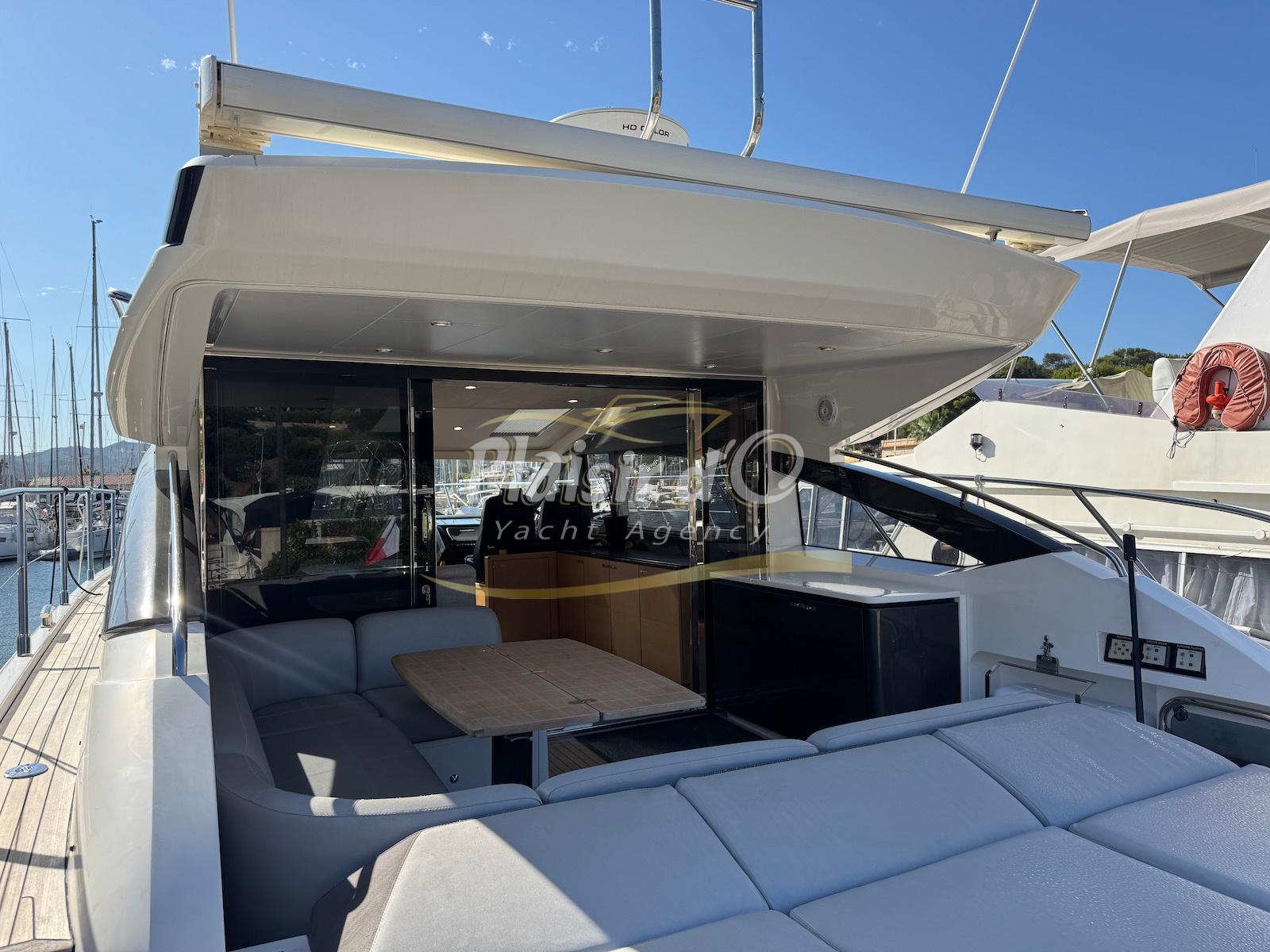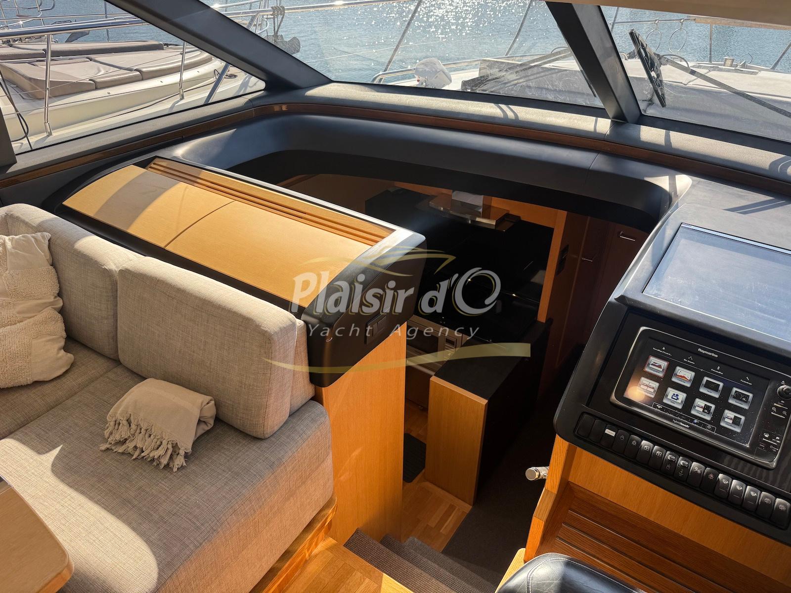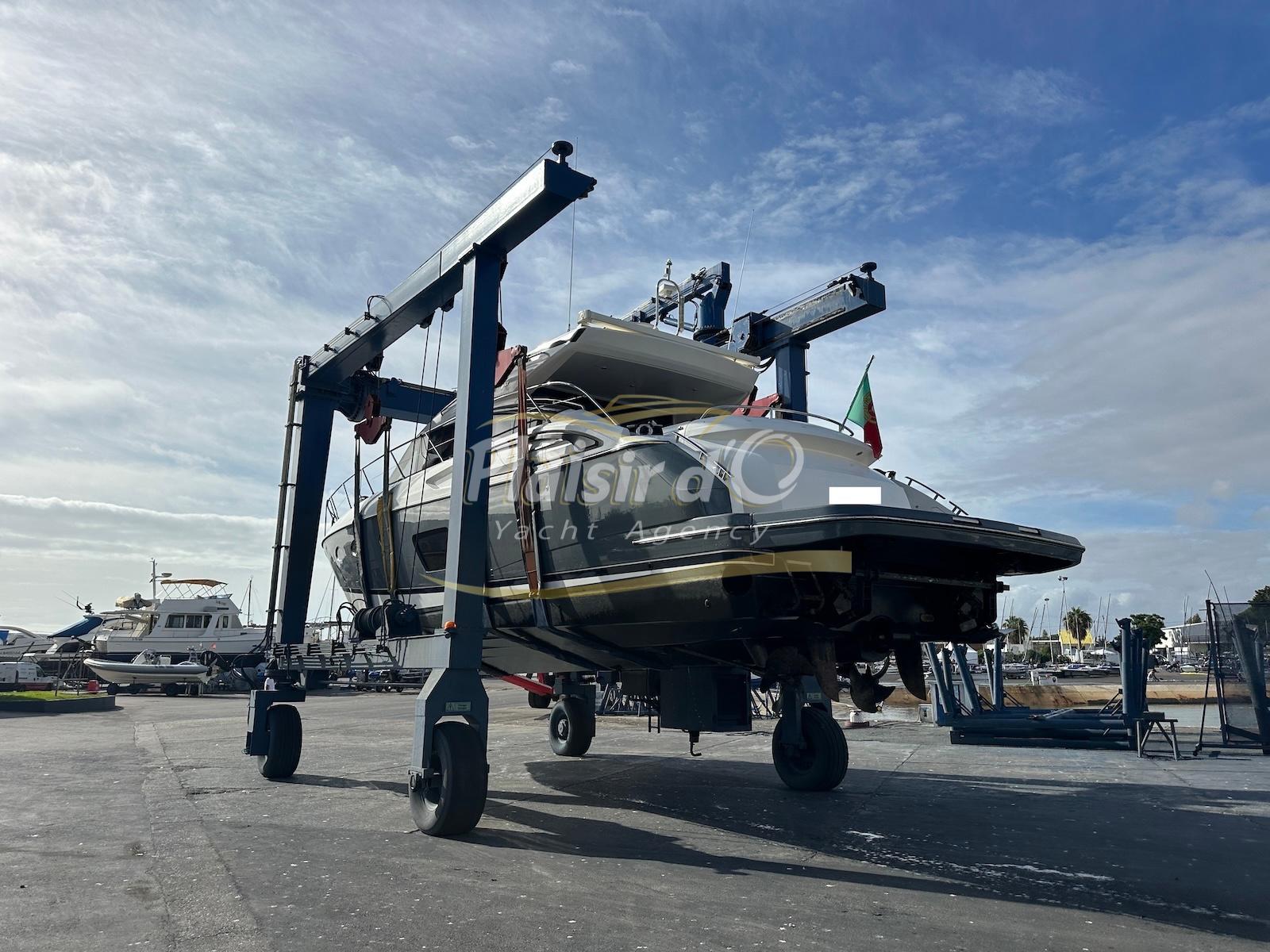 TOUTES OPTIONS : grosse motorisation Volvo Penta D13-900cv, yacht controller, Seakeeper, propulseur de poupe et de proue, climatisation reversible, désalinisateur, passerelle hydraulique rétractable, plate-forme de bain immergeable, générateur 11KW, GPS, radar, VHF, cockpit/plateforme de bain / pont en teck Refaits à neuf, peinture de coque récente, sellerie récente, 3 TV, machine à laver le linge, lave vaisselle, four micro ondes, peinture de coque récente , icemaker, store électrique, garage à annexe avec treuil électrique, flaps neuve, batterie service récentes …