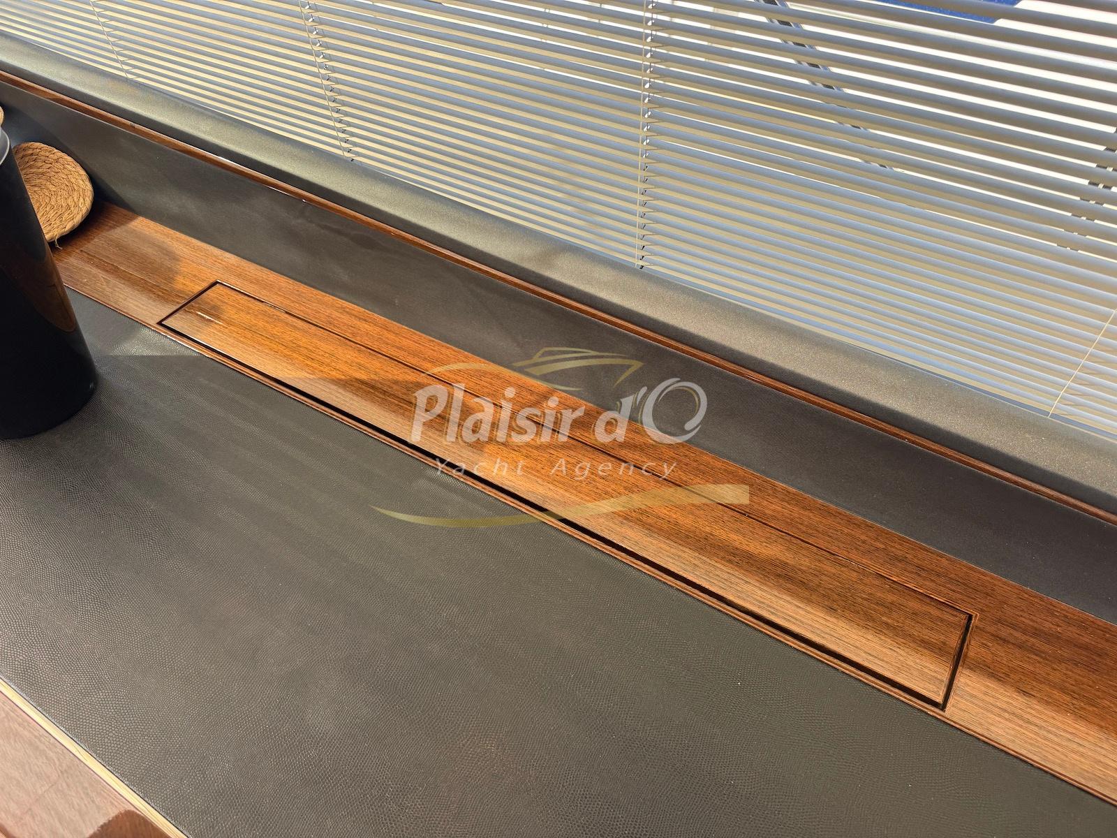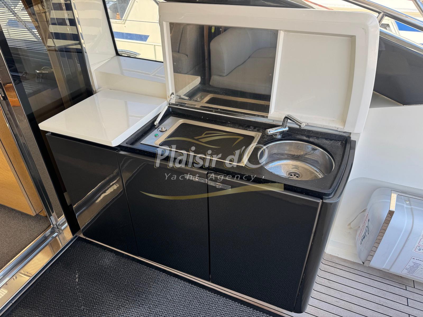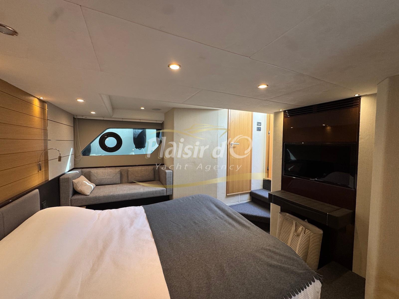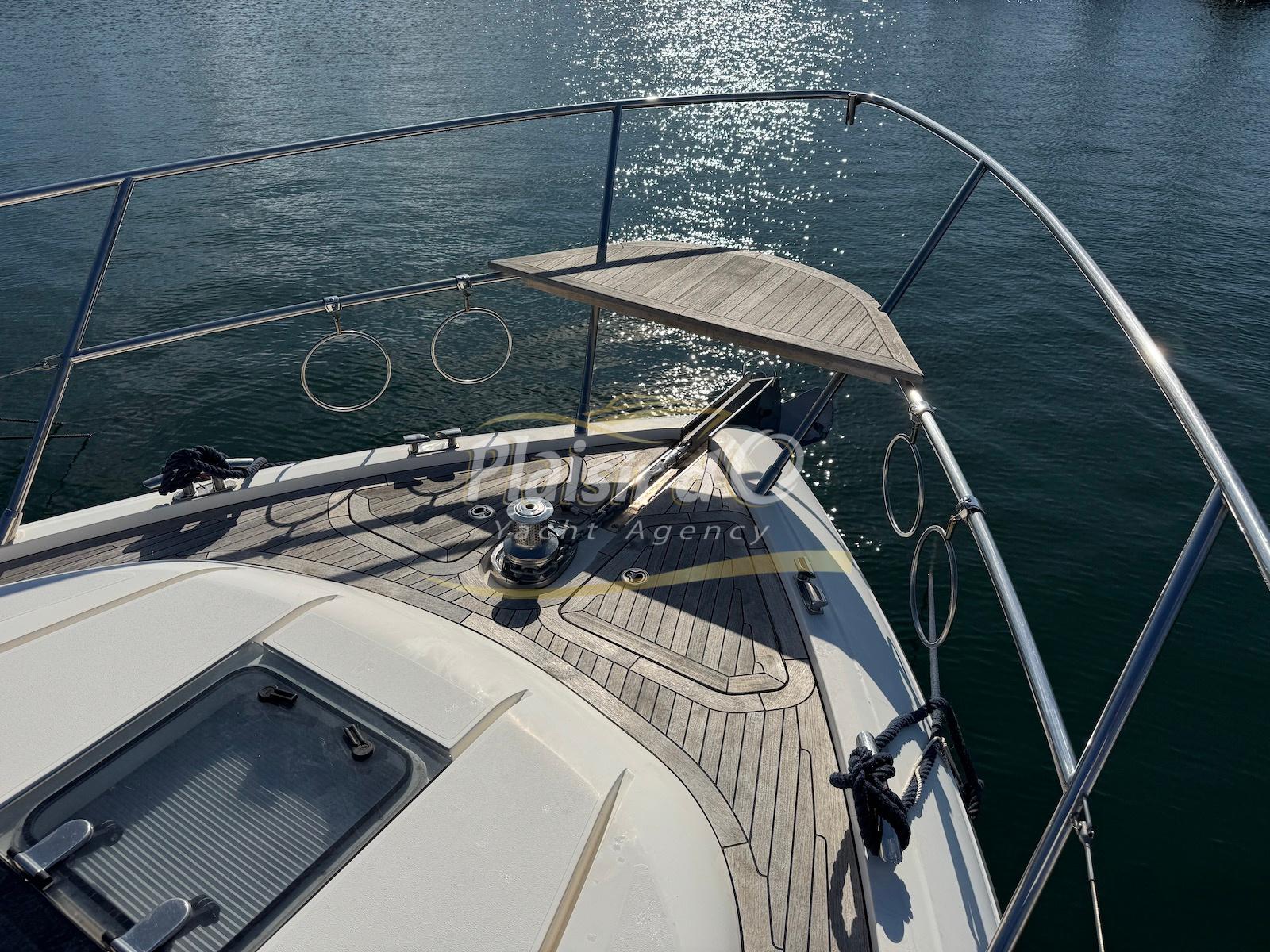 TOUTES OPTIONS : grosse motorisation Volvo Penta D13-900cv, yacht controller, Seakeeper, propulseur de poupe et de proue, climatisation reversible, désalinisateur, passerelle hydraulique rétractable, plate-forme de bain immergeable, générateur 11KW, GPS, radar, VHF, cockpit/plateforme de bain / pont en teck Refaits à neuf, peinture de coque récente, sellerie récente, 3 TV, machine à laver le linge, lave vaisselle, four micro ondes, peinture de coque récente , icemaker, store électrique, garage à annexe avec treuil électrique, flaps neuve, batterie service récentes …