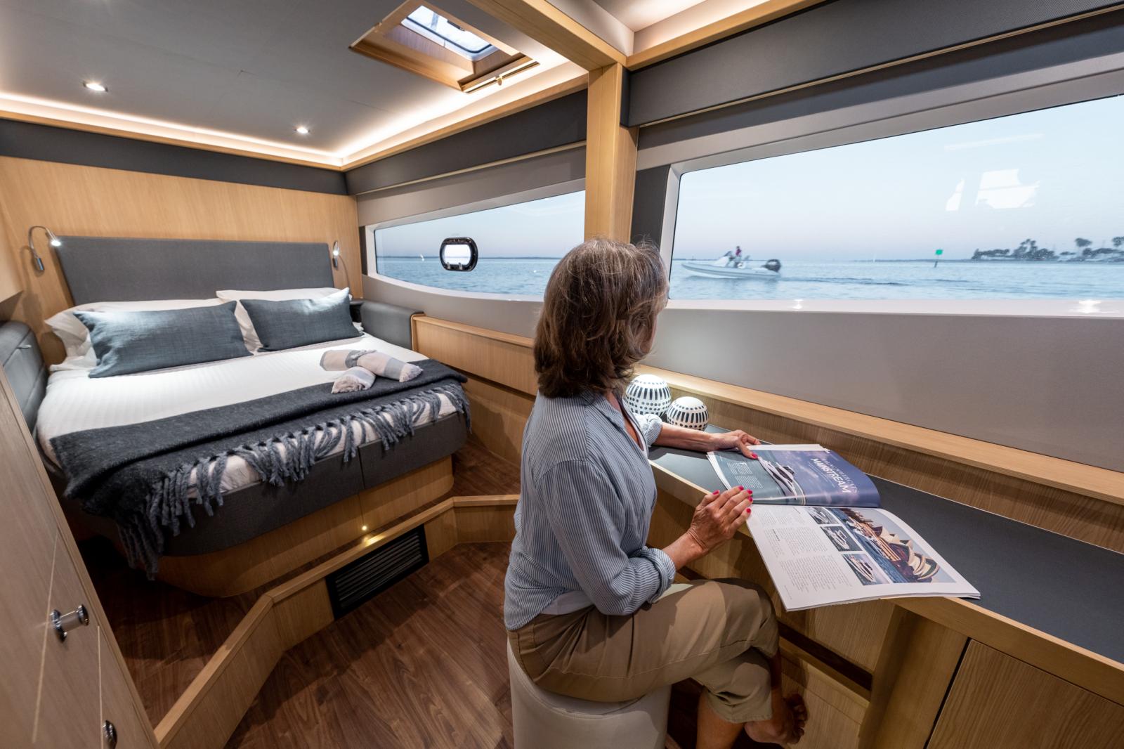 Grande largeur permettant plus d’espace habitable et une meilleure circulation à bord.