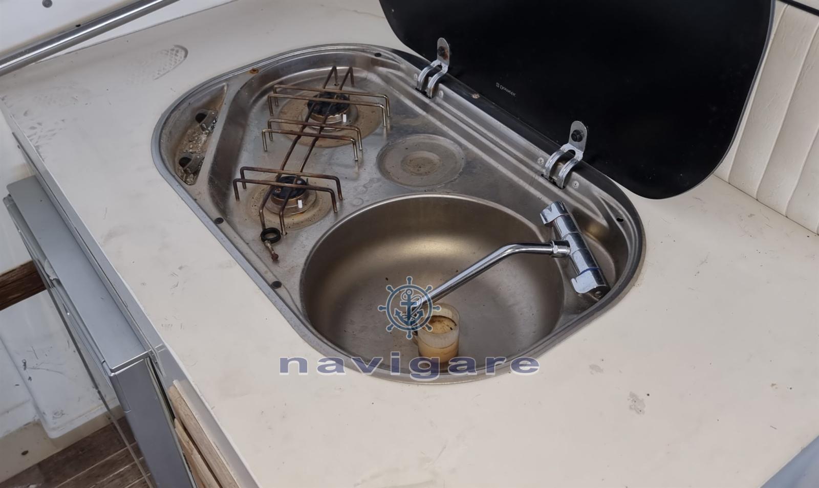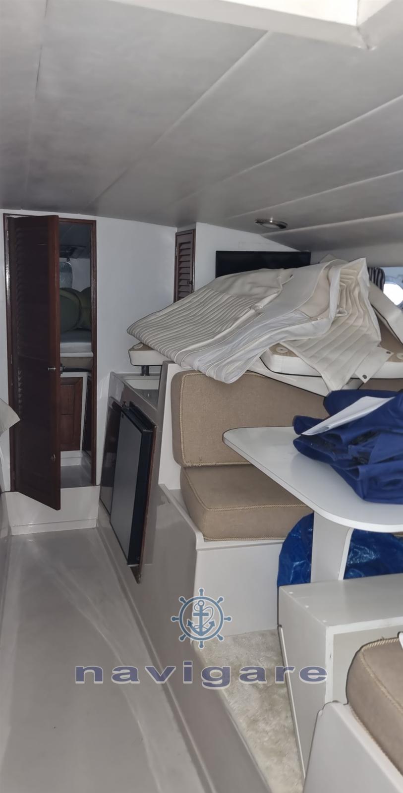 Alarme moteur, Eau sous pression, Douche de cockpit, Flaps électriques, Plateforme arrière, Pompe de cale automatique, Cockpit en teck, Prise de quai, Guindeau électrique, Echelle de bain, table de cockpit.