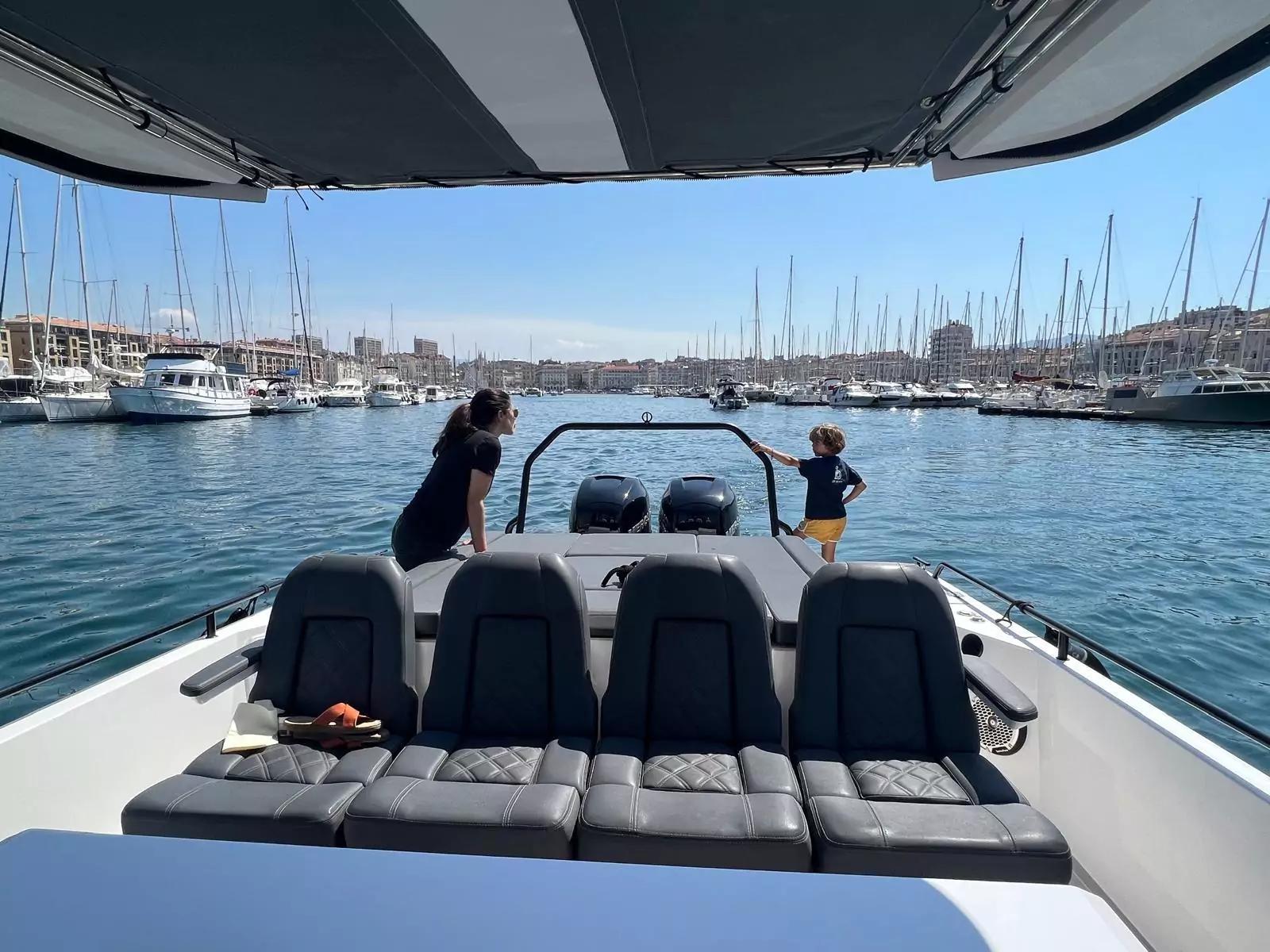 Ce modèle de 2019 séduit par son design moderne et sa silhouette sportive. Propulsé par deux moteurs Mercury Verado L6 de 350 chevaux (seulement 750 heures), il offre des performances remarquables et une navigation fluide en toutes conditions.