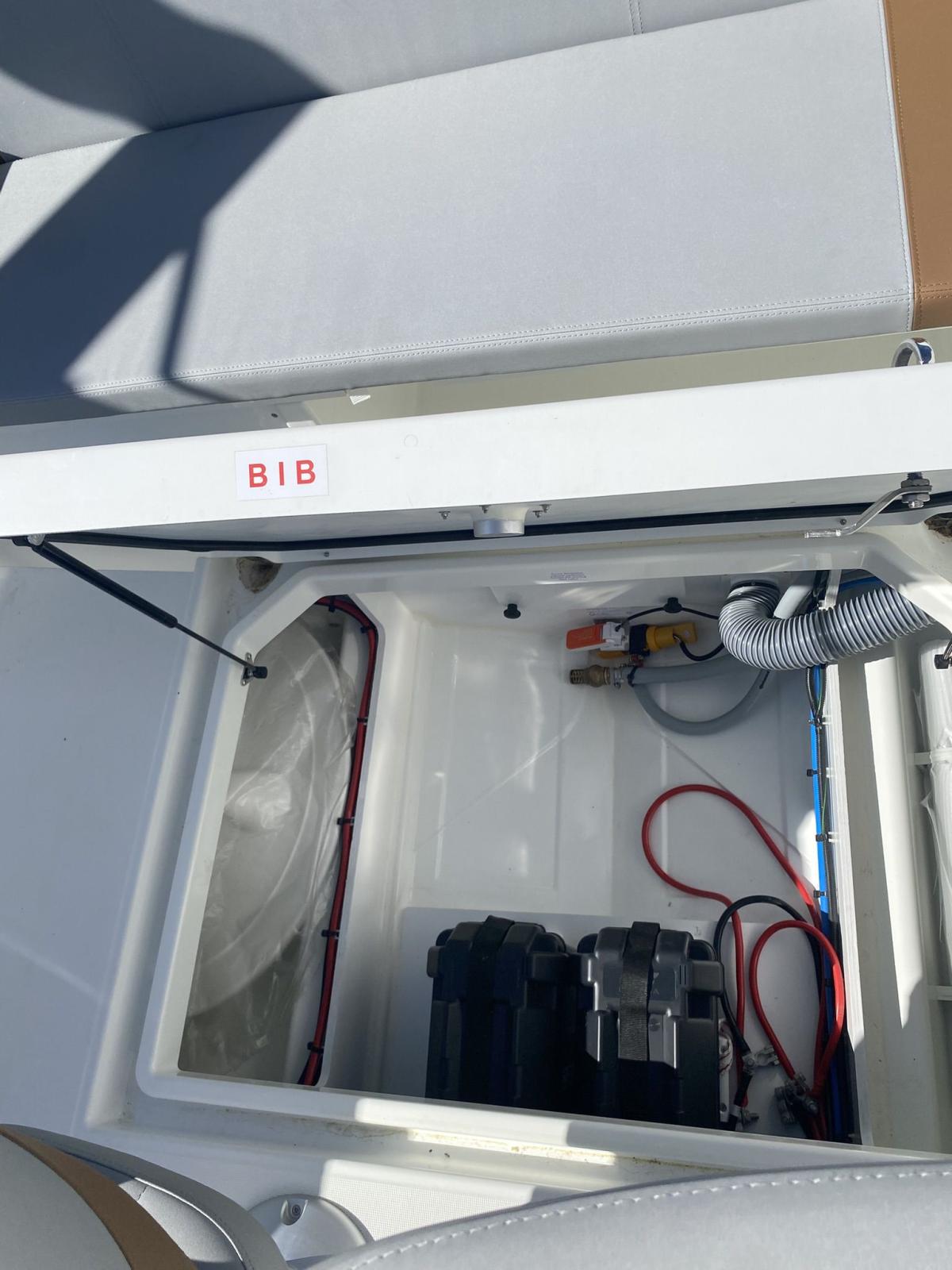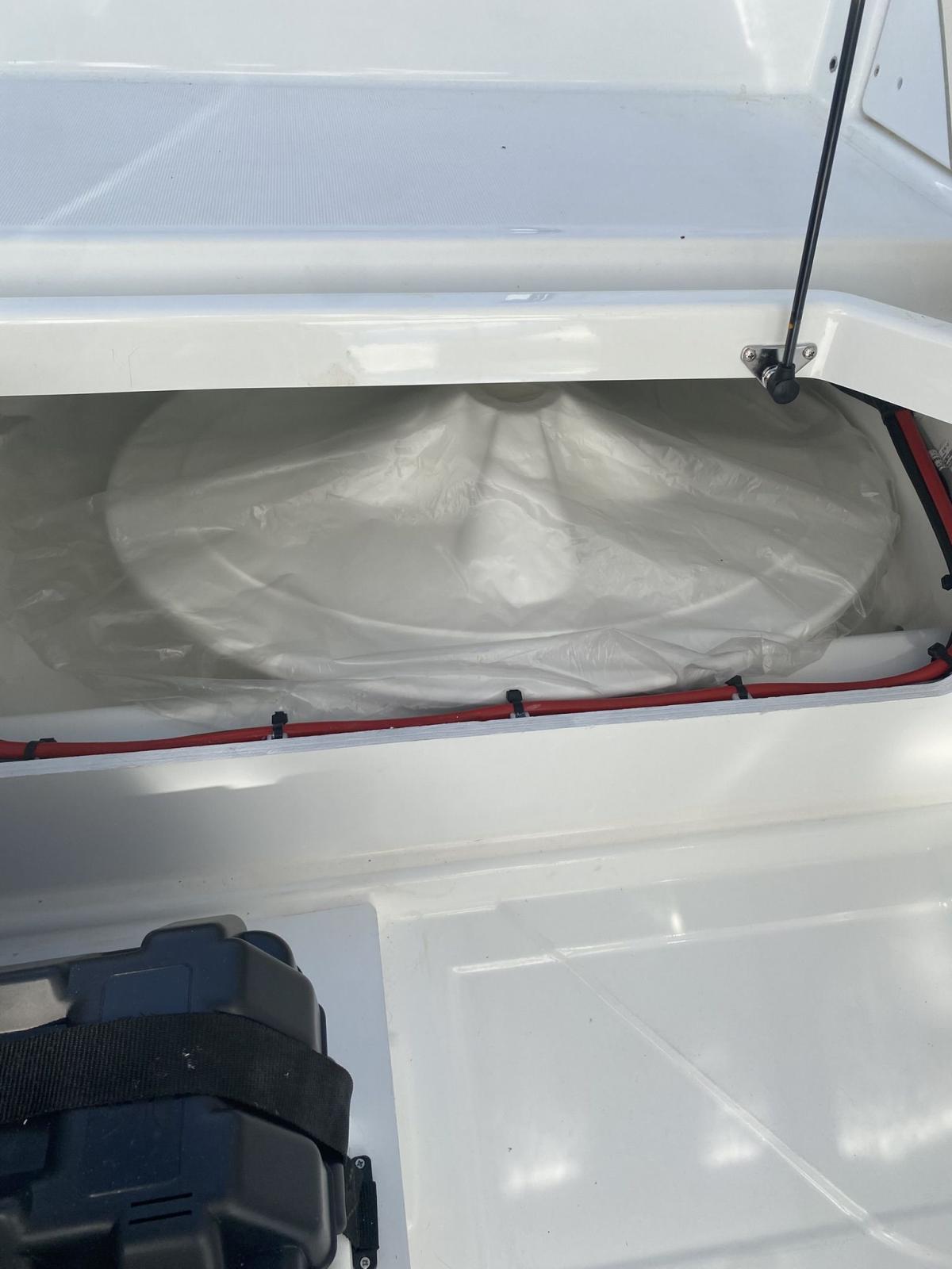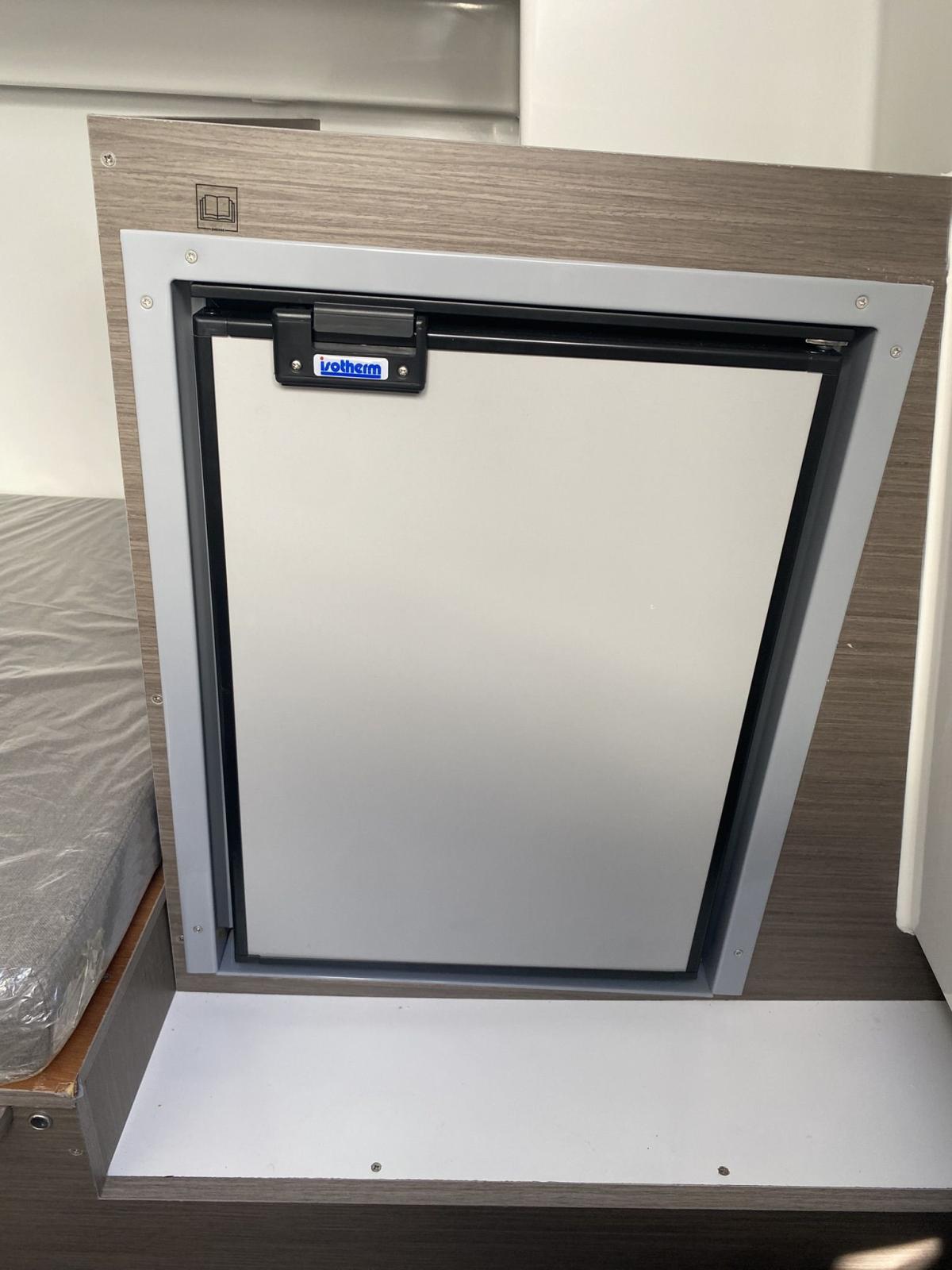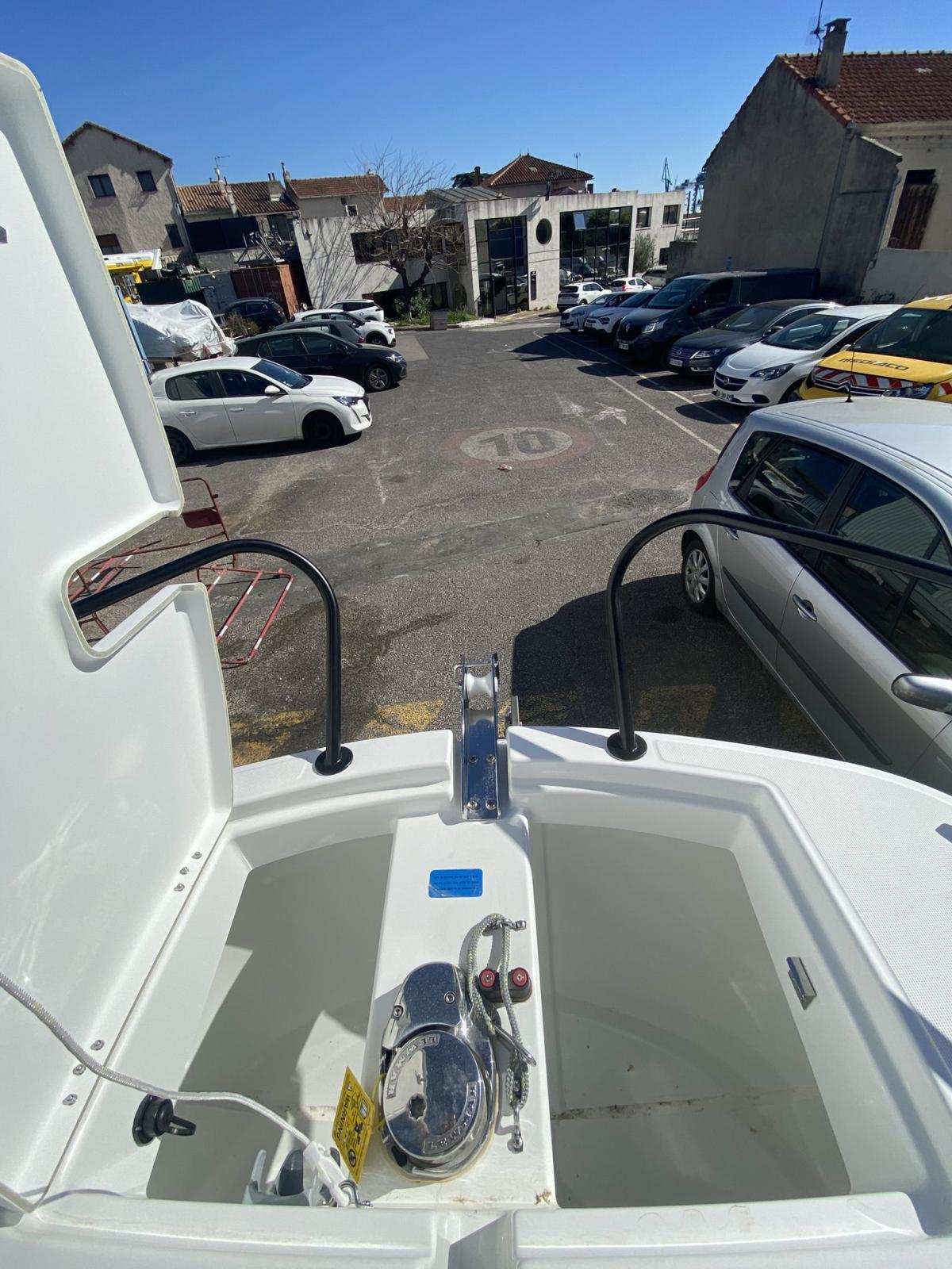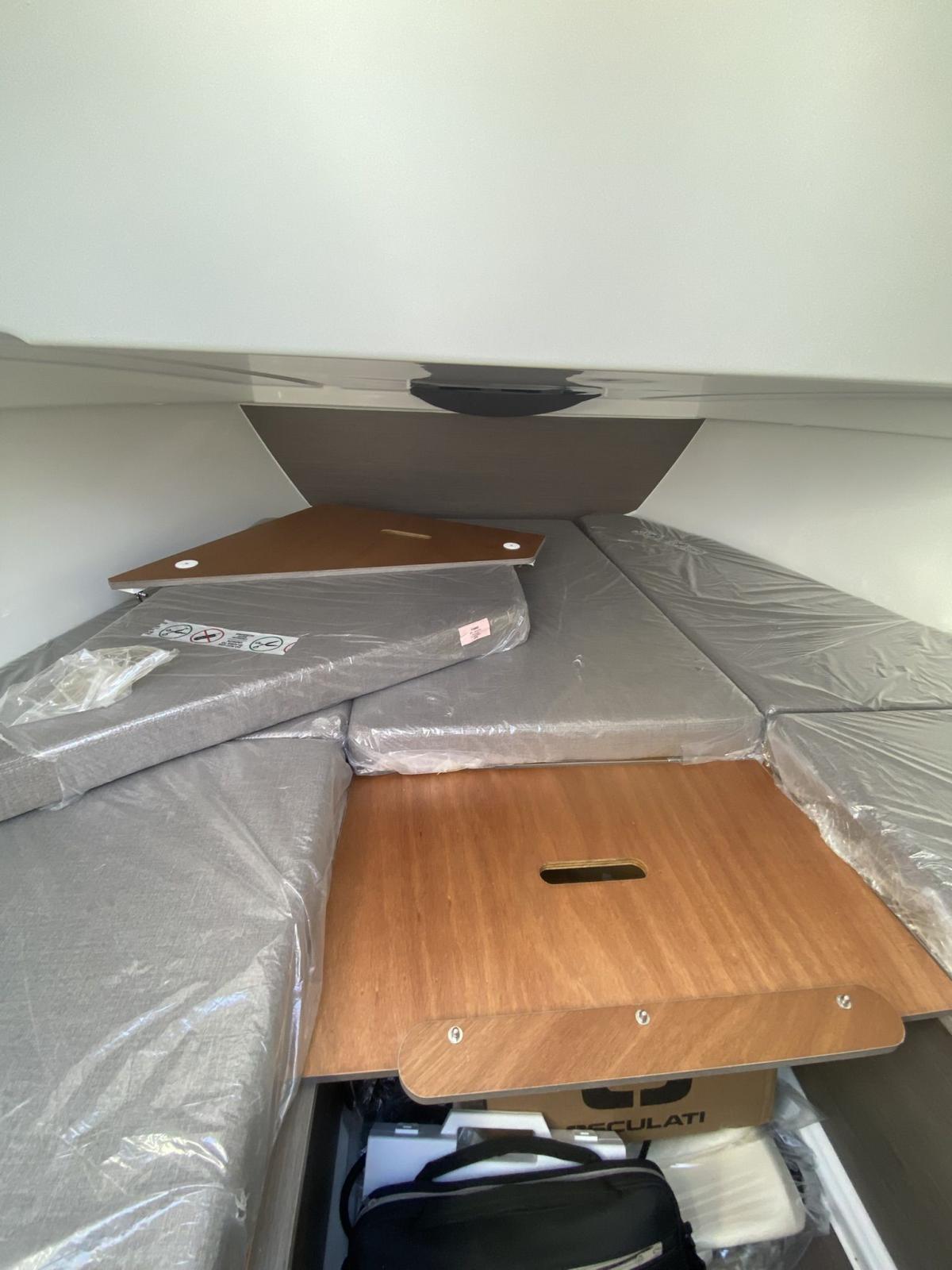 Il offre à l’avant un large bain de soleil sous lequel se trouve une cabine équipée d’une couchette-double et des rangements.