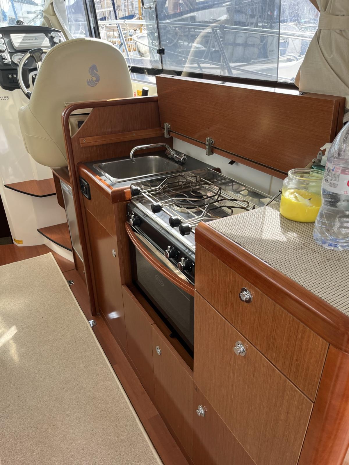 Premier motor-cruiser Flybridge de la gamme, l’Antares 30 offre un programme orienté vers la croisière. Outres ses grandes qualités marines que l’on reconnait à l’ensemble de la gamme Antares, le volume habitable est incomparable pour cette taille d’unité. Particulièrement fonctionnels, ses aménagements rendent la vie à bord facile et agréable. L’Antares 30 affiche un volume habitable incomparable et des aménagements particulièrement astucieux. La timonerie, large et lumineuse, offre une vision panoramique de la navigation. La banquette disposée face à la mer permet de partager le plaisir de la navigation, en famille ou entre amis. L’ambiance intérieure associe le bois contemporain à une sellerie lumineuse.