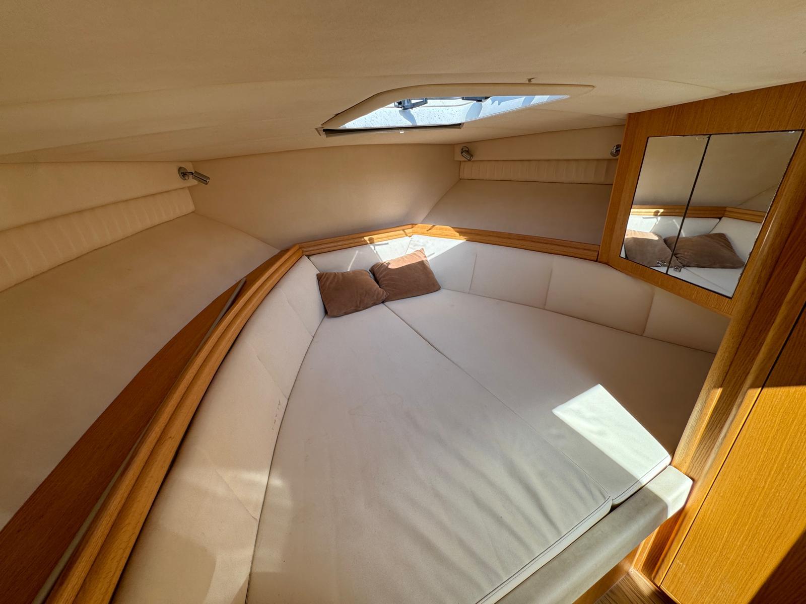 Destiné avant tout à une sortie journalière, l’Astérie 40’ a le mérite d’être équipé d’une cabine avec un couchage pour deux personnes , de nombreux placards de rangement, une penderie et un cabinet de toilette indépendant avec douche.