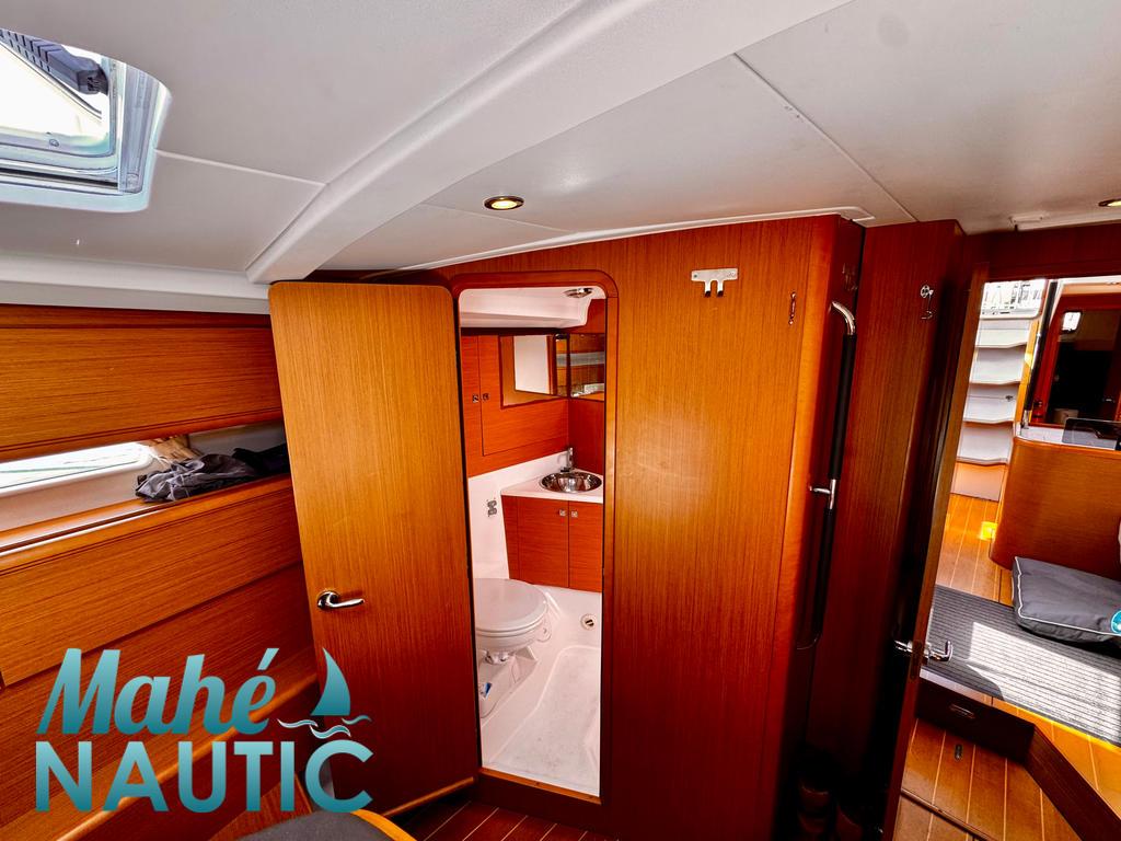 FACTURES / ENTRETIENS / REPARATIONS Toutes les vannes et les passes coques remplacés en 2024, bague hydrolube 2024, bagues de safran 2024 DIVERS / RESUME / COMMENTAIRES JEANNEAU 53, 2012, 2eime main, YANMAR 4JH4-HTE, 110 cv (600 approx. h), Propulseur d'étrave, Version Mat Long, Version d'aménagement intérieur 1 cabine avant, 2 cabines arrières, Soute à voile dans le poste avant, 3 cabinets de toilettes et douche, Toiles antiroulis , 2 winchs électriques d'écoute de génois - Harken 70ST, Winch électrique de manoeuvre sur roof à babord - Harken 46ST, Passavants teck, Grand-voile full batten coupe triradiale sandwich spectra - North Sails, Rail de guindant de grand voile + chariots de lattes, Lazy-bag de grand voile (2019), Etai largable avec système de tension, Voile de brise pour étai largable, Spinnaker triradial classique (210m²), Pataras réglable avec vérin hydraulique Navtec, Pilote automatique in board Raymarine, GPS / lecteur de carte dans le cockpit - Raymarine E120W, Radar avec radôme sur support de mât - Raymarine, Transpondeur AIS (émetteur récepteur), Informatique (PC + windows), Cartographie MaxSea, Unité réfrigérante 12 V ouverture par le dessus et porte frontale, 2 ème unité réfrigérante, Batteries service - 6 x 110Ah - Victron AGM, Contrôleur / gestionnaire de batteries - Victron Energy, Chauffage WEBASTO (2 unités), Générateur fixe 220 V - Cummins, WC électrique, Prise eau douce de quai, Feux de navigations à Leds, Eclairages intérieurs à Leds, Radeau de survie 8 personnes Bombard - A réviser