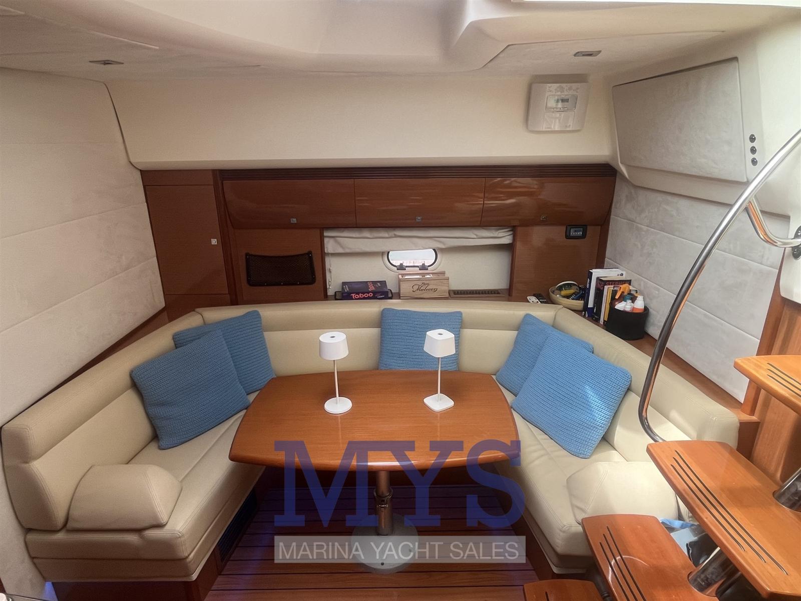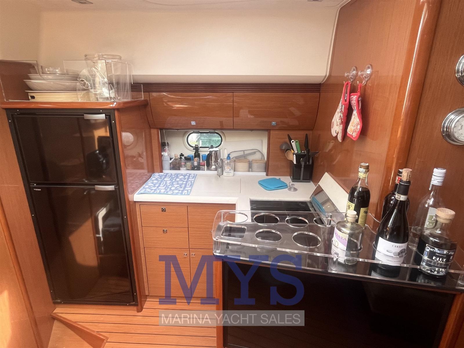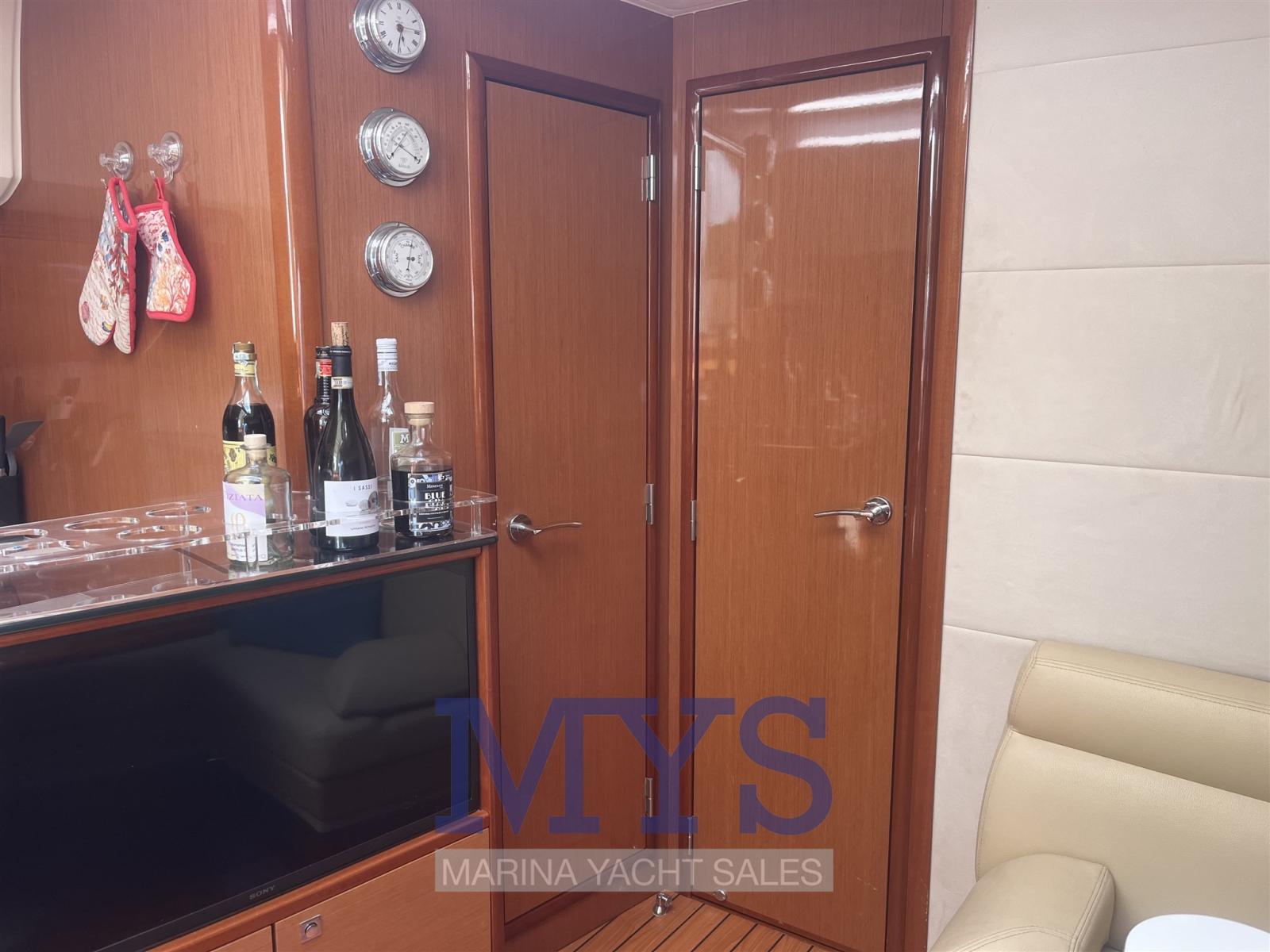 Alarme moteur, Eau sous pression, 8 Batteries, Douche de cockpit, Flaps électriques, Garage à annexe, Hard top, Éclairage de courtoisie, Spots sous-marins, Passerelle, Plateforme arrière, Pompe de cale manuelle, Porte latérale, Porte latérale, Cockpit en teck, Prise de quai, Connexion eau sous pression à quai, Guindeau électrique, Echelle de bain.