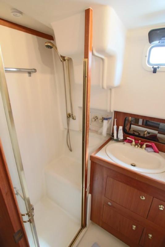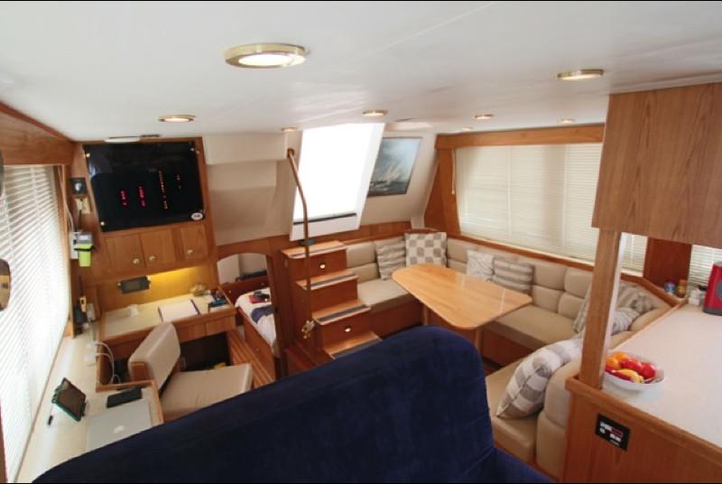 Vous trouverez à son bord, 3 cabines doubles, 2 salles d’eau et un WC indépendant ,un bel espace de vie dans le carré, une cuisine bien aménagée, un important équipement pour la navigation et la vie à bord, ainsi qu’un Fly bridge entièrement dégagé.