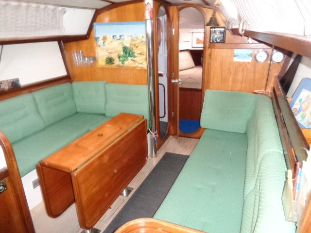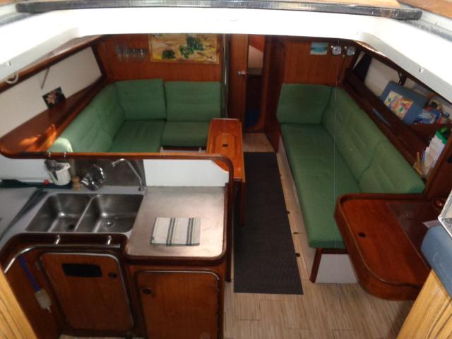 Version 3 cabines doubles (2 arrières/1 avant), cuisine utilisable en navigation, table à cartes avec un grand carré. La salle d’eau est installée à l’avant du mât.