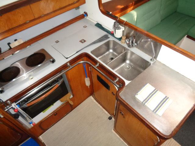 WC marin, douche intérieure, lavabo, évier double, réchaud/four, frigo 12v, eau chaude/froide sous pression, cumulus 20l, capacité eau 400l (2x200l en souple).