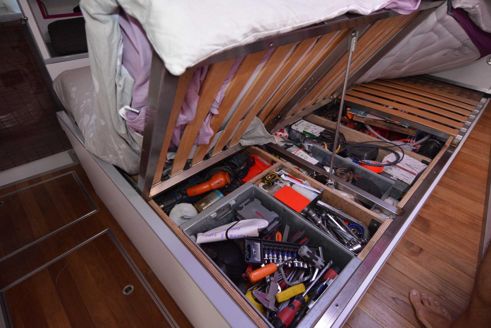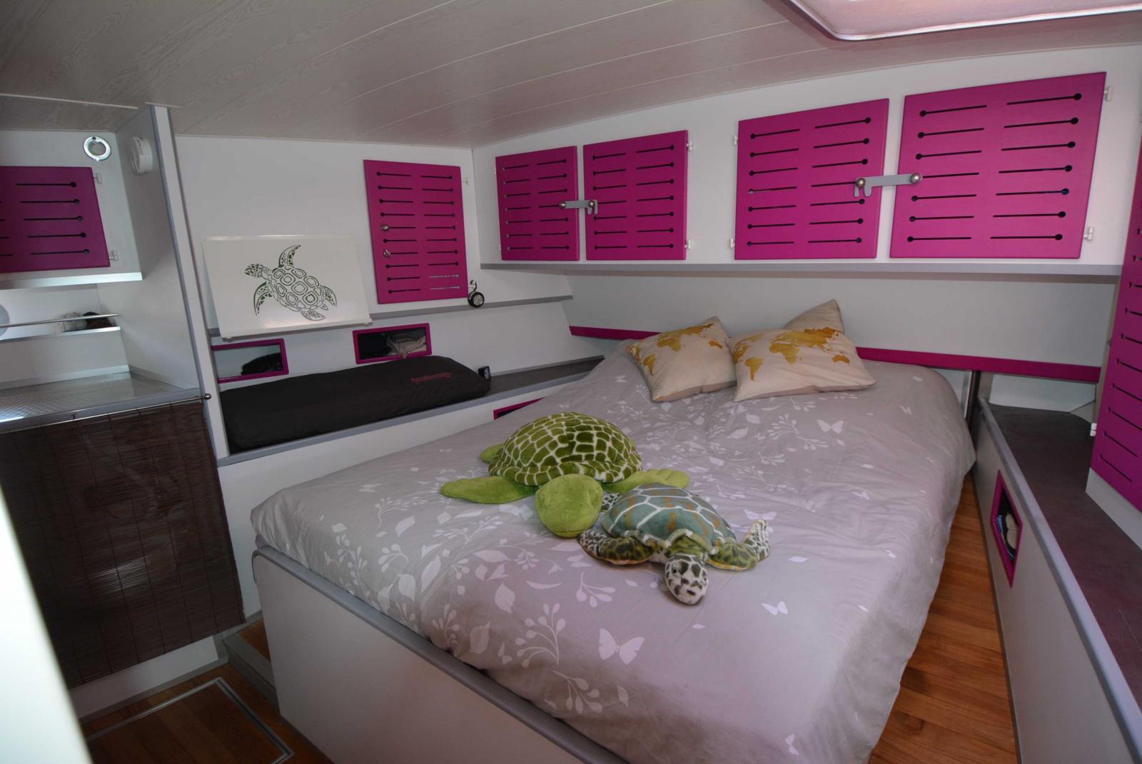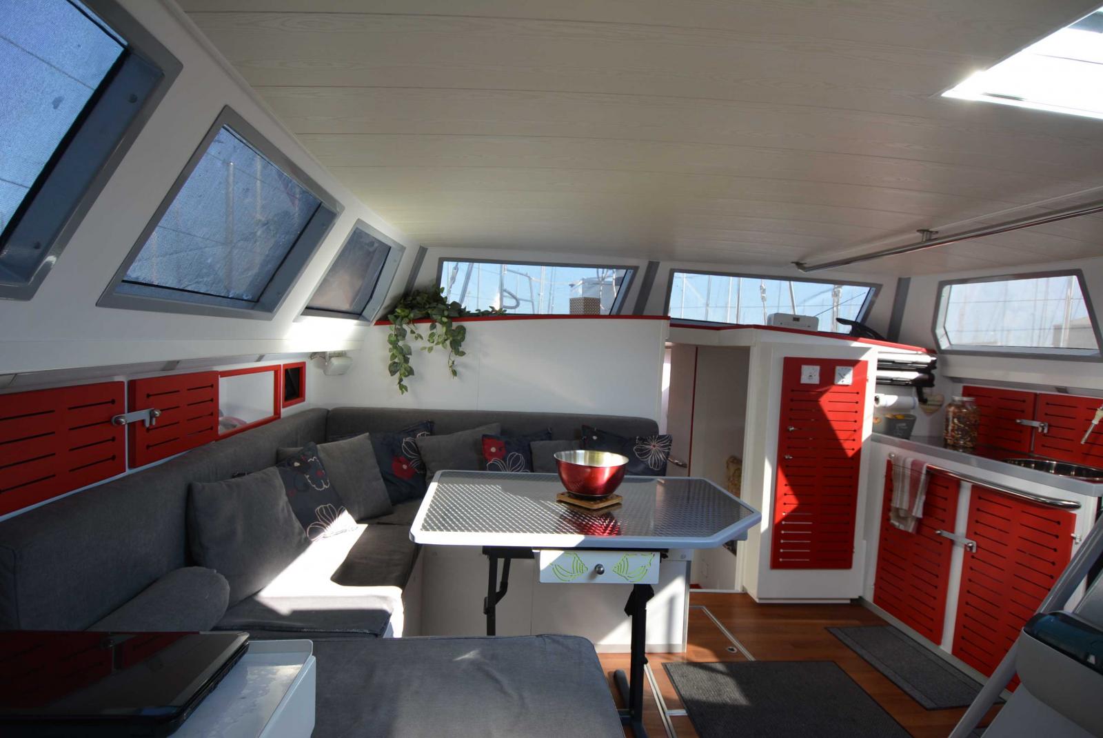 Les espaces de vie sont généreux et bien aménagés, offrant tout le confort nécessaire pour la croisière hauturière. La vie à bord est agréable grâce aux volumes bien pensés.