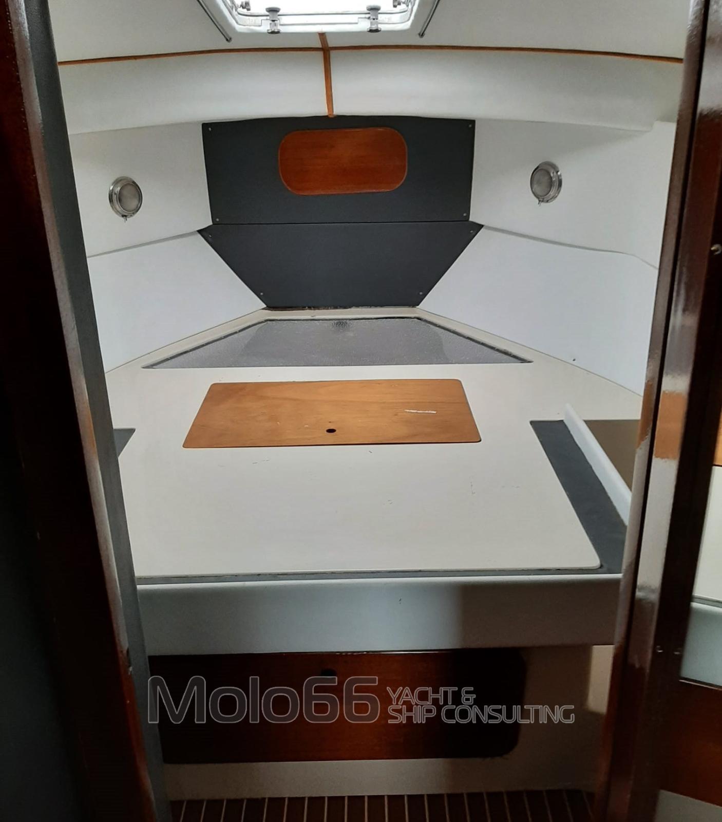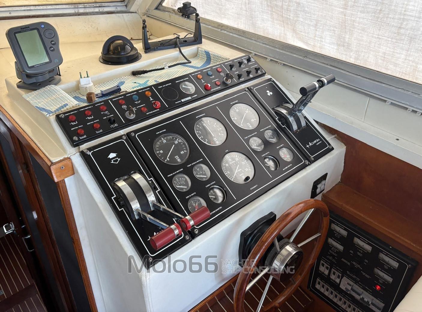 Alarme moteur, Alarme de pompe de cale, Eau sous pression, 4 Batteries, Douche de cockpit, Double barre à roue, Flaps hydrauliques, Bossoirs, Passerelle, Plateforme arrière, Pompe de cale automatique, Cockpit en teck, Prise de quai, Guindeau électrique, Echelle de bain, Corne.