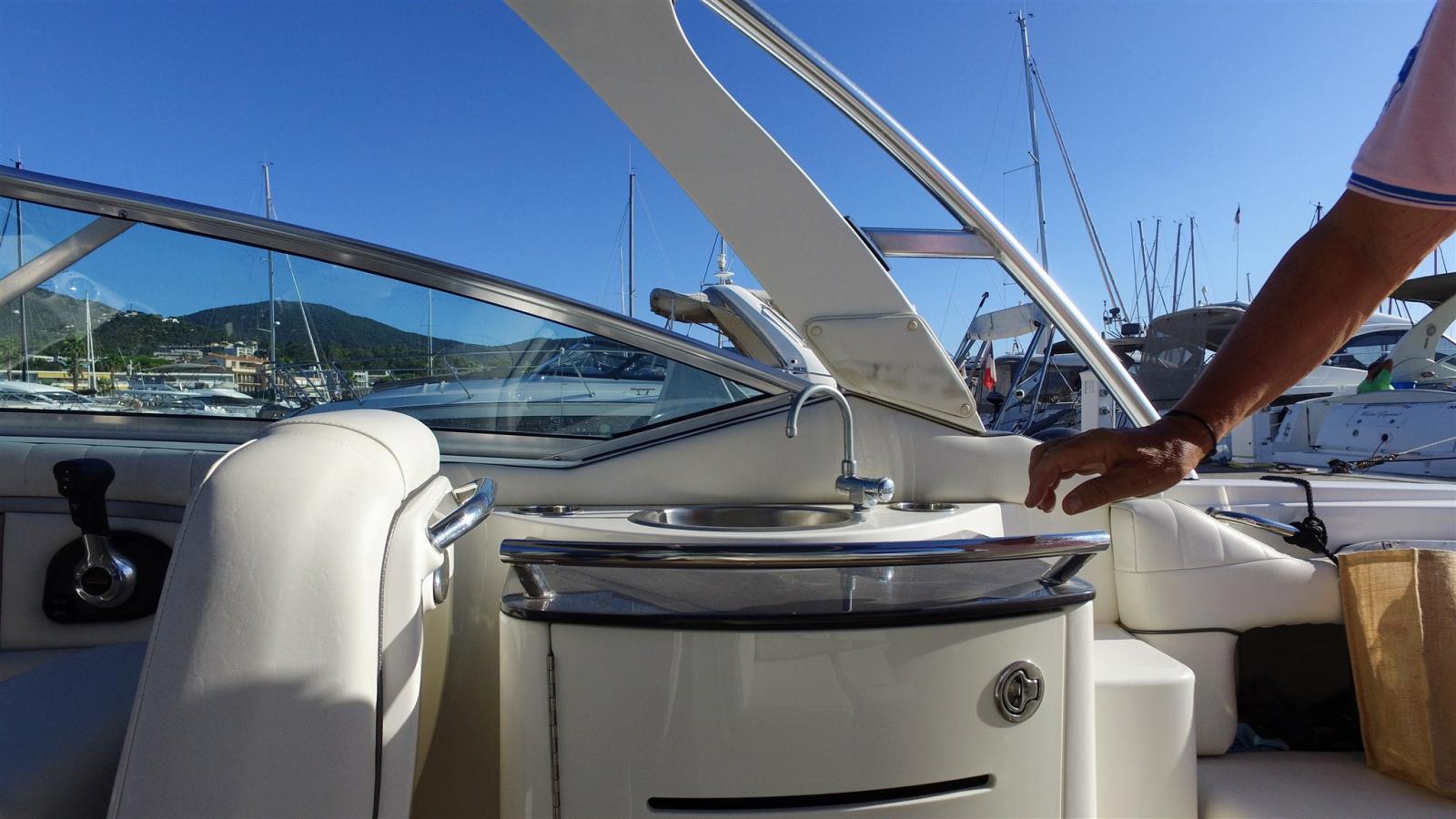 Alarme moteur, Ouverture du compartiment moteur électrique, Eau sous pression, 2 Batteries, Chargeur de batterie (10 amp), Douche de cockpit, 2 Flaps électriques, Crochet de remorquage pour ski nautique, Indicateurs de flaps, Lavage de chaine (2025), Lavabo dans le cockpit, Éclairage de courtoisie, Plateforme arrière, Pompe de cale automatique, Cockpit en teck (Refait en 2022), Prise de quai, Guindeau électrique, Echelle de bain, table de cockpit, T-Top.