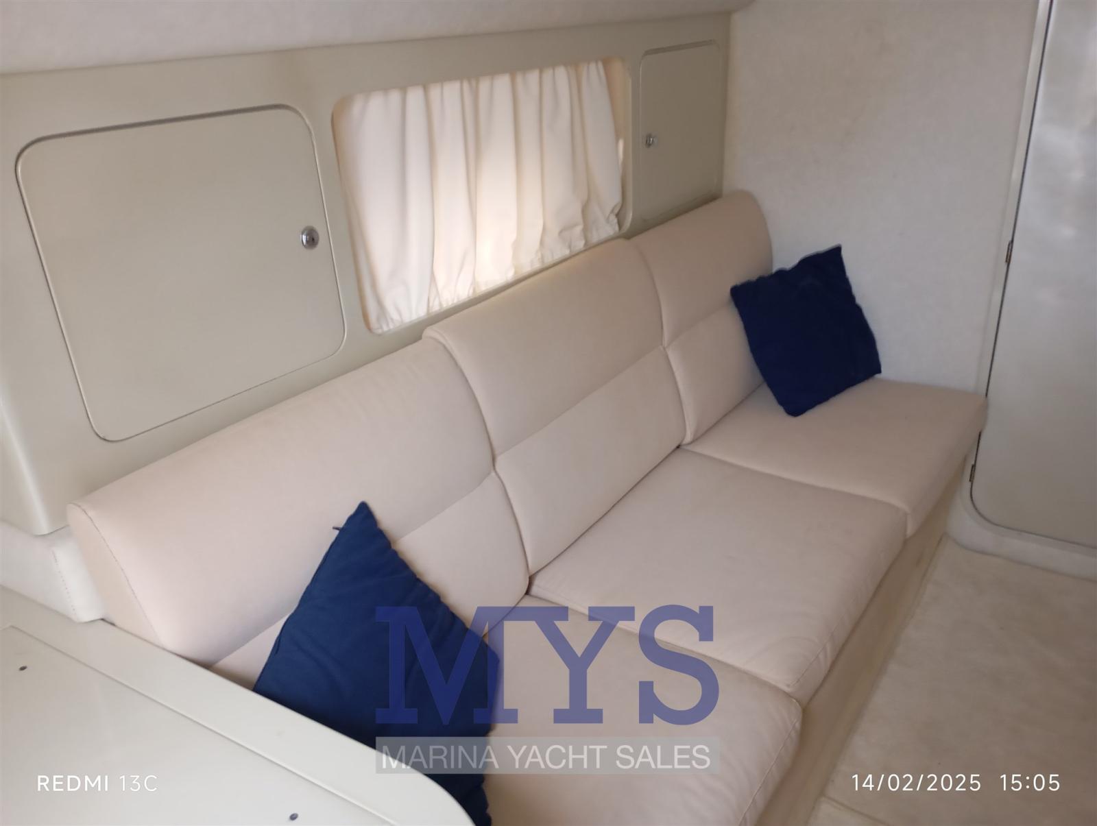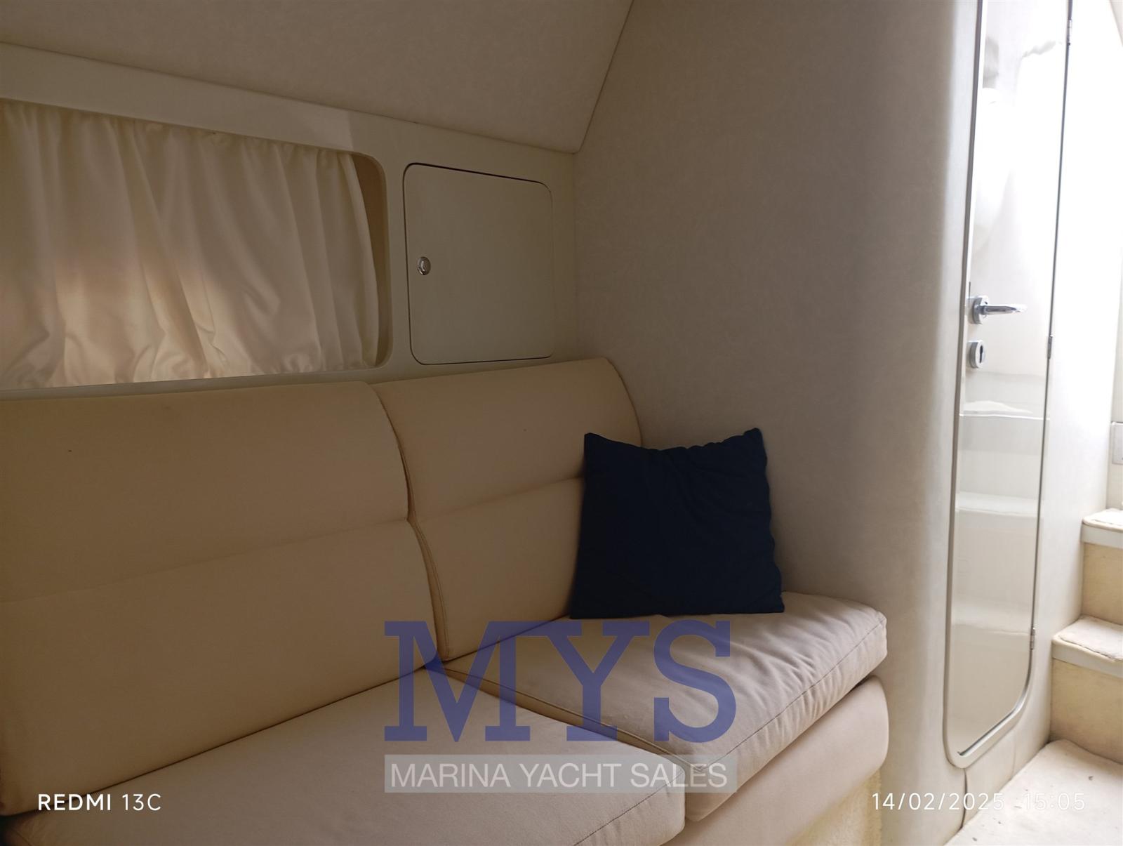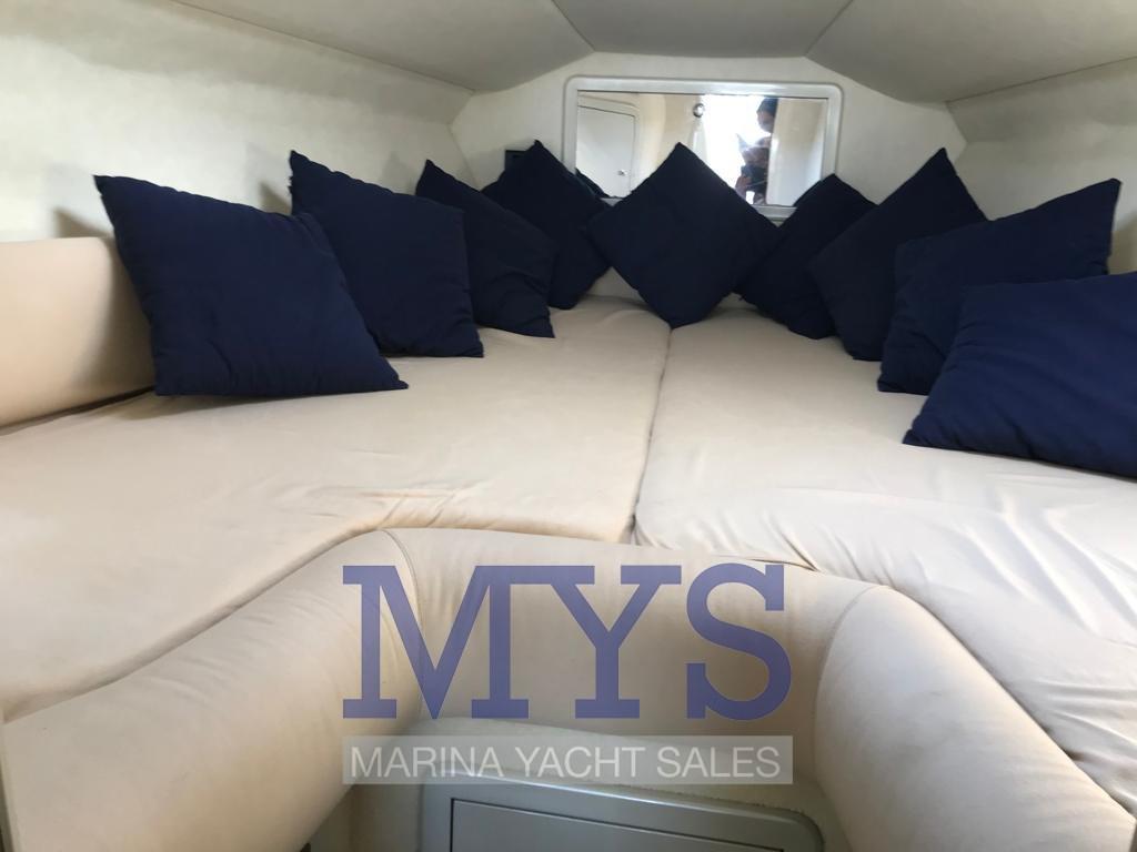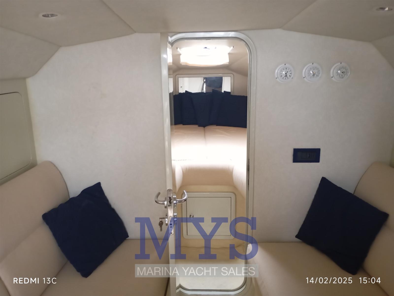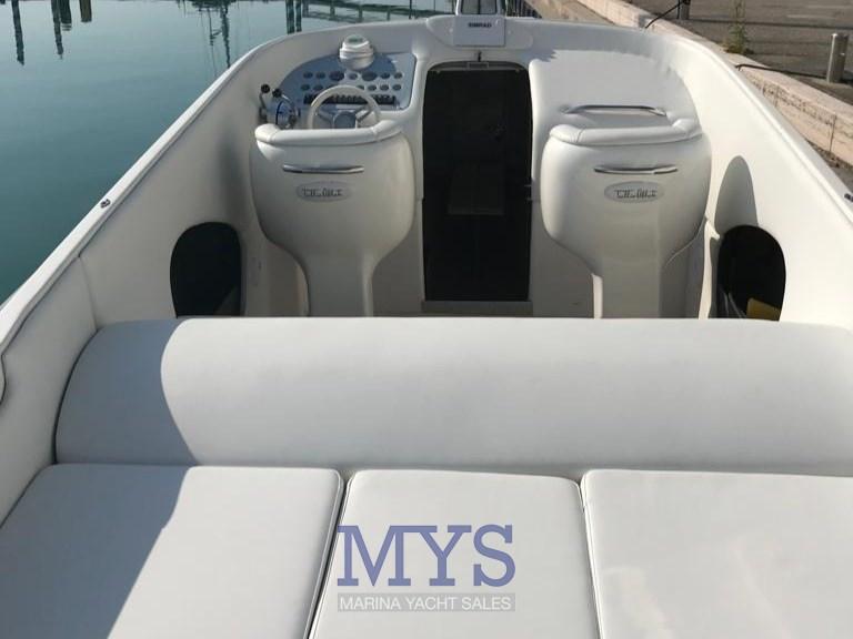 Tullio Abbate, unique en son genre, en plus de la conduite rapide, surprend par son grand bain de soleil arrière et le confort qu’il offre sous le pont avec une cabine équipée d’un lit double, d’une salle de bain séparée et d’un coin repas.