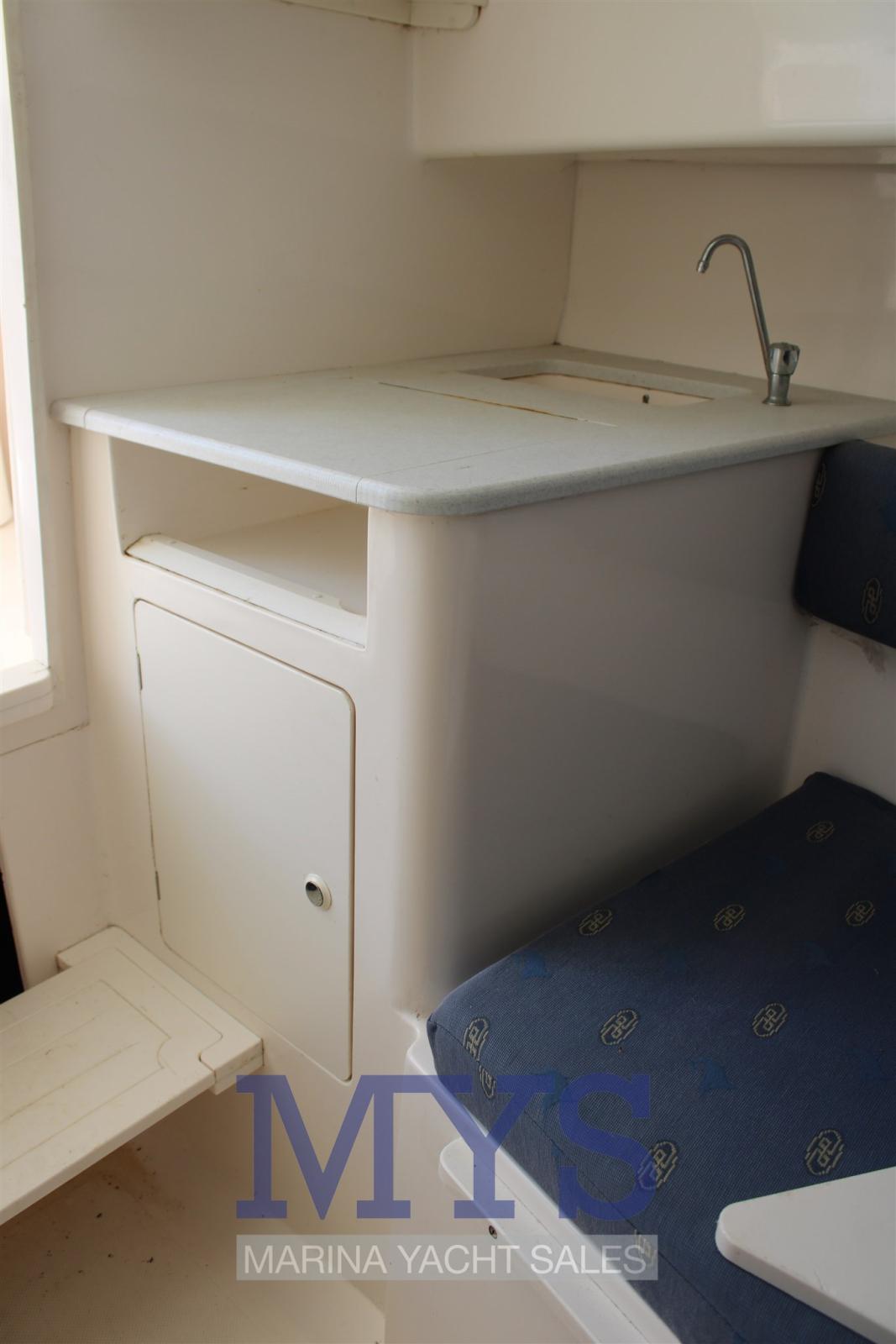 Alarme moteur, Alternateur, Eau sous pression, Douche de cockpit, Flaps électriques, Indicateurs de flaps, Lavabo dans le cockpit, Spots sous-marins, Plateforme arrière, Pompe de cale automatique, Guindeau électrique, Echelle de bain, Table pliante de salon, Corne.