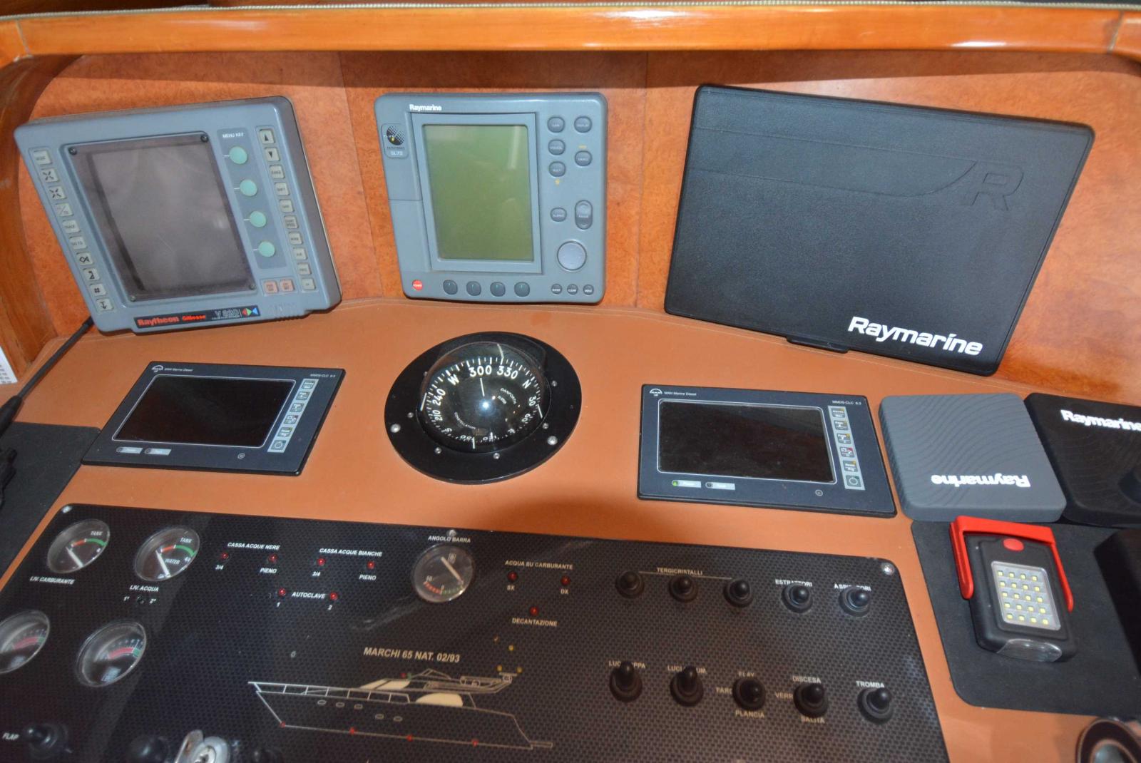Climatisation, équipements de navigation modernes, aménagements luxueux : ce Marchi Spa 65 dispose de tout le confort attendu d'un yacht de cette catégorie.